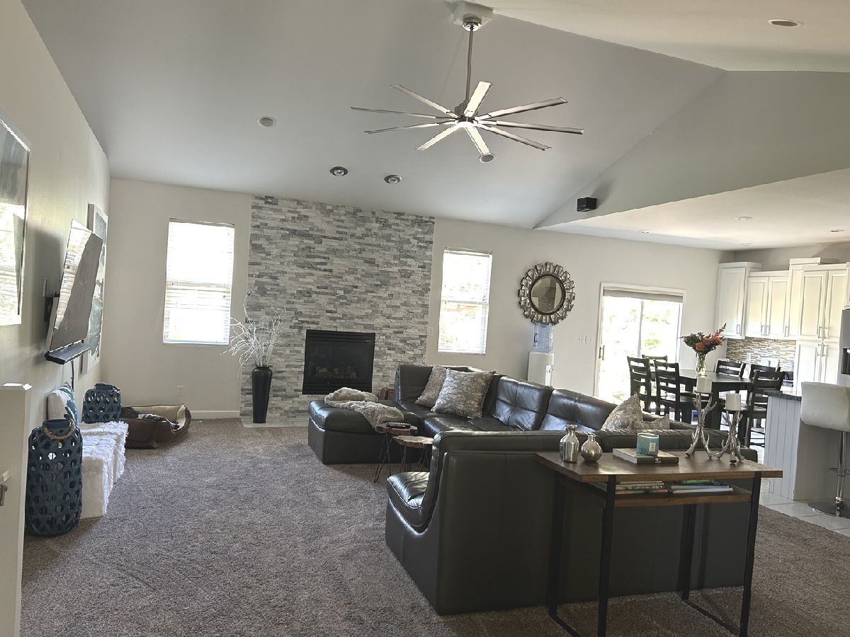 SOLD IN PRIVATE NETWORK-Absolutely Fabulous one story home located in Bridges of Rivermist. The open front porch has plenty of space for a table & chairs for summertime evenings after a long day at work. The minute you enter you will find a cubbie for coats, shoes & misc. Living, dining & kitchen feature open concept floor plan, letting you be a part of every special occassion. Living room complete with granite stone gas fireplace with marble hearth, upgraded ceiling fan, recessed lights and carpet. Dining area features built seating, wainscoting, recessed lighting & two pillars. Kitchen complete with white tiered cabinets with lighting, all stainless steel appliances, built in double oven, 5 burner gas cooktop, upgraded range hood, pendant lighting and desk area. Primary Suite overlooks retreat like back yard with concrete patio and paver bricks with pergola. Suite features chandelier, carpet, walk in closet & full bath with separate shower with glass doors & tub, double bowl sink with make up area. Lower level complete with 4th bedroom, full bath, family room & dry bar with receiver & speakers, media room/office, fabulous mirrored workout area or dance studio currently being used as playroom. Main floor 2093 SF and finished lower level 1900 featuring 4 bedrooms and 3 full baths. Total livable sq ft 3993. Enjoy entertaining at it's finest! Possession end of July. If buyer needs to close earlier seller would need a rent back.