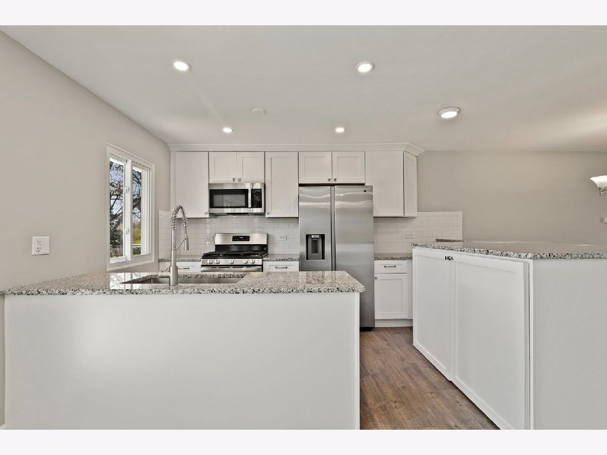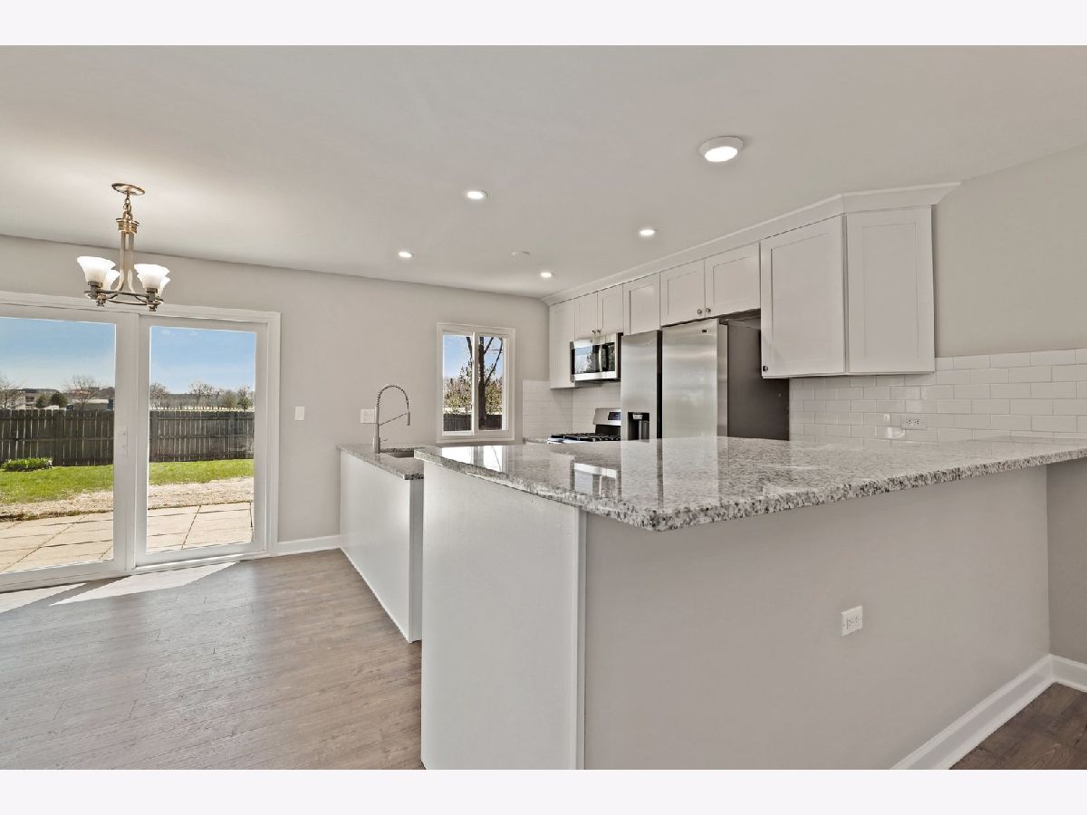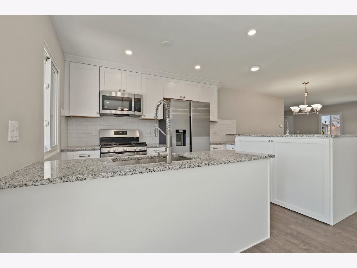 DESIGNER-LIKE FINISHES, PERFECT LOCATION, & HIGHLY RATED SCHOOLS! This fully updated ranch shows like a model! Step into this magazine-worthy home and be instantly greeted by beautiful luxury plank laminate floors that run continuously throughout the home! Freshly painted light gray walls and 5-in white baseboard trim grace every room! Brand new kitchen boasts luxurious granite counters, white shaker cabinets capped with thick molding, stainless steel appliances, and subway tile backsplash! The kitchen is wide open to the family room, and living rooms with loads of recessed lights! 3 spacious bedrooms each with overhead light and switch! Rare for this model, the primary bedroom has a full private bathroom, completely renovated with stunning frameless sliding glass door shower and subway surround! Secondary full bathroom is also completely remodeled with modern updates and quartz vanity! The updates go beyond the lovely surface finishes. Additional updates include Roof ~2015, Leaf gutter guards ~2015, Vinyl windows ~2015, Siding ~2015, Furnace ~2015, and Water heater ~2015. The backyard is a huge fully-fenced oasis ready for summer enjoyment! Prefect location minutes from Lake Park High School, Metra, public parks, tennis courts, Roselle Recreation Center, and beautiful downtown Roselle! This home will not last! Come visit before it's gone!