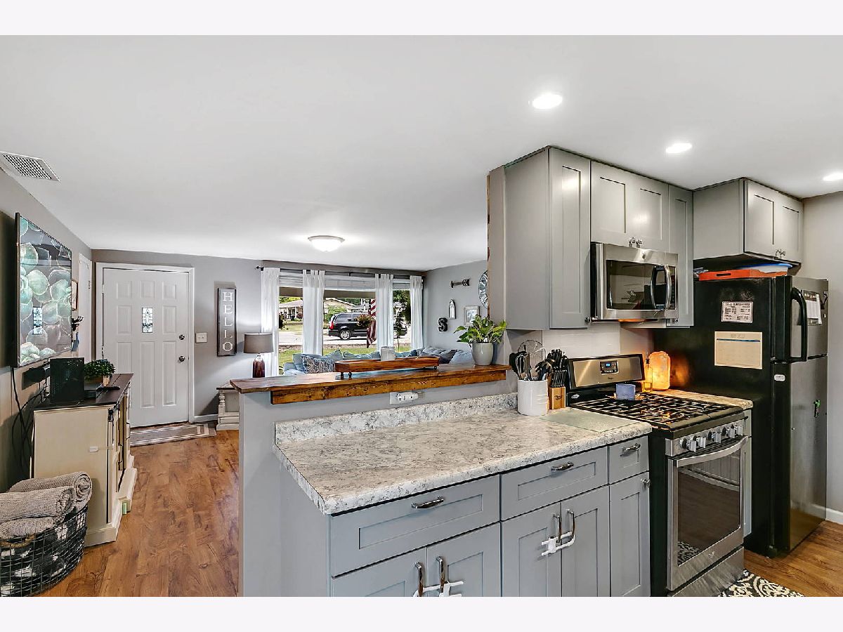 Beautiful 3 Bed 1 Bath Ranch home in unincorporated Bourbonnais. This amazing home is conveniently located just off highway 102. You will enjoy the attention to detail and style throughout. Custom shiplap wall, kitchen with shaker cabinets, and a full set of appliances. Open concept for your entertaining needs. Bathroom updated with attention to detail. Fresh neutral paint. Laundry room with vanity and large pantry area. Brand new sliding door leads to a concrete patio (34x15) and spacious fenced yard facing mature trees and open field on West. 2 car attached garage and concrete driveway. Shed for storage. French drain system and sump pump. New water heater 2021, This home is ready for you, come take a look!