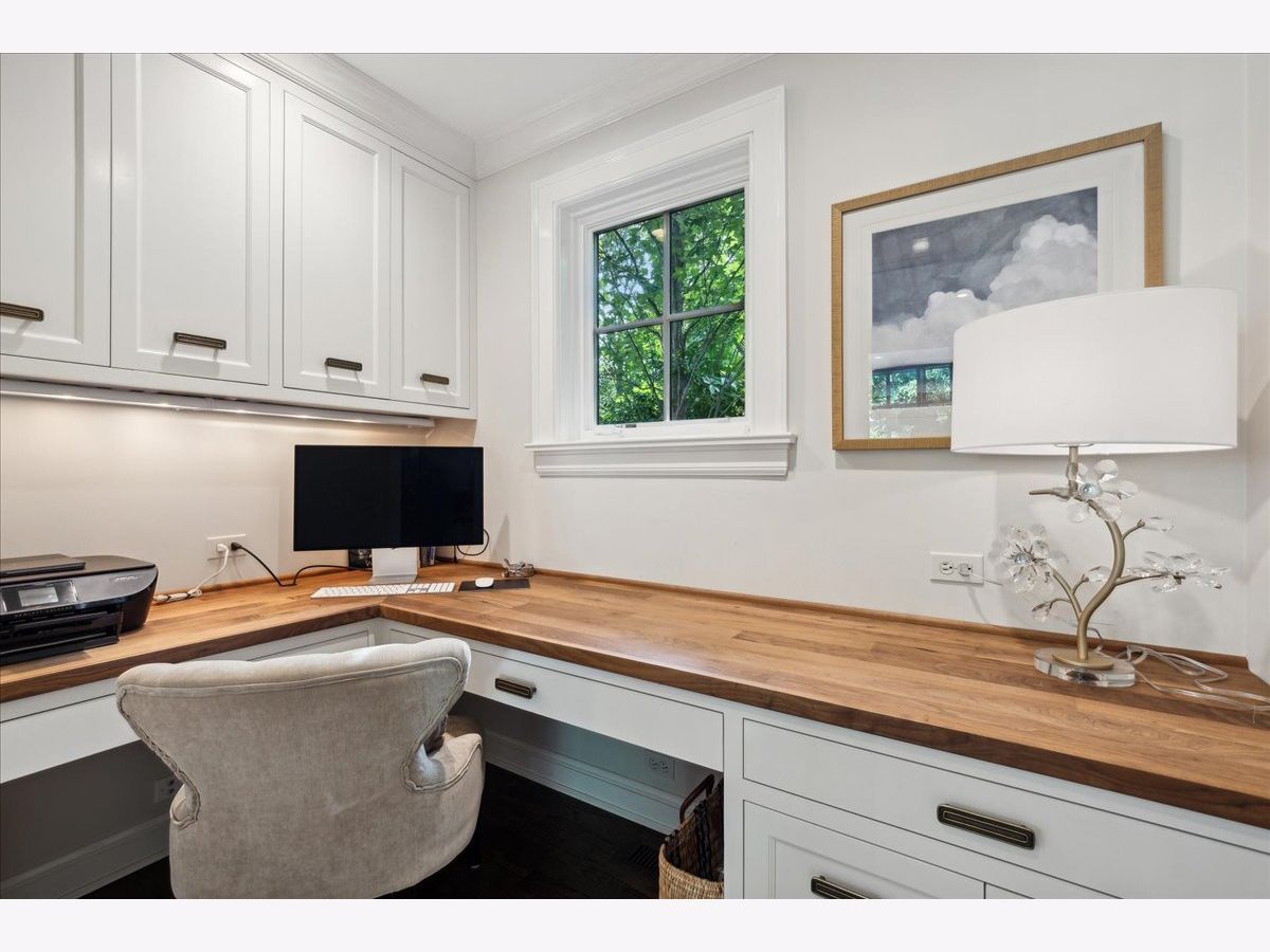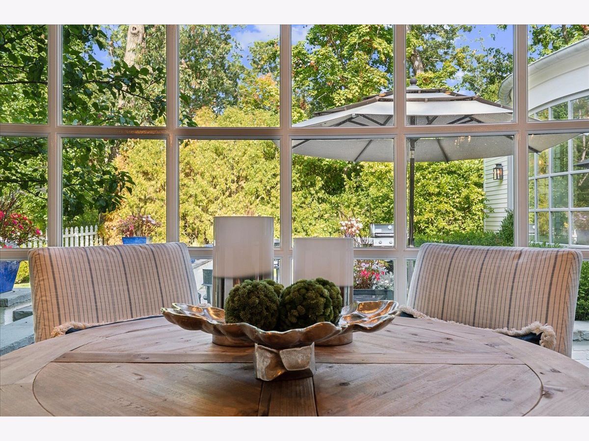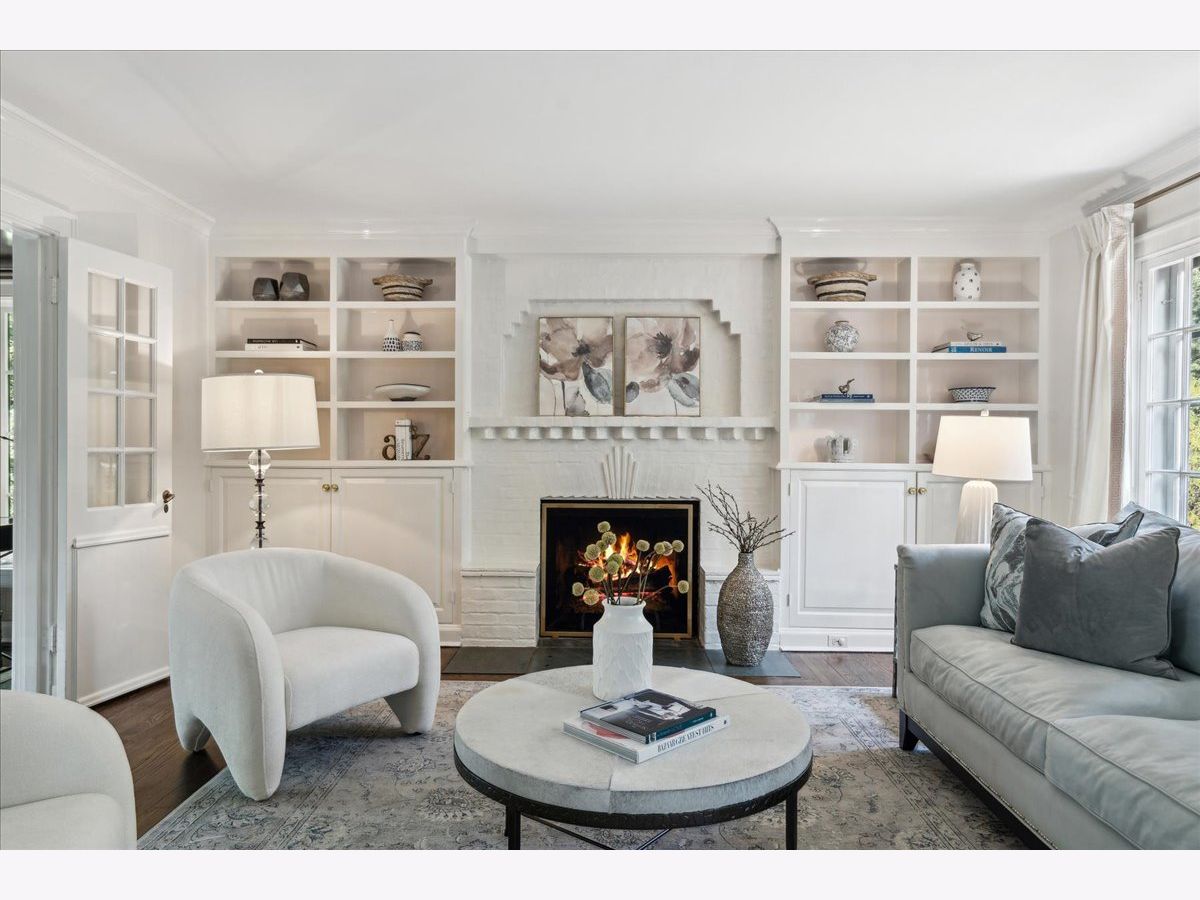 Experience the charm of this East Lake Bluff residence, nestled on nearly half an acre with picturesque ravine views. Thoughtfully renovated and expanded over the years, this home seamlessly marries the timeless elegance of vintage Jerome Cerny design with modern luxury and top-tier finishes. Step into a sun-drenched kitchen featuring a spacious island, professional-grade appliances, and a cozy eating area nestled within a bay window overlooking the lush yard. Convenience abounds with a walk-in butler's pantry and a dedicated workstation nook. The heart of the home is a welcoming family room, complete with a fireplace, custom built-ins, and French doors that open to the backyard and bluestone terrace. Formal entertaining spaces include an elegant dining room with ravine vistas and a sophisticated living room, both graced with fireplaces. A versatile home office and a separate sitting area with lacquered walls and a large bay window offer additional functional spaces. Ascend to the second floor, where the primary suite awaits with vaulted ceilings, built-in window seats, dual walk-in closets, and a serene bath featuring luxurious Perrin & Rowe fixtures. Two additional bedrooms share a charming bathroom and access to a roof deck. The lower levels boast a rec room with fireplace, laundry, an ensuite bedroom, an expansive 20x10 cedar closet, and ample storage. Exquisite details throughout include plantation shutters, custom drapery, designer wallpaper, lacquered walls and millwork, and hardwood floors. A two-car garage with epoxy flooring and direct stairway access to the basement completes this extraordinary property. Experience the perfect fusion of timeless elegance and modern comfort in this exceptional East Lake Bluff residence.