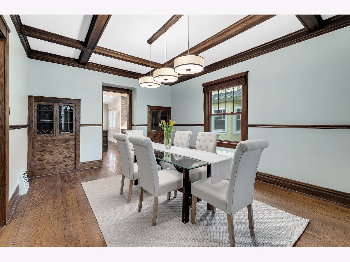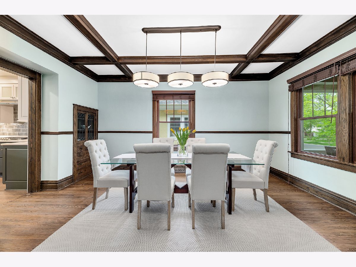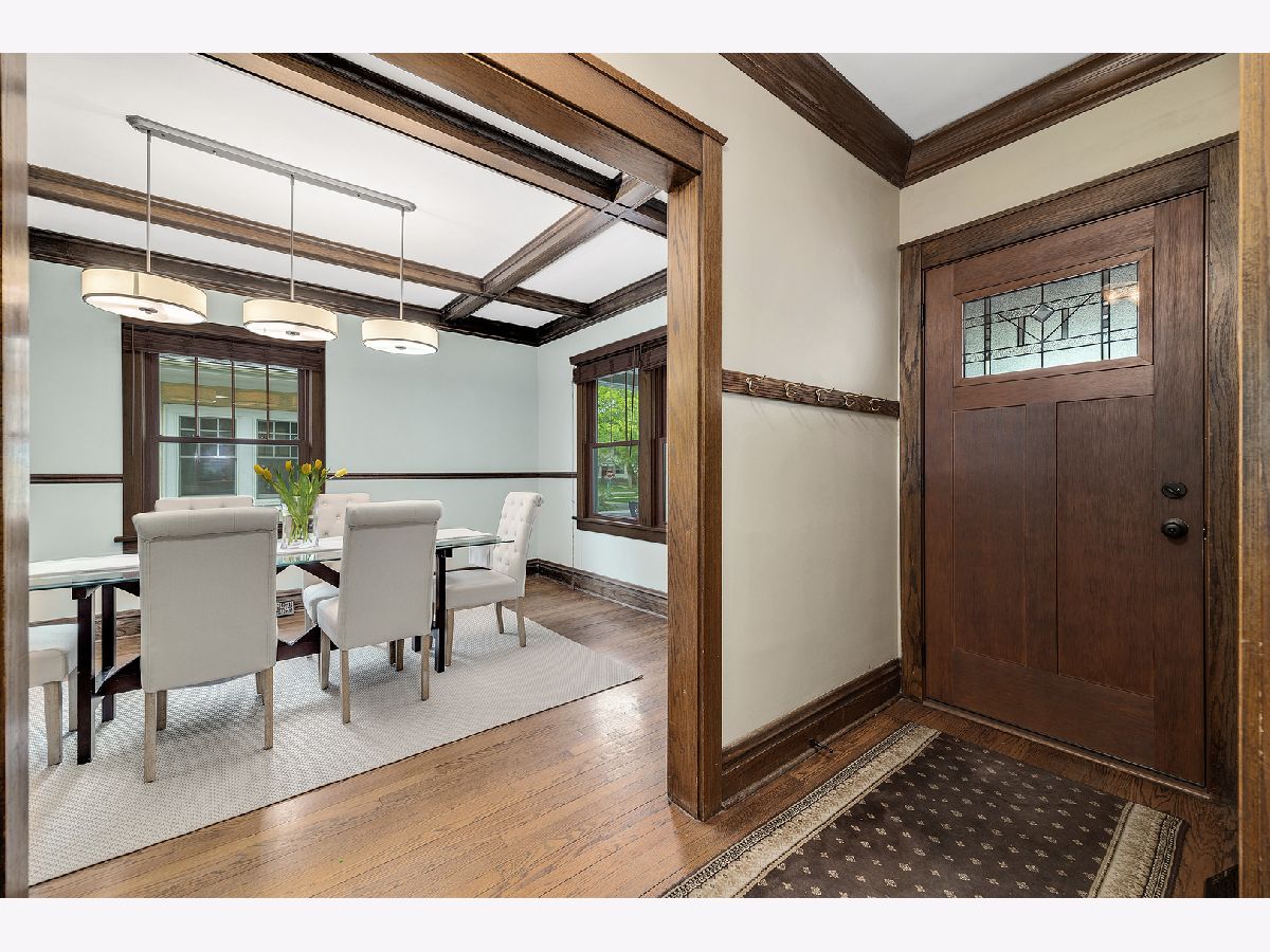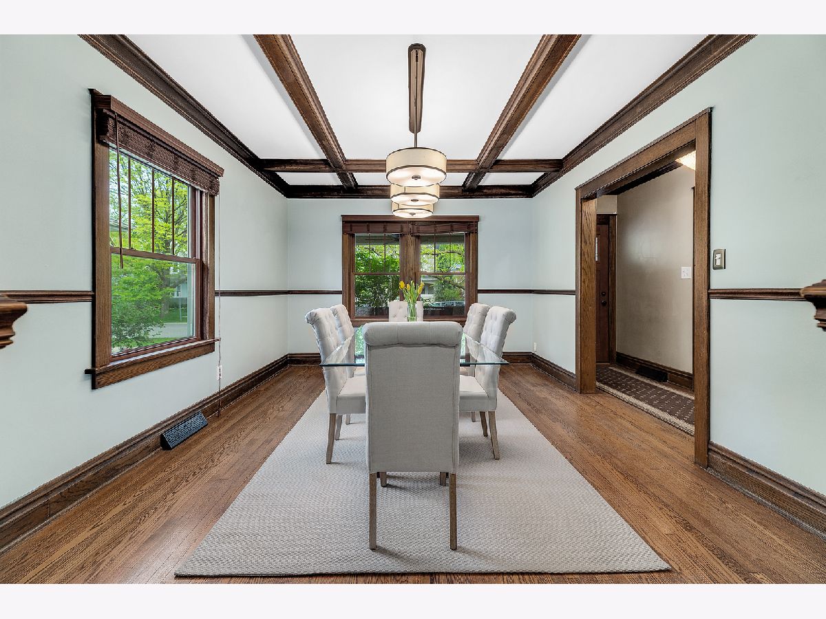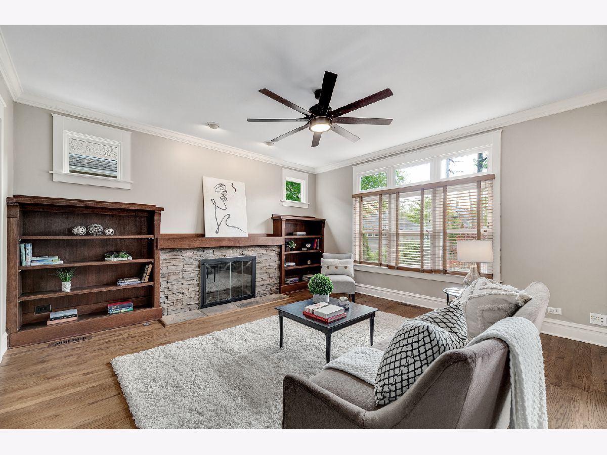 Exceptionally maintained Craftsman style bungalow in the heart of La Grange Park's sought after Harding Woods neighborhood! Walking distance to award winning Ogden Elementary, Park Jr High & Lyons Township High School. Stroll to downtown La Grange's shops, movie theater, restaurants and commuter train station. Easy access to both airports, expressways, parks and Salt Creek bike/walking path. This home offers an efficient floor plan with hardwood floors, original and custom milled woodwork, designer light fixtures, new ceiling fans and warm paint colors throughout. The wonderful covered front porch offers additional outdoor entertaining space throughout the year. Grand foyer with wide staircase to the second floor, formal living room and dining room with gorgeous coffered ceiling and two built-in china cabinets with leaded glass doors. "Must-see" Chef's kitchen features tinted glass accent cabinets, commercial grade appliances and a gorgeous center island breakfast bar. The first floor family room off the kitchen with inviting fireplace and built-in bookshelves offers amazing views of the back yard. Newly constructed first floor office and mud room. Four spacious second floor bedrooms including primary bedroom suite with en-suite bath equipped with soaking tub, walk-in shower, double vanity and two walk-in closets. Finished basement with tons of additional living space including rec room, play room, potential office/5th bedroom, two cedar lined closets and a new walk-in pantry at the base of the stairs. Beautiful mature landscaping with flowering trees and perennials, backyard paver patio, raised planter beds for vegetable garden, fully fenced yard and 2 1/2 car garage. Lennox furnace and Lennox a/c unit ('20), hot water heater ('12), washer, dryer and dishwasher ('20) and all other appliances 2017. Nothing to do but move in and enjoy this fabulous home.
