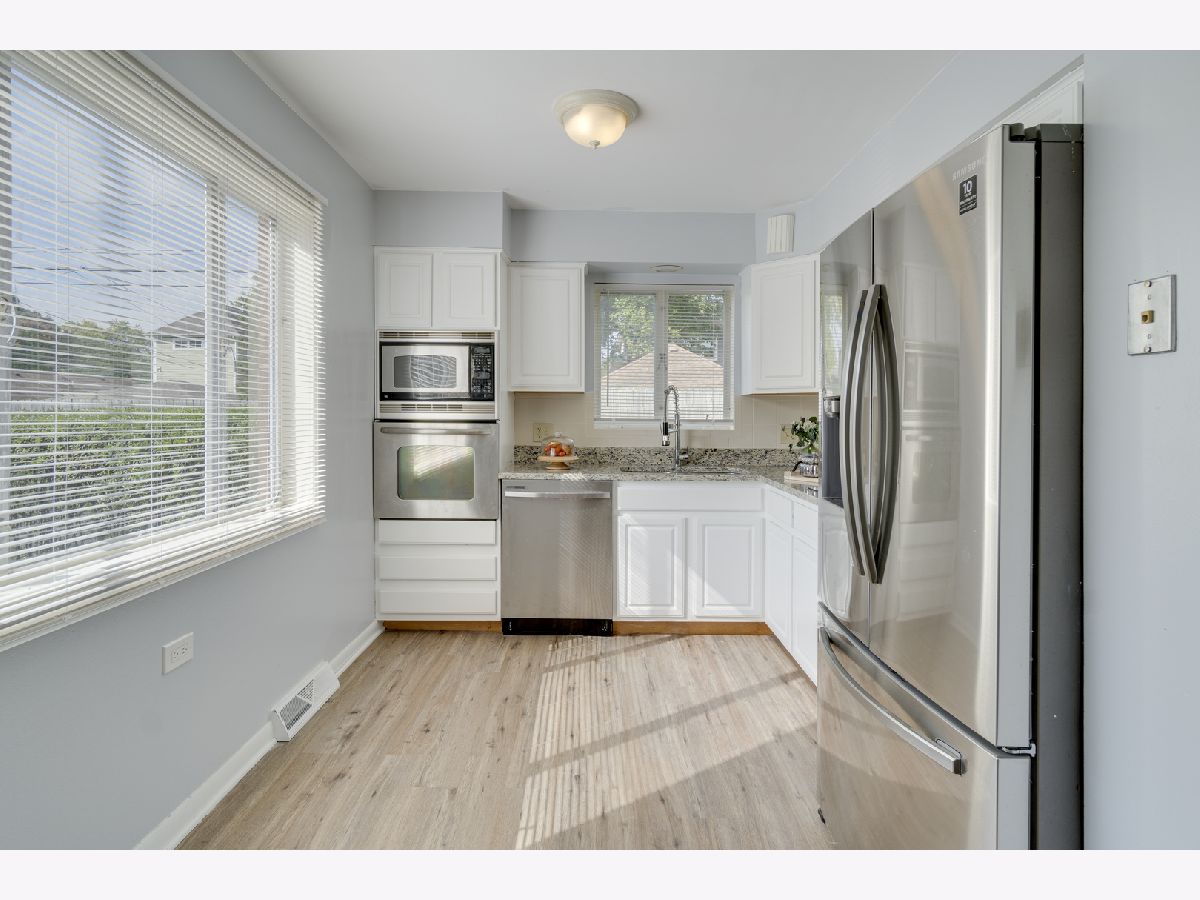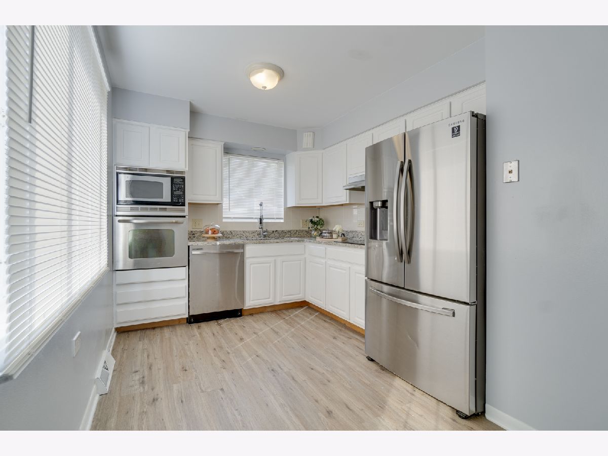 Location, location, location! One block to the Recreation Center (tennis courts, wave pool), 3 blocks to Metra Train Station, Downtown Mount Prospect & top rated schools. This end-unit townhouse with 3 upstairs bedrooms and full basement (partially finished) 1.5 bath located in the heart of Mt Prospect. Updated kitchen, freshly painted throughout and newer roof. Windows on 3 sides provide abundant natural light. Eat-in kitchen with white cabinets, brand new granite countertops! Stainless Steel appliances (new dishwasher, new electric cooktop, new under cabinet range hood, new kitchen faucet, newer refrigerator) newly done floors on main level and upper level. Updated bath with new vanity. Large partially finished basement for extra living space with large storage area. Located in a wonderful suburban neighborhood with great parks, award winning schools, shopping and restaurants. You have to see it to appreciate this one of the kind, sweet home! Parking space right outside the kitchen door. End unit with wonderful courtyard setting.