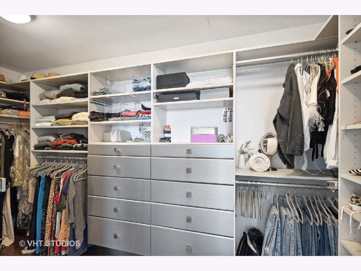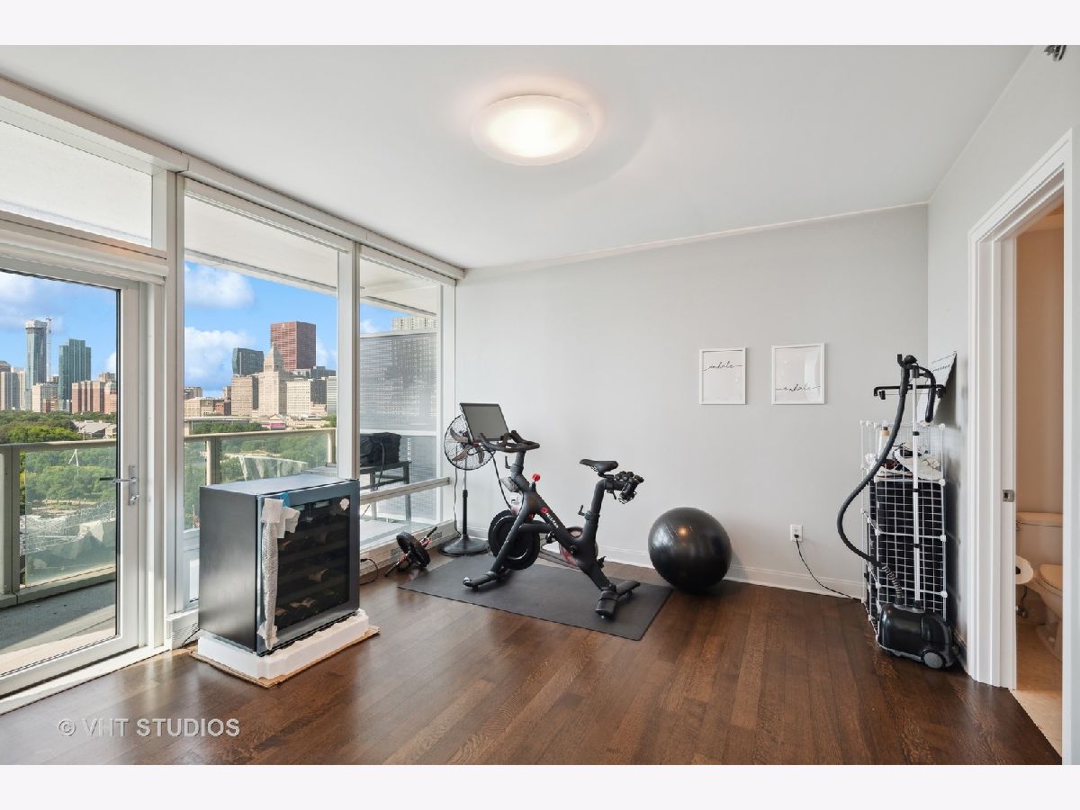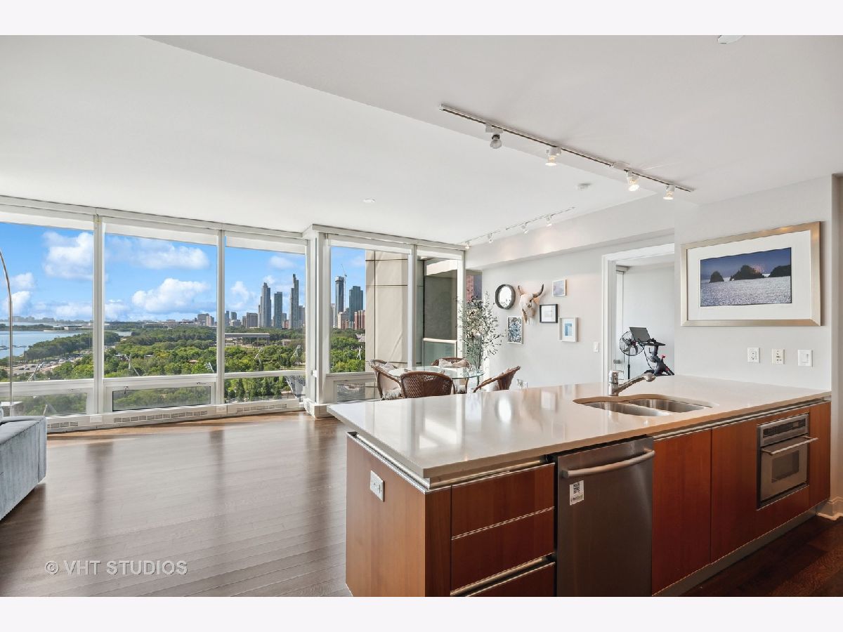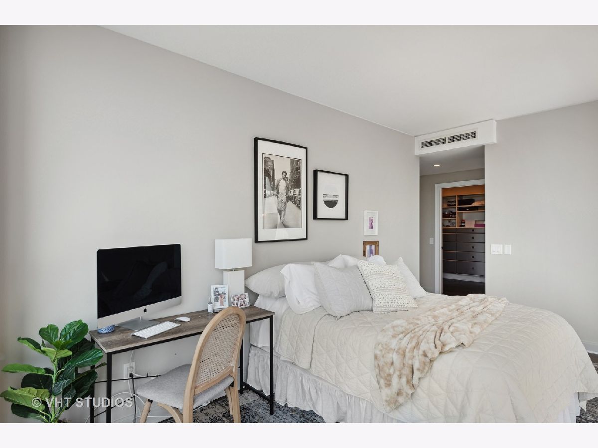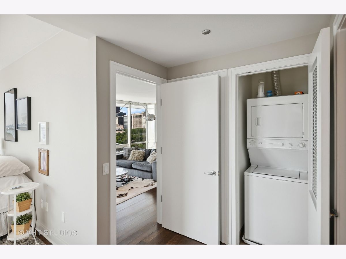 The perfect view height of the best representation of Chicago's Lake Michigan waterfront, Maggie Daley, Millennium and Grant Parks, Buckingham Fountain, incredible wall of significant wall ofArchitecture including CSO, former HQ of Encyclopedia Britannica, The Blackstone Hotel, Chicago Art Institute, Union League Club, Athletic Club and so much more. Residence 801 is the largest, south facing split bedroom, 2.1 bathroom floor plan at 340 on the Park, a southeast corner home, featuring floor to ceiling and only existing on floors 5 through 14. Magnificent and unobstructed views with no chance of ever being encumbered with sightline as far as Indiana and Michigan. Uninterrupted south and east glass curtain walls. Unique, augmented features include 5" quarter sawn, white oak "tongue and groove" hardwood floors throughout the entire residence, a primary suite with very accommodating walk-in closet completely built out with cabinetry, drawers, shelving and hanging space. A spa-like bathroom with larger glass enclosed shower, free standing soaking tub, floor to ceiling, large format, white-marble like porcelain tile with grey veining, large format, grey floor tiles, Snaidero vanity, white quartz counter, low profile, rectangular, ivory vessel sinks each with medicine cabinets, awevertical wall sconces and overhead lighting, full size stackable washer and dryer and built in speaker for music in the morning. Two zoned heating and cooling. Formal entry with room for a bench or small bureau, custom roller shades with additional remote control black out shades in primary suite. Freshly painted in a soft, contemporary grey, complemented by all white baseboards, doors and moldings. Separate living, and dining space with additional space for a third intimate seating area. Open kitchen concept with peninsula and breakfast bar overhang comfortably seating four. Quartz counters, under mount sink, disposal, stainless steel top of the line GE Monogram appliance package featuring built in oven, gas cooktop, vented culinary hood microwave and convection oven in one. Flat panel Snaidero cabinetry. Lower cabinets with pull out slider drawers. Central powder room. Second bedroom features 13' x 6' south facing terrace easily acclimating small table chairs and gas grill, walk-in closet, accommodates queen bed and office area with desk, walk-in closet with built-ins, full bathroom dressed in natural stone, Raised Snaidero vanity. Lighting purchased from Lightology. This is a full amenity building including 24 hour door staff, onsite management, maintenance and engineering team, dry cleaners, outdoor pet relief area, most convenient access to Mariano's and the Village Market than any other building in LSE. 25th amenities include 75' indoor 2 lane indoor lap pool, whirlpool, steam rooms, dry sauna, Winter Garden, private conference/dining room, complete caterer's kitchen, sun terrace, two communal gas grills, 4,000 square foot gym with state of the art equipment. Garage heated parking @ $50,000. Residence 801 is a very special and rare offering and will not disappoint even the most discriminating buyer.