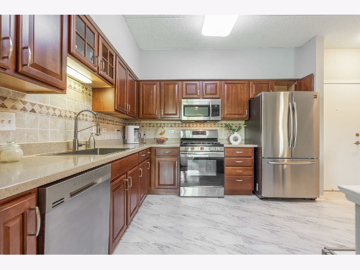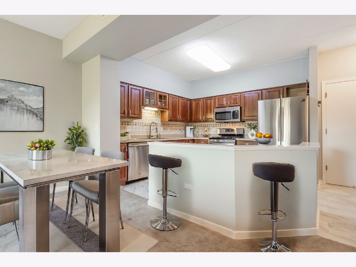 This is the Condo you have been waiting for! BEAUTIFUL, SUNNY and BRIGHT, 3rd Floor, 2-BEDROOM, 2 FULL BATH CONDO with CENTRAL AIR CONDITIONING, 2 CAR GARAGE, IN UNIT LAUNDRY, LARGE BALCONY and LARGE STORAGE. SPACIOUS Unit with GORGEOUS, Modern OPEN FLOOR PLAN. Move-In Ready Condition. BRAND NEW PAINT (2024) in the entire unit, NEWER STAINLESS-STEEL APPLIANCES (2021), NEWER WASHER and DRYER (2021). SPLIT BEDROOM LAYOUT. MASTER SUITE features (perfect for privacy) FULL BATH with DOUBLE SINK, Walk in SHOWER and a LARGE WALK-IN CLOSET. VERY SPACIOUS KITCHEN with PLENTY SPACE for a Breakfast TABLE. LOADS of KITCHEN CABINETS and COUNTER SPACE. Ample Closet Space. Dining Room/ Large Living Room - Combo. Spacious rooms filled with Sunlight. South Exposure. Access to the Private Balcony with a Nice View of beautiful landscaping through the sliding doors in the Living Room. Large In Unit Laundry Room with Full Size Washer and Dryer. 2 garage parking spaces: 1 underground HEATED - in the same building and 2-nd parking space # 5 in the Detached Garage Building. Large, Private, Secured Individual Storage Room # 32 in the front of the Garage Space. Planty of Guest Parking. The Owner pays only for Electricity. Low Monthly Assessment: covers: Heat/Hot Water, Gas, Water, Indoor, Heated Parking, Exterior Maintenance, Lawn Care, Garbage & Snow Removal. Pets Allowed (Cats and Dogs - up to 25 lbs.). Meticulously Maintained, Secured Building with Intercom System. Professionally Landscaped. Maintenance free living at its best! A Beautiful Place to Live. Wonderful Location: Close to Schools, Shopping, Restaurants, Public Transportation. Comfortable Living in a great Environment and Convenient Location!