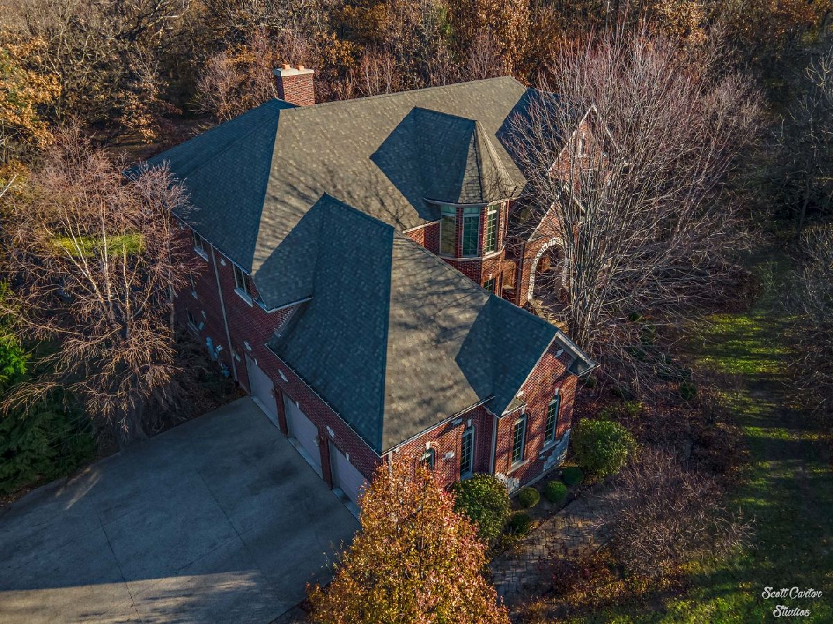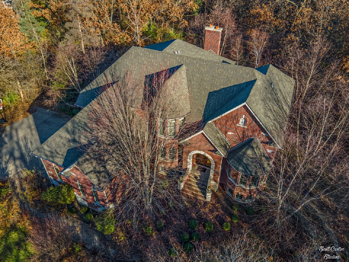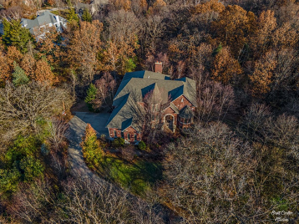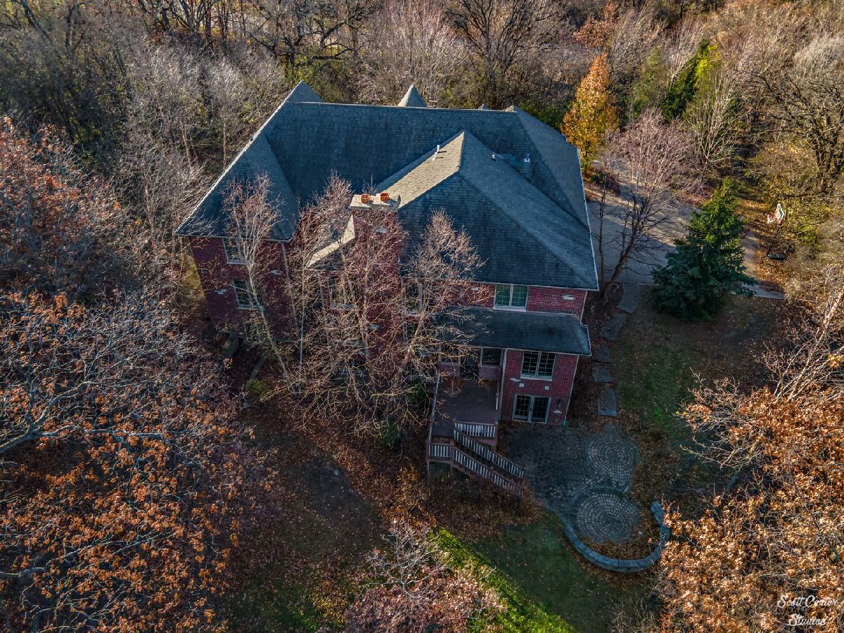 Beautiful professional landscaping and brick paver walkways greet you at this elegant home with 7 bedrooms, 6 full bathrooms, and a fully finished walkout basement. Step through the impressive wooden double doors in the arched entryway into the grand foyer, which features a curved staircase and opens to the living room highlighted by vaulted ceiling, fireplace and 2-story windows that show off picturesque views. The gorgeous formal dining room has been designed for entertaining. You'll love the gourmet kitchen including a spacious center island and breakfast room. Convenient in-law arrangement available on the main level includes a bedroom and full bathroom. The sunroom overlooks scenic views of your 1.2 wooded acres parcel. You'll also find a lovely home office or study with French doors on the main level. Each bedroom on the second level offers a private bathroom. The finished lower level offers a second kitchen, family room with fireplace, bedroom and full bathroom, plus a fitness room, game room, and storage space. Basement walks out to private backyard including a brick paver large patio with seating wall and deck with stairway down to the yard. Spacious home with perfect design and three car attached garage. Geothermal heating/cooling system. Renewable energy that is very efficient, sustainable and provides better air quality.