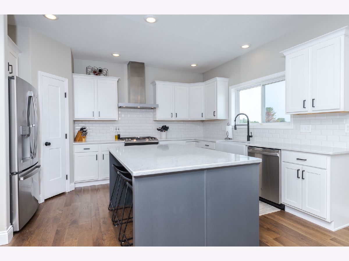 Beautiful 3 year old home is situated on one of the deepest lots in Fox Creek Sub. Newly fenced yard, 2 story entry. Custom kitchen with granite countertops, touch-less faucet and farmhouse sink, Soft close cabinetry. Stainless steel appliances w/French door fridge. Gas Stove with upgraded vent hood, direct vented to the outside. Large custom island eating bar. First floor Master suite with 2 vanities, tiled surround shower, large walk in closet. First floor laundry with sink. 3 additional bedrooms up with a full bath. Full partially finished basement, with a large Family Room. Framed in for a 5th bedroom and full bath has a egress window. Upgraded lighting, ceiling fans, carpeting, real hardwood sliced face sawmark French oak wood flooring. 20 x 20 back patio overlooking hole #2 on the green at The Den At Fox Creek.
