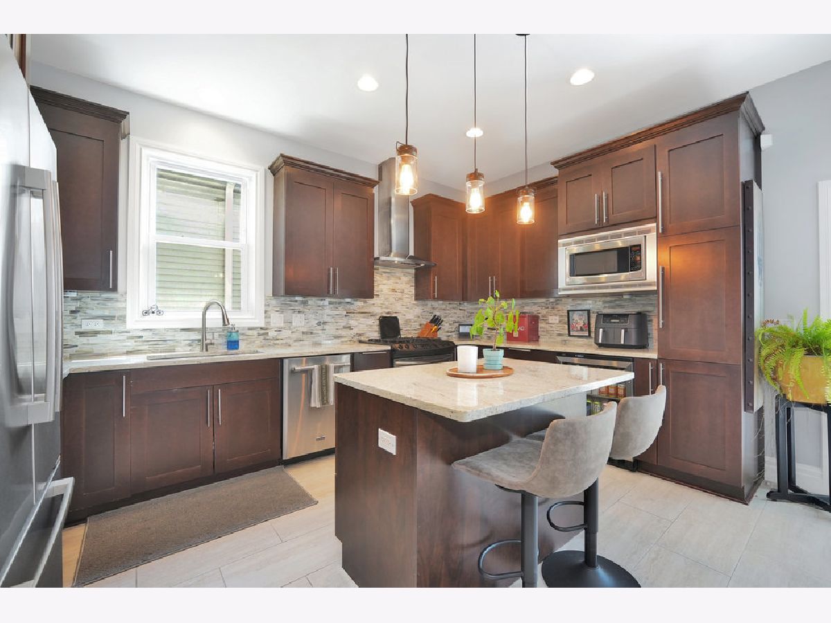 Welcome to exciting Avondale! This stunner, completely renovated since 2010 will not last! Offering a large open floor plan with 4 bedrooms and 4 full bathrooms. Formerly a three-flat converted back to single family, the footprint of this house is extra wide and deep plus 10 foot ceilings on the main floor! Beautiful, large sun-drenched living room with floor ceiling stacked stone fireplace & gleaming hardwood floors which flow into the elegant dining room with dazzling light fixture. Fabulous kitchen with solid custom cabinetry blended with River White granite countertops, custom stone backsplash, island with breakfast bar and stainless steel appliances - refrigerator new in 2021, dishwasher, oven/range with hood & bonus beverage fridge. Large sitting room off kitchen has a cool coffered ceiling with movable light fixture & sliding glass door w/built-in blinds gives access to rear deck and exterior oasis. Main floor also features an office/possible bedroom with built-in desk & French doors directly across from the updated full bath. Hardwood floors flow throughout the second floor with an incredible master suite featuring luxury master bath with double vanity, whirlpool tub & separate shower plus walk-in closet & additional "hidden" storage in the dormer areas. 2 additional bedrooms - tons more closet space including dormer storage in bedroom 3 - and full bathroom on this level. The skylight on the solid wood staircase brings in lots of natural light. All bedroom closets feature custom Elfa organizational systems. Don't miss the finished lower level with family/play room, possible 5th bedroom & full bathroom make related living a breeze. Basement also boasts wet bar, huge laundry area with utility sink, storage/bonus room plus tons of additional storage areas & walkout door to the yard. In the backyard you'll find a lower level patio below the deck lounge area, natural gas line for grilling, lush landscaping, garden area & service walk to the two car garage. This home has all newer electric, plumbing, windows, roof, mechanicals in the last 12 years! Fresh paint throughout including walls, ceilings & trim. 2022 - new plumbing line going out to the city sewer line with cleanout access in front landscaping bed. Drain tile system. Hot location near tons of restaurants & bars, park with rec center, expressway. Urban living with suburban feel. TURNKEY PROPERTY WITH NOTHING TO DO!