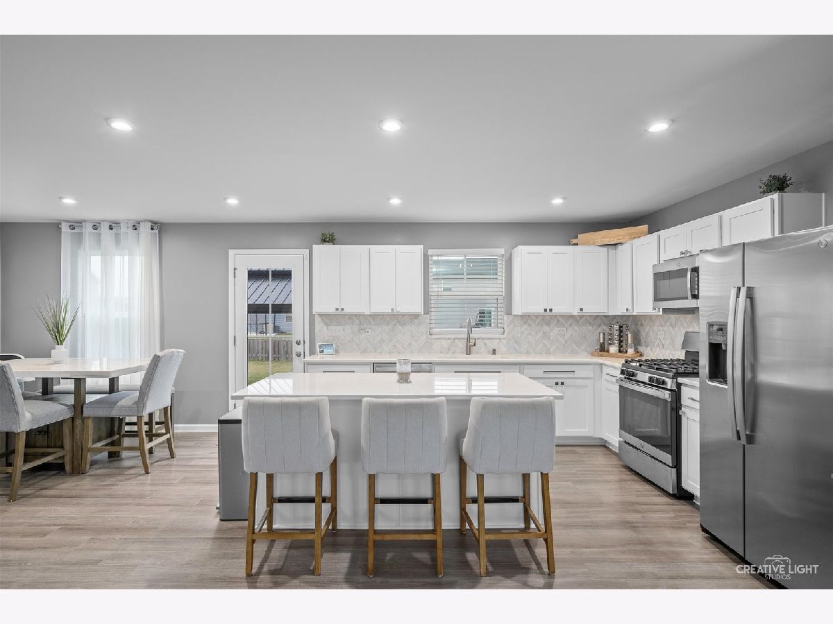 Welcome to this wonderful "better than new" home in the sought-after Balmorea Subdivision! The fantastic 1st flr showcases the open floor plan starting with the inviting family room that connects the kitchen & dining area, creating an awesome space for great dinner planning & entertainment. The 1st floor main area has upgraded vinyl plank flooring throughout. The kitchen offers lots of upgraded cabinetry, ample countertop space, an island for additional seating, all stainless steel appliances, new quartz countertops, & new marble backsplash! The adjacent dining area opens to a fantastic 25x30 concrete patio plus metal pergola w/ screens-great for outdoor fun! There is also a 1st flr flex rm off of the dining area perfect for home office, den, or playroom! The 2nd floor boasts a primary suite offering the perfect retreat with great windows, large walk in closet, & private bath w/ dual sink plus walk in shower! 3 more nice sized bedrooms with fantastic closet space AND a 2nd floor laundry complete the 2nd floor! Lovely window treatments throughout! Basement is just waiting for your touches! The two car garage has an epoxy floor finish, accent wall, and tv mount ready for projects! Close to Park and a walking path in subdivision! Close to schools, shopping, Metra, & 56/88! Perfection!!!