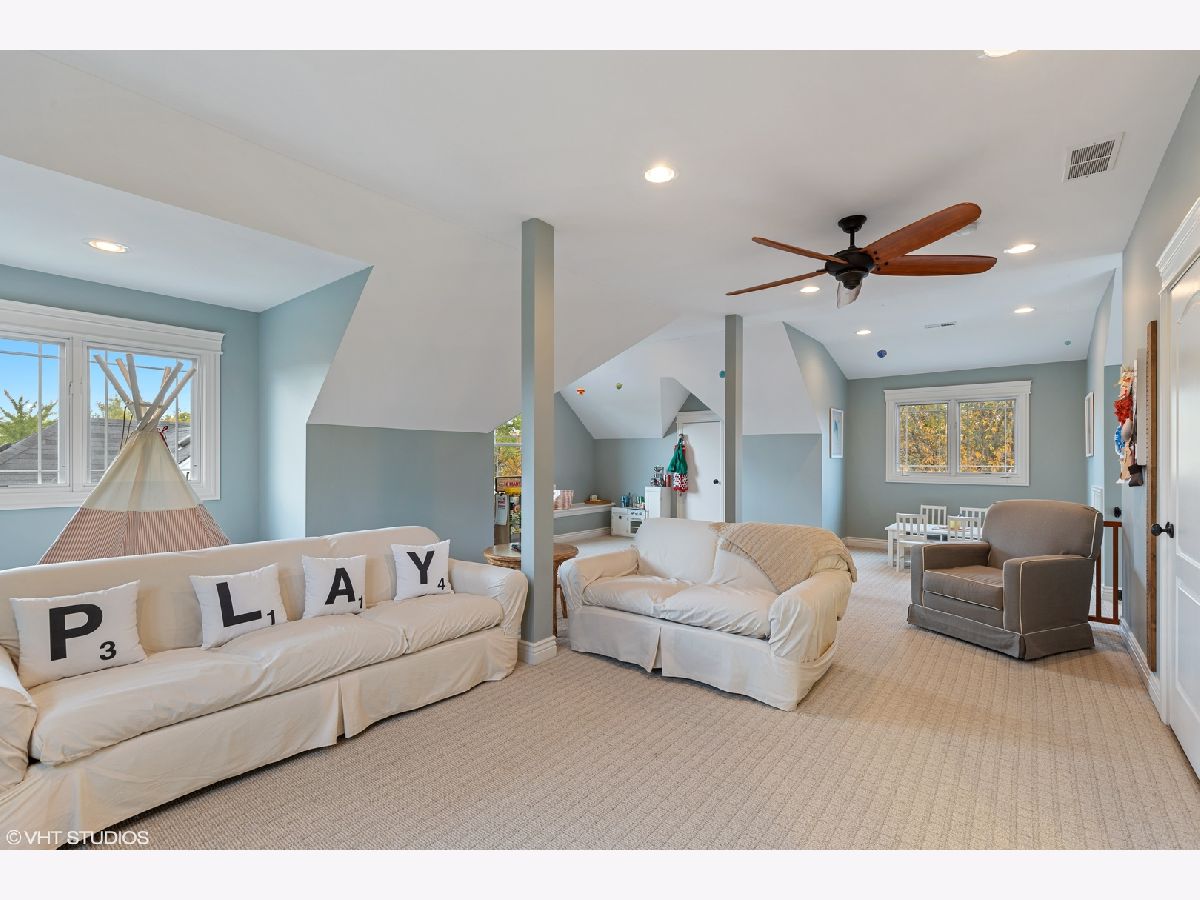 Rarely available newly constructed home in the sought-after historic district of LaGrange. Gorgeous 2008 built home with four fully finished levels and brand new 2020 kitchen. Grand millwork and 10-foot ceilings create a stunning first floor with an open functional floor plan. Beautiful kitchen remodeled in 2020 boasts custom cabinets, stainless steel appliances, large butler pantry, eat-at island and banquette dining area ideally open to the family room. Family room adorned by a statement fireplace and floor-to-ceiling doors that lead to a large entertaining porch overlooking yard and patio area. Remarkably finished basement includes 9-foot ceilings, stone fireplace, wet bar, full bathroom, 5th bedroom and a workout room. Second floor is perfect with four spacious bedrooms, including a luxurious master bathroom, second bedroom with on-suite bathroom, large double vanity in hall bathroom and laundry. Large finished light-filled third floor with living area and full bathroom. Perfectly located with easy walking distance to train, downtown, parks and schools. Kindly exclude the swing set.