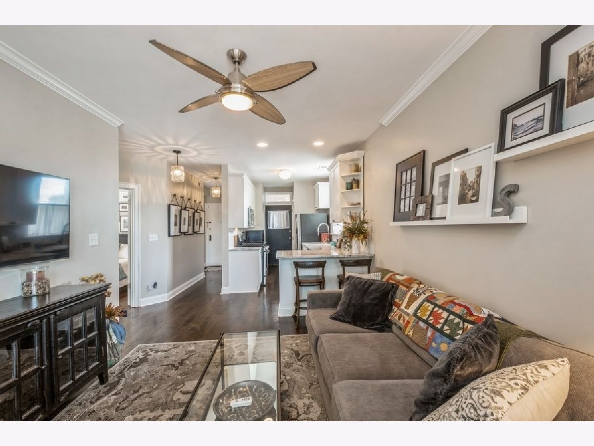 Vibrant Roscoe Village! Beautiful courtyard building! Top floor unit with tons of natural light. Large kitchen with stainless steel appliances, breakfast bar and all new cabinets, granite countertops and backsplash. Two generously sized bedrooms with organized, deep closets. In unit washer/dryer. Extra storage included. Steps to shops, dining, bars, boutiques and all that Roscoe Village has to offer.