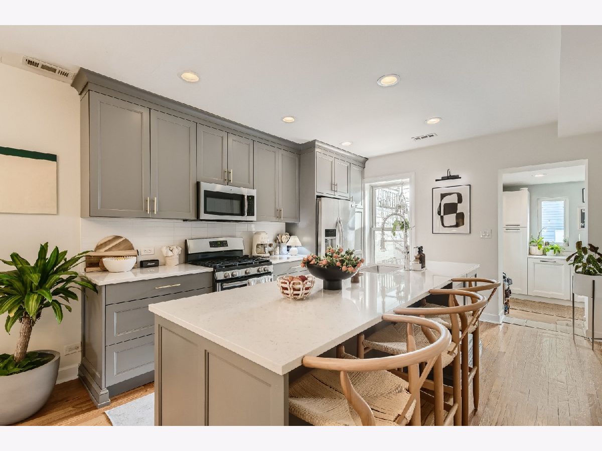 Check out this beautiful 2 Bed/2 Bath bungalow with bonus office nook in growing Humboldt Park! Past the bright and comfortable front patio, you'll first notice the AMAZING updated kitchen featuring a 10 ft quartz kitchen island, stunning Winnbrook oak cabinets and stainless steel GE/Frigidaire appliances. Fantastic layout throughout as well. The first floor has one bedroom and one full bath, beautiful laundry/mudroom w/ plenty of cabinets and an LG washer & dryer. New Roof with Skylights. Brand new garage from Danley's with a party door that opens to an amazing and party ready brick paved patio- perfect for entertaining your guests. The second floor is a sanctuary with one XL bedroom with a full bath, shower, AND a built-in closet space, plus bonus office nook that leads to a walk out patio. A short walk from 200+ acres of trails and nature. Playground, tennis courts, and pond are all steps away from your front door. Surrounded by cafes, restaurants, shopping, grocery stores, and fitness, live luxuriously without sacrificing everything the city has to offer.