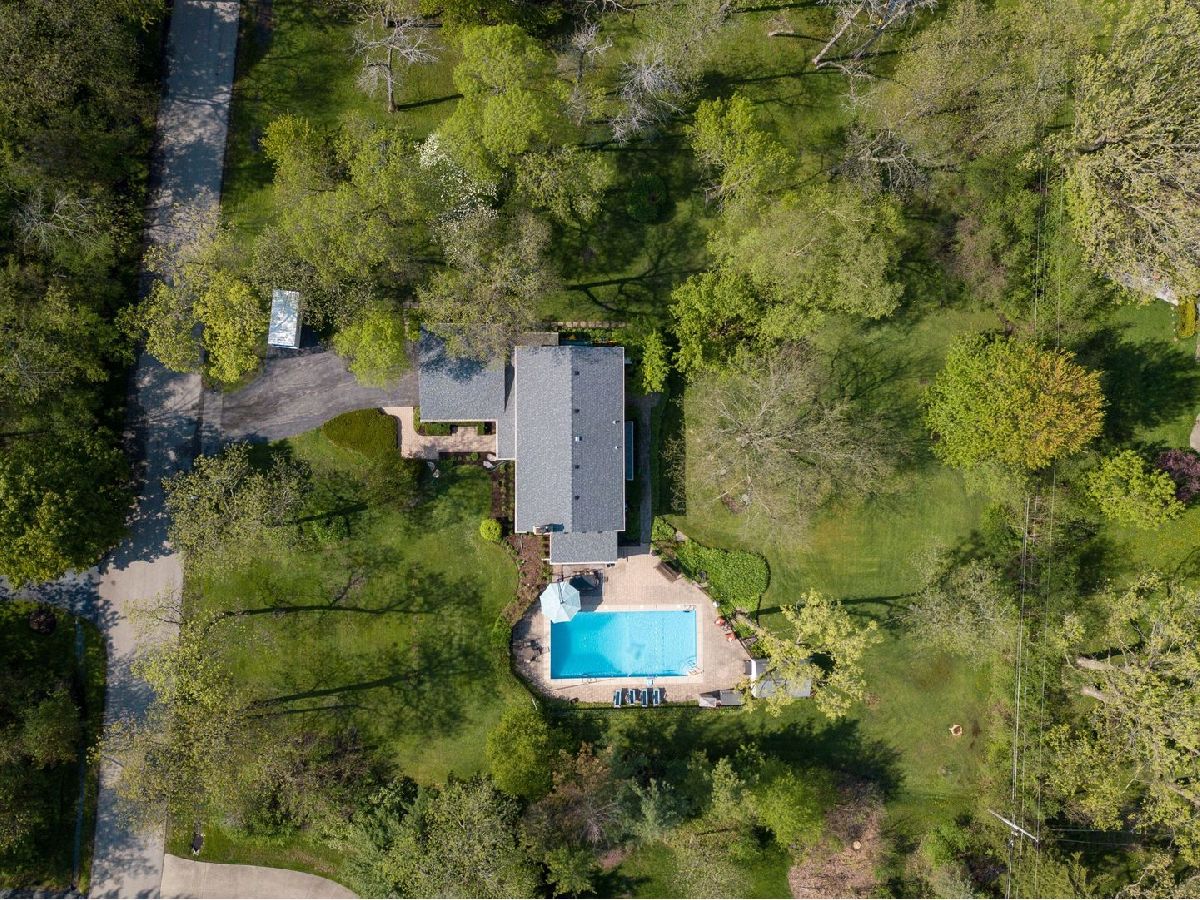 District 96 and Stevenson High School! Beautiful 4 bedroom / 2.1 bath on private wooded acre lot. Large family room boasts hardwood flooring, beamed ceiling and library. Kitchen addition by acclaimed architect Robert Coffin with large eat in area, hardwood flooring, solid surface counter tops and gorgeous wall of windows overlooking picturesque yard. Formal living and dining room both with hardwood flooring. Main level den and sunroom overlooking pool round out the first floor. Huge primary suite with 2 walk in closets and nicely appointed bath. Three additional bedrooms nicely sized with Closets by Design, new doors and hardware. Hardwood flooring under all upstairs carpeting. Stunning yard with in ground pool, brick paver patio, shed and tons of privacy! Newer roof and mechanicals, whole house power generator. Close to downtown Long Grove with adorable restaurants, shopping and more! Top rated schools!! *Seller is offering 1% closing cost credit to buyer at closing!*