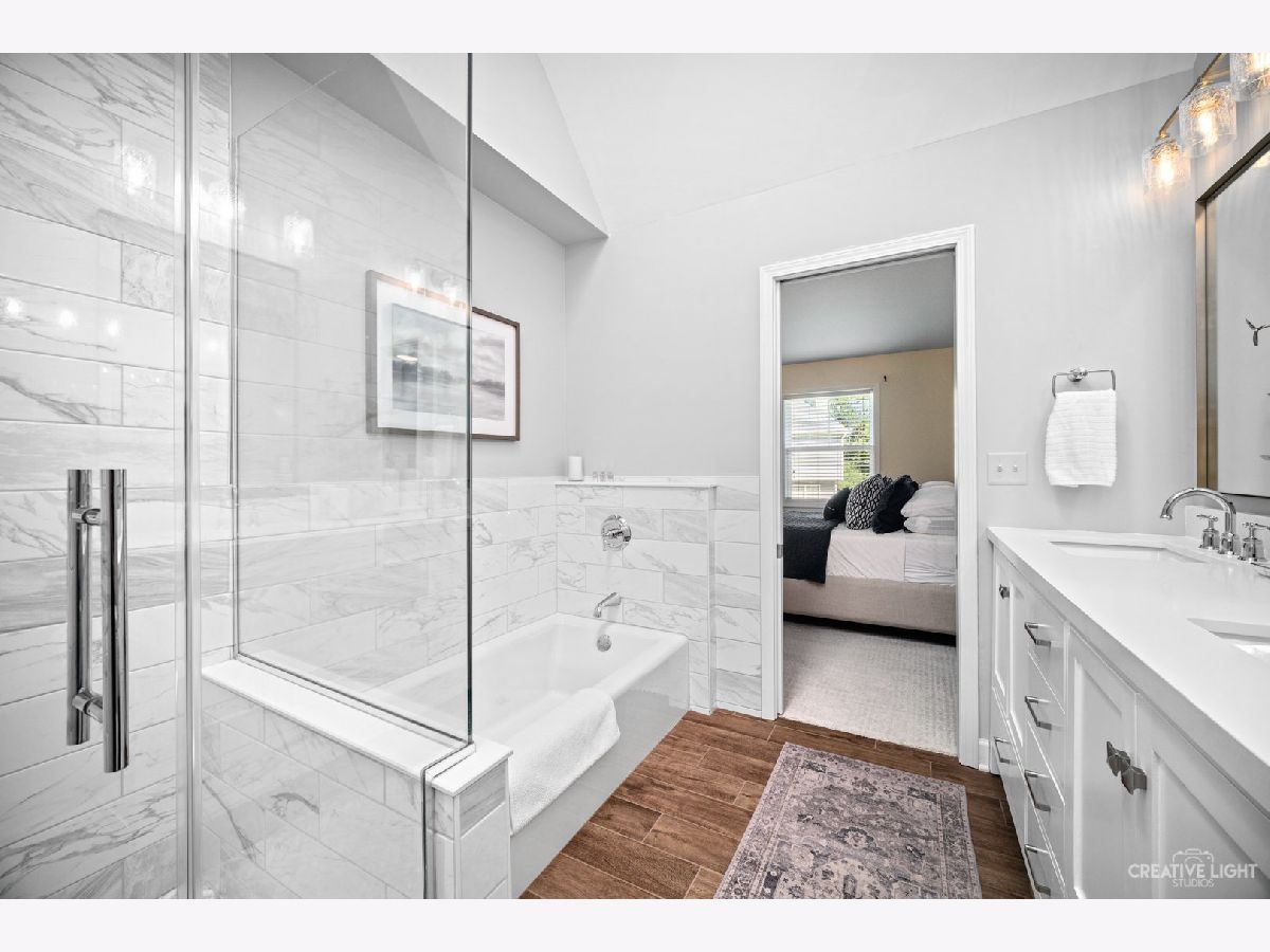 Absolute Perfection! Located on the Warrenville border, this light and bright 2-story unit shows like a model! Kitchen with subway tile, quartz countertops, ss appliances and white cabinets opens to living and dining rooms. Dining room is updated with board and batten and a beautiful light fixture. Stunning new hardwood floors throughout the first floor and new carpet upstairs complete the 5-star look. New sliding door opens to the newer deck that overlooks green space. New built-in desk and shelving units make this oversized loft the perfect space to work from home. All baths have been updated 2021. Designer colors throughout! Wait until you see the full finished basement, complete with workout and entertainment rooms. This extra space is perfect to unwind from the day. This location of Kresswood Trails is a little hidden gem. Walking distance to Kress Creek Farms Park and Blackwell Forest Preserve is across the street. Close to hospital and shopping. This home will not disappoint.