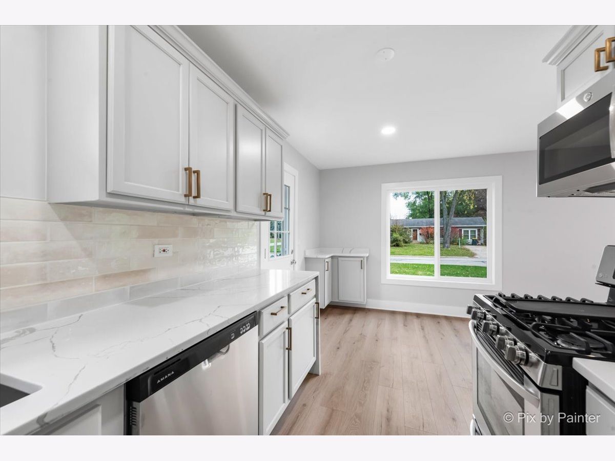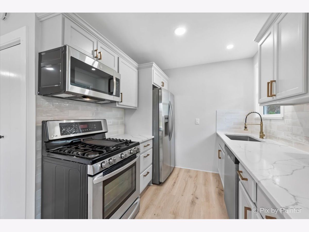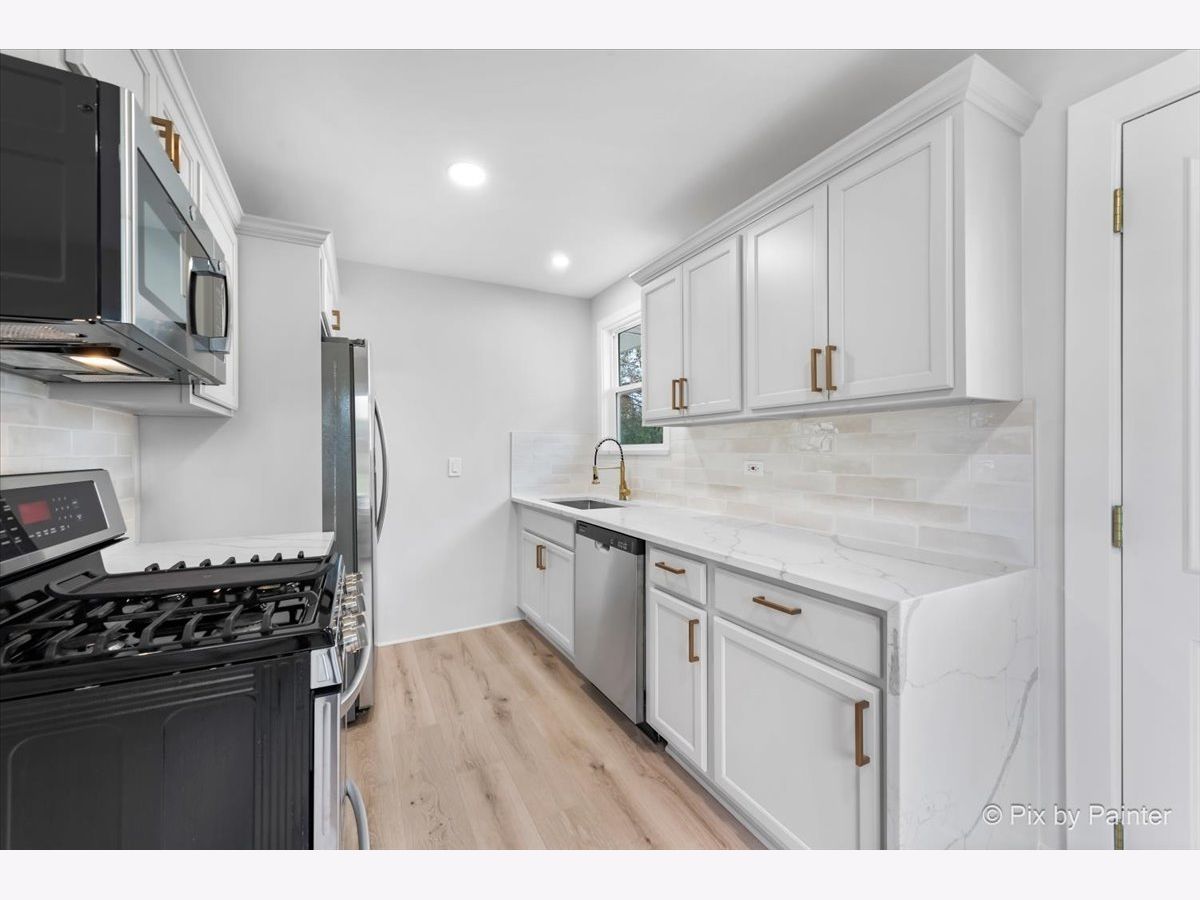 Located in the heart of Carol Stream, this updated ranch is just what you are looking for. As you enter into the spacious living room, you will find a stylish feature wall and luxury flooring throughout. The kitchen and dining combo are equipped with a corner coffee bar, modern quartz countertop with waterfall feature, chic backsplash, and stainless appliances. Down the hall, sits three spacious bedrooms. The primary bedroom is equipped with an ensuite bathroom sporting modern finishes. Similar sleek finishes carry over to the sizable 2nd bathroom down the hall. The yard is also fully fenced and ready for furry friends! This property is conveniently located within minutes of Glenbard North highschool and I-355. Nothing to do but move in! New in 2023 is windows, roof, gutters, water heater. HVAC serviced in 2023. No flood insurance required.