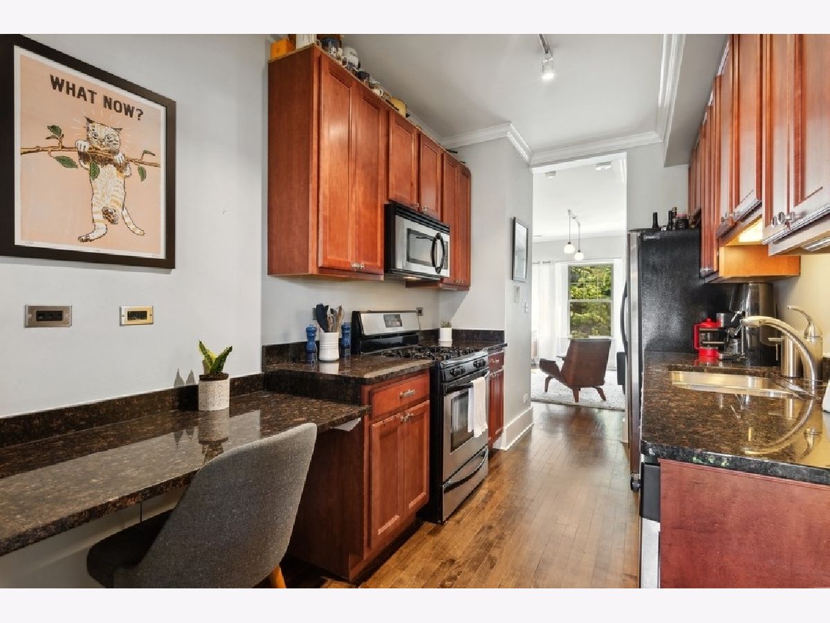 Welcome to your urban sanctuary in the heart of Roscoe Village! This light-filled, second-floor unit offers the ultimate blend of elegance and convenience. As you step inside, be greeted by the warm embrace of hardwood floors that flow seamlessly throughout the space, complemented by impeccable millwork and closets, embodying refined craftsmanship at every turn. Entertainment is elevated to new heights with built-in surround sound, creating an immersive experience for gatherings or quiet nights in. Indulge in the luxury of a limestone bathroom, a serene retreat for relaxation and rejuvenation. The chef's kitchen is a culinary haven, equipped with 42" cabinets, granite countertops, stainless steel appliances, and abundant storage space, ensuring both style and functionality for the discerning home chef. Step outside onto your enchanting private deck, a verdant oasis perfect for al fresco dining or sipping your morning coffee amidst the tranquil surroundings. With the convenience of a washer/dryer in-unit and additional storage in the basement, every need is effortlessly met. Plus, enjoy the perks of living in a pet-friendly building with strong reserves, low HOA fees, and the option to rent, offering flexibility and investment potential. Located just steps from the CTA brown line, boutique shops, delectable dining options, and vibrant nightlife, embrace the epitome of city living on this quiet, tree-lined street with ample street parking. Don't miss your chance to experience the best of Roscoe Village living. No showings until Saturday, May 18.