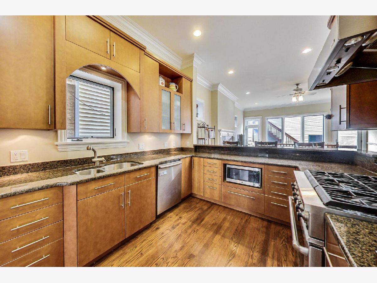 Welcome home to this impeccably maintained 6 bedroom single family home in the desirable Roscoe Village neighborhood and Audubon School District. Character and warmth encompass this timeless home with a convenient floor plan, including 4 beds up! Upon entering the home you are greeted with a cozy living room featuring crown molding, fireplace, and hardwood floors leading you into the spacious dining room. Kitchen features stainless steel appliances, granite countertops, breakfast bar, custom kitchen cabinetry and a spacious walk-in pantry. The kitchen flows beautifully into the family room featuring a second fireplace and opening to an oversized walk-out deck, perfect for grilling and entertaining. Just steps above, you will find the massive private roof deck complete with a pergola. The upper level showcases a king-sized primary suite with a third fireplace, two walk-in closets and an ensuite bath featuring dual vanities, Jacuzzi tub, and separate steam shower. Three additional generously sized bedrooms, a beautiful full bath and full-size side-by-side washer/dryer complete this level. The lower level boasts an enormous rec room featuring newer carpeting, two additional bedrooms, a full bath and loads of storage. This home has been meticulously maintained with new upgrades including a new hot water tank and sump pump (2021), 2 new furnaces (2018/2017), new A/C (2018), and new roof (2016.) The main level was freshly painted this year. Located just blocks from the award-winning Audubon School, shops, grocery stores and great restaurants including Turquoise Restaurant, The Region, Le Sud, Lucy's Cafe, Pilates & Coffee and Lush. Enjoy everything Roscoe Village has to offer!