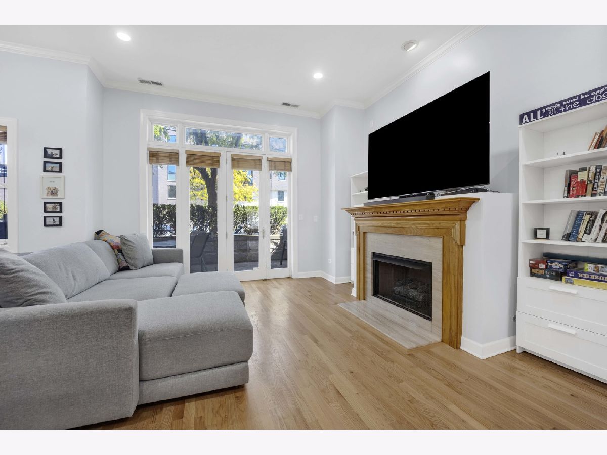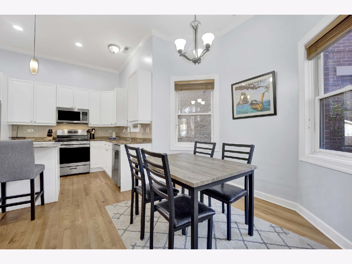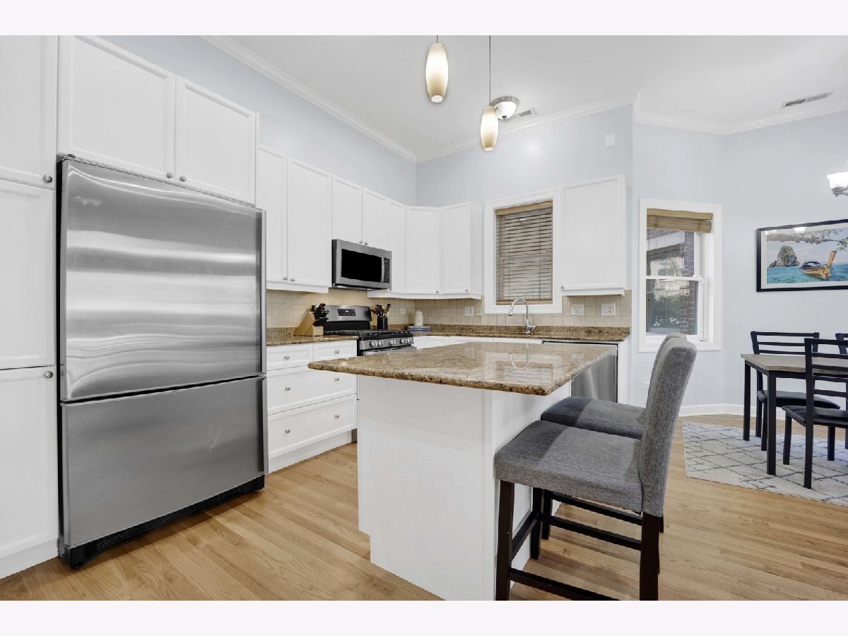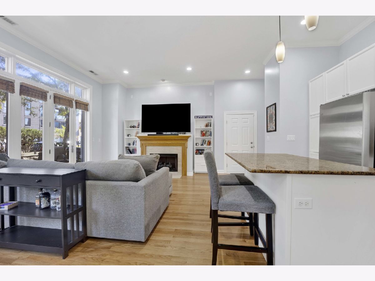 Be impressed by the peace and quiet of this stunning 2 bed, 2 bath Lakeview condo nestled between vibrant Southport Corridor and Roscoe Village! Step into a spacious open-concept living area with tall ceilings and an abundance of natural light. The living room features a cozy gas fireplace, perfect for relaxing evenings, and beautiful hardwood floors that flow seamlessly throughout the home. The open kitchen boasts an island with breakfast bar, stainless steel appliances, and incredible cabinet storage. Adjacent to the kitchen, a separate dining area offers a perfect setting for more formal meals. This home is wired for surround sound, making it perfect for hosting guests or enjoying a cinematic experience. Retreat to the expansive primary bedroom suite, complete with a luxurious soaking tub and ample closet space, creating a private oasis for relaxation. The second bedroom is also generously sized and offers flexibility for a guest room, home office, or workout space. Step outside to your private front patio, a serene spot for morning coffee or evening relaxation. Additional conveniences include a dedicated garage parking spot, or commute with ease with a 3 minute walk to the Brown Line and the Ashland bus across the street. Enjoy this unbeatably convenient location with the added bonus of a private and surprisingly quiet unit. Don't miss the opportunity to make this exquisite condo your new home!