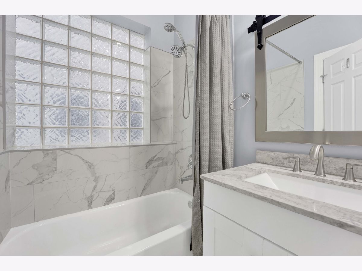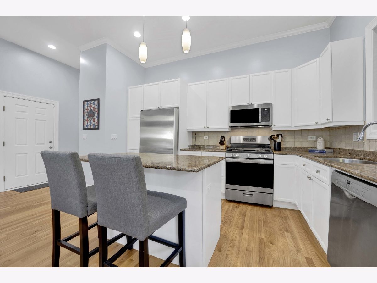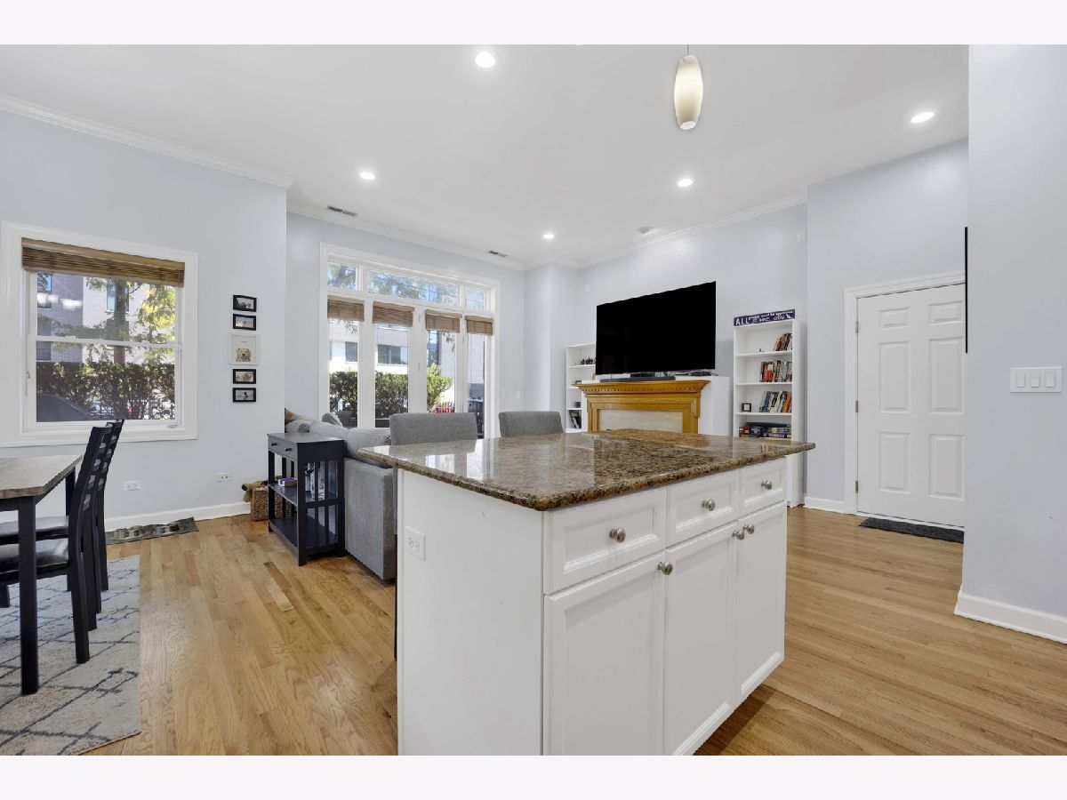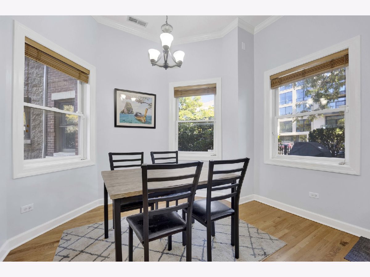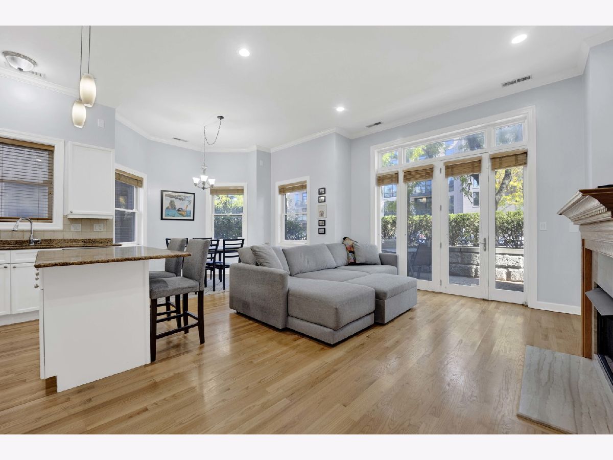 Be impressed by the peace and quiet of this stunning 2 bed, 2 bath Lakeview condo nestled between vibrant Southport Corridor and Roscoe Village! Step into a spacious open-concept living area with tall ceilings and an abundance of natural light. The living room features a cozy gas fireplace, perfect for relaxing evenings, and beautiful hardwood floors that flow seamlessly throughout the home. The open kitchen boasts an island with breakfast bar, stainless steel appliances, and incredible cabinet storage. Adjacent to the kitchen, a separate dining area offers a perfect setting for more formal meals. This home is wired for surround sound, making it perfect for hosting guests or enjoying a cinematic experience. Retreat to the expansive primary bedroom suite, complete with a luxurious soaking tub and ample closet space, creating a private oasis for relaxation. The second bedroom is also generously sized and offers flexibility for a guest room, home office, or workout space. Step outside to your private front patio, a serene spot for morning coffee or evening relaxation. Additional conveniences include a dedicated garage parking spot, or commute with ease with a 3 minute walk to the Brown Line and the Ashland bus across the street. Enjoy this unbeatably convenient location with the added bonus of a private and surprisingly quiet unit. Don't miss the opportunity to make this exquisite condo your new home!