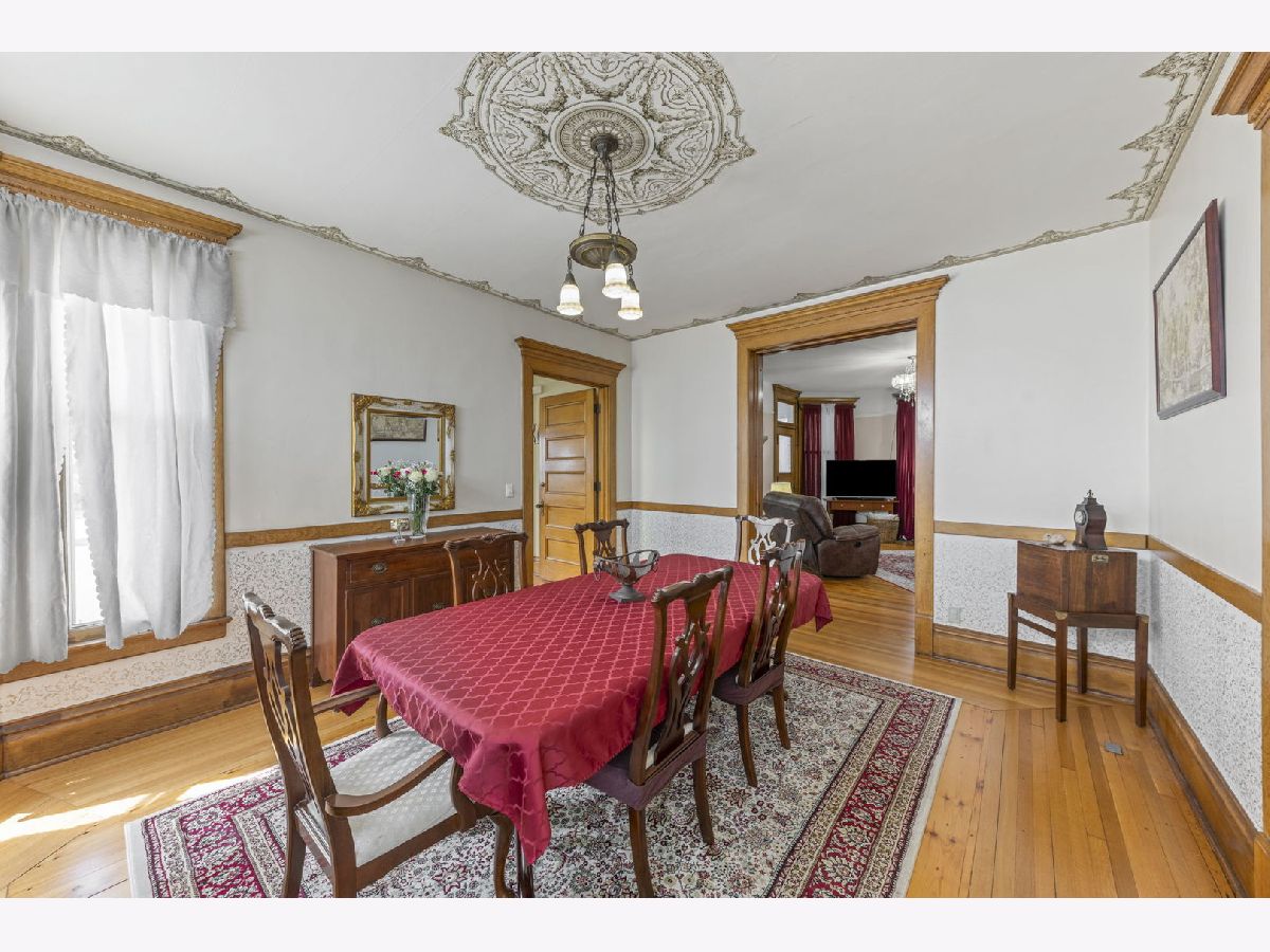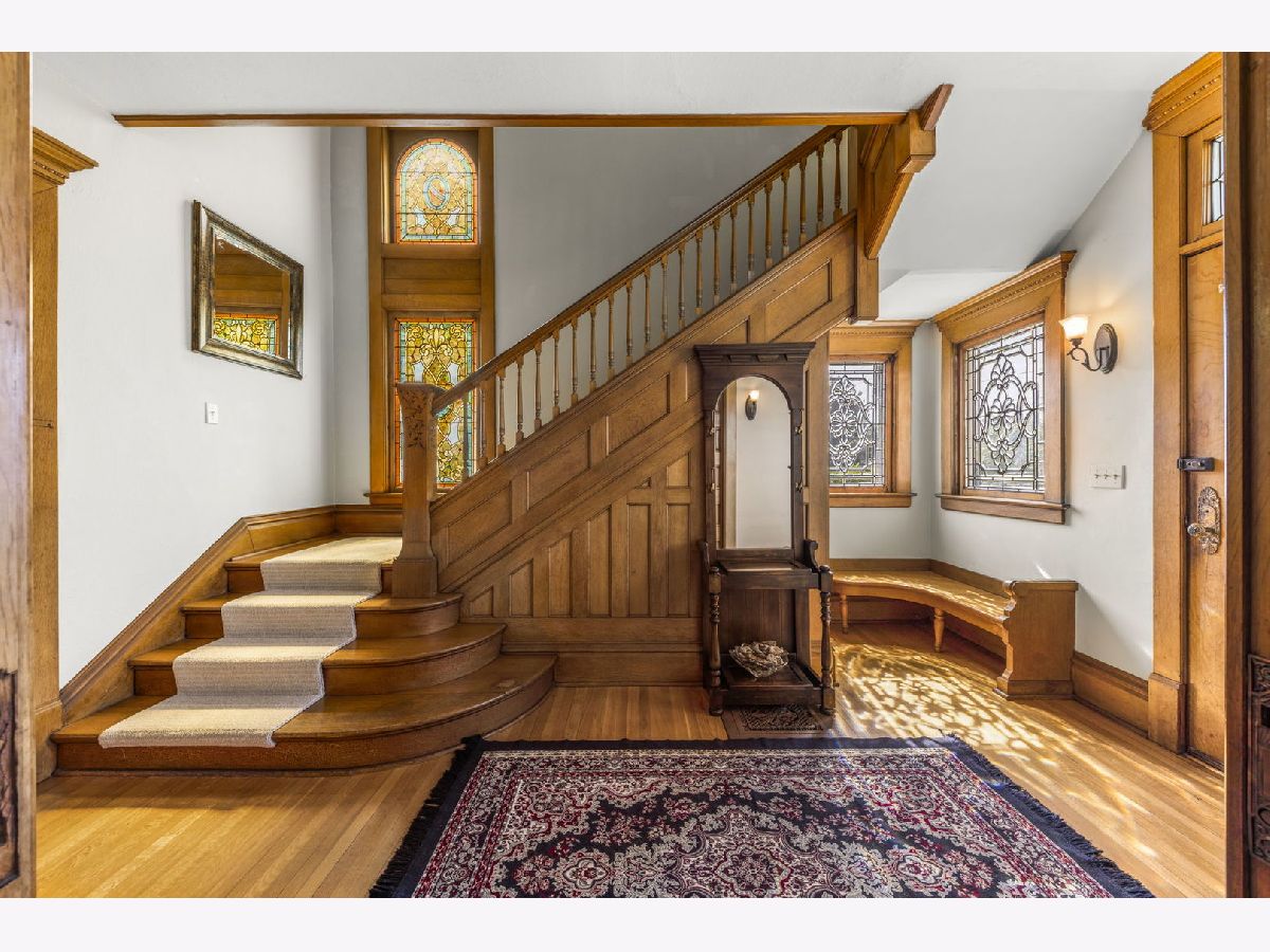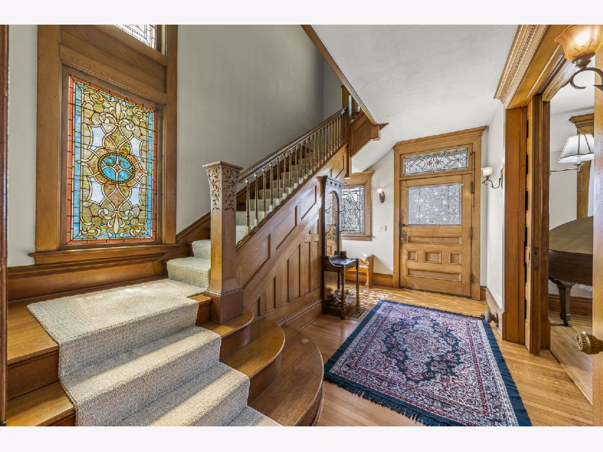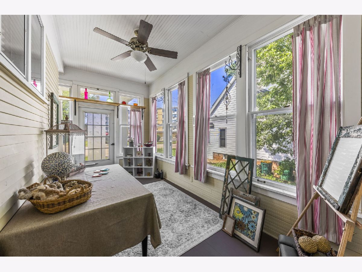 Experience seamless blend of modern conveniences with historic yesteryears craftmanship in this enchanted home. Step into the 2 story entryway and be captivated by the grand staircase that display the lead and stain glass windows. These large light-filled windows highlight the detailed wood trim and high ceilings, creating a warm and inviting atmosphere. To the right of the staircase, you'll find the front room, perfect as a music room, featuring a large picture window and lead glass transom that mirror the ones in the entry. Through the pocket doors, enter the cozy family room with bay windows and the original fireplace facade, now upgraded to remote start with temperature settings for easy use. Adjacent to the family room is a 3- season porch. To the right of the family room, is the spacious formal dinning room that is perfect for gatherings. It leads to the servers hall with swing door and sink. Kitchen hosts stainless steal professional Viking appliances, white maple soft close cabinets, quartz countertops, farm house sink, beverage fridge and butler pantry with built -in cabinetry. Also on the first floor is a large master bedroom, currently being used as a playroom and full bath featuring a charming clawfoot tub with shower. Near the back door, you'll notice a 2nd stair case that leads to the second level, there you will find 3 generously good size bedrooms, some with walk-in closets. A second 3 seasons room perfect for plants or reading area and adjacent to this room is a versatile room for office space, work or lounge space. For added convenience, the second floor houses a laundry area with luxury vinyl, a washer & dryer, above cabinetry, and a sink. But wait, there's more! The third level offers a staircase leading to an expansive unfinished attic, perfect for storage or ready to be transformed into additional living space or play area. Car enthusiasts and hobbyists will appreciate the 3-car garage with a carport and high bay door, complete with a full walk-up second story. There is plenty of room to accommodate a motor home, boat, cars, toys, and tools. This 1896 home also features (1991) concrete deep-poured foundation, updated electric, reverse osmosis system, newer garage roof in 2020, 2023 new white vinyl partial fenced in the front and side yard that offers privacy and outdoor enjoyment. This home is a true gem, meticulously maintained and ready for its new owners to cherish and enjoy. Don't miss the opportunity to make this timeless beauty your own!