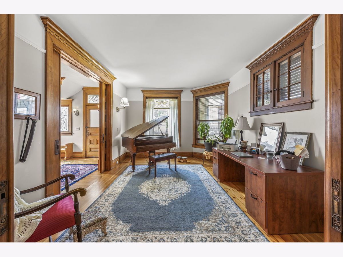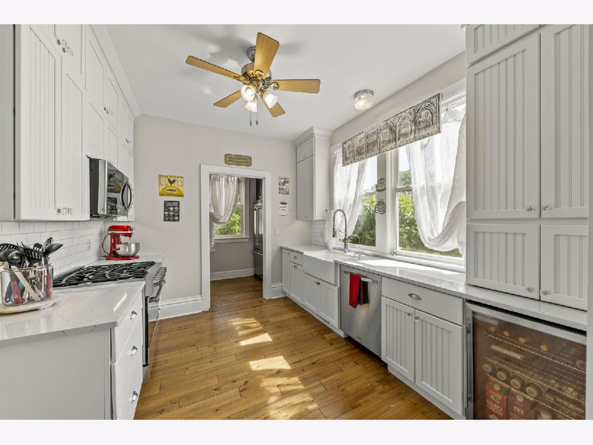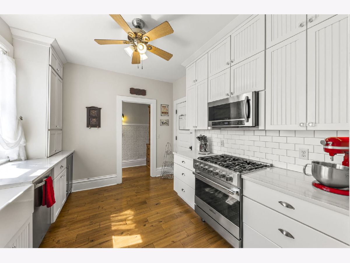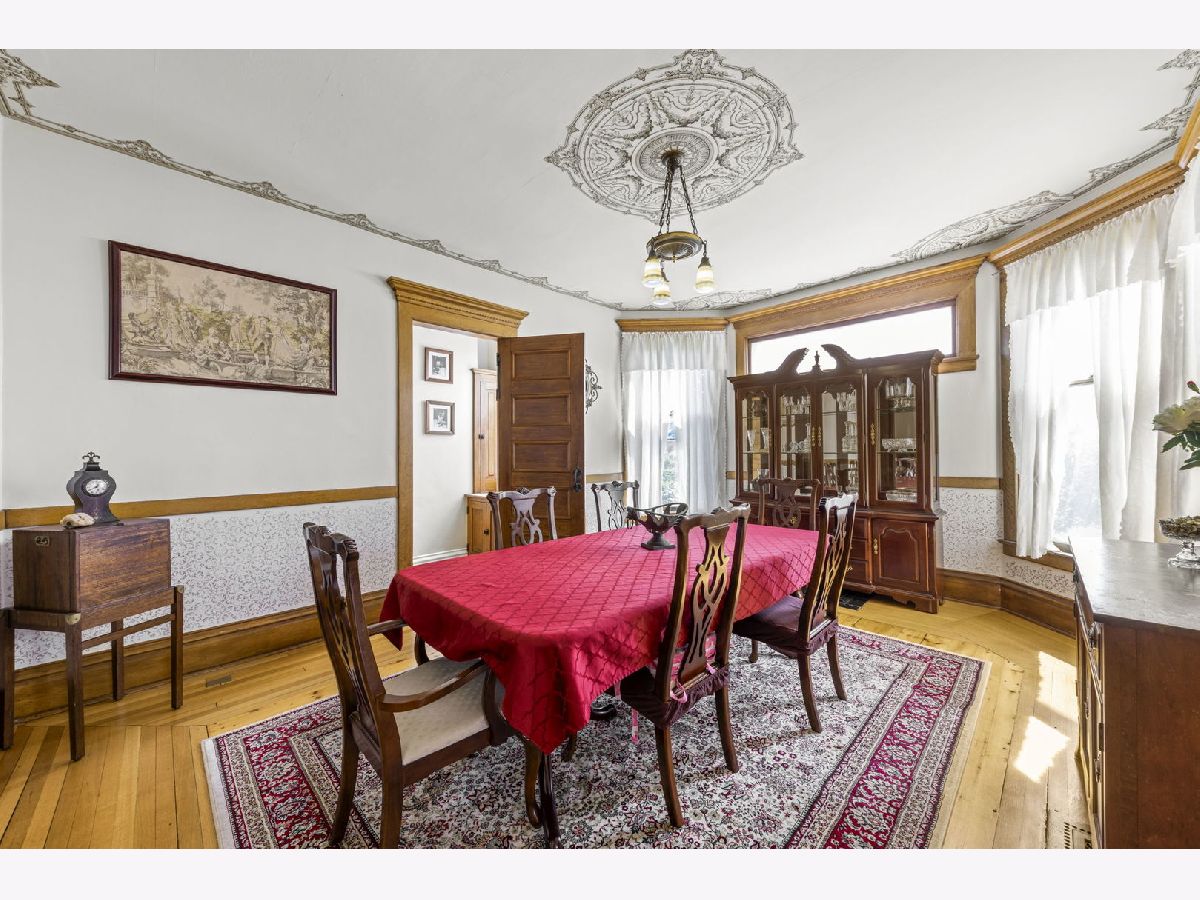 Experience seamless blend of modern conveniences with historic yesteryears craftmanship in this enchanted home. Step into the 2 story entryway and be captivated by the grand staircase that display the lead and stain glass windows. These large light-filled windows highlight the detailed wood trim and high ceilings, creating a warm and inviting atmosphere. To the right of the staircase, you'll find the front room, perfect as a music room, featuring a large picture window and lead glass transom that mirror the ones in the entry. Through the pocket doors, enter the cozy family room with bay windows and the original fireplace facade, now upgraded to remote start with temperature settings for easy use. Adjacent to the family room is a 3- season porch. To the right of the family room, is the spacious formal dinning room that is perfect for gatherings. It leads to the servers hall with swing door and sink. Kitchen hosts stainless steal professional Viking appliances, white maple soft close cabinets, quartz countertops, farm house sink, beverage fridge and butler pantry with built -in cabinetry. Also on the first floor is a large master bedroom, currently being used as a playroom and full bath featuring a charming clawfoot tub with shower. Near the back door, you'll notice a 2nd stair case that leads to the second level, there you will find 3 generously good size bedrooms, some with walk-in closets. A second 3 seasons room perfect for plants or reading area and adjacent to this room is a versatile room for office space, work or lounge space. For added convenience, the second floor houses a laundry area with luxury vinyl, a washer & dryer, above cabinetry, and a sink. But wait, there's more! The third level offers a staircase leading to an expansive unfinished attic, perfect for storage or ready to be transformed into additional living space or play area. Car enthusiasts and hobbyists will appreciate the 3-car garage with a carport and high bay door, complete with a full walk-up second story. There is plenty of room to accommodate a motor home, boat, cars, toys, and tools. This 1896 home also features (1991) concrete deep-poured foundation, updated electric, reverse osmosis system, newer garage roof in 2020, 2023 new white vinyl partial fenced in the front and side yard that offers privacy and outdoor enjoyment. This home is a true gem, meticulously maintained and ready for its new owners to cherish and enjoy. Don't miss the opportunity to make this timeless beauty your own!