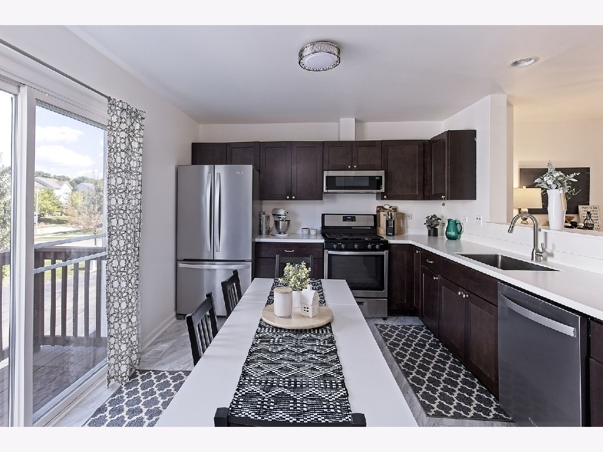 Where can you get a home in great condition for under $200k? Right here! Tastefully updated townhome in Prairie Pointe subdivision with Big Hollow schools. 2 bedrooms, loft (could be 3rd bedroom), 1.5 baths, primary bedroom has vaulted ceiling, 2 large closets and shared full bath. 2nd floor laundry. Main level has beautiful electric fireplace with shiplap wall in livingroom. Dining room with updated light fixture, kitchen has new LVP flooring (2022), newer espresso cabinets, new solid surface counters (2021), large undermount sink and Moen faucet (2021). Sliders to balcony. All stainless appliances (2019/2020), half bath is all new (2021). 2 story foyer has new light fixture (2022). Main level and foyer freshly painted (2022). Lower level has access to the 2 car attached garage and a family room (could easily be a bedroom with the addition of a door). Plenty of closet space too! New roof on building (2022). Affordable taxes and HOA. Great location for commuting. 5 mins to Route 12. Just minutes to the Chain O Lakes with parks, eateries and shops nearby.