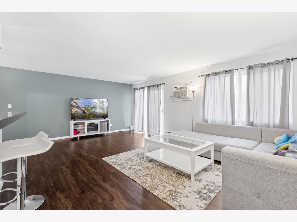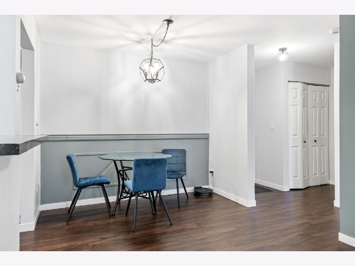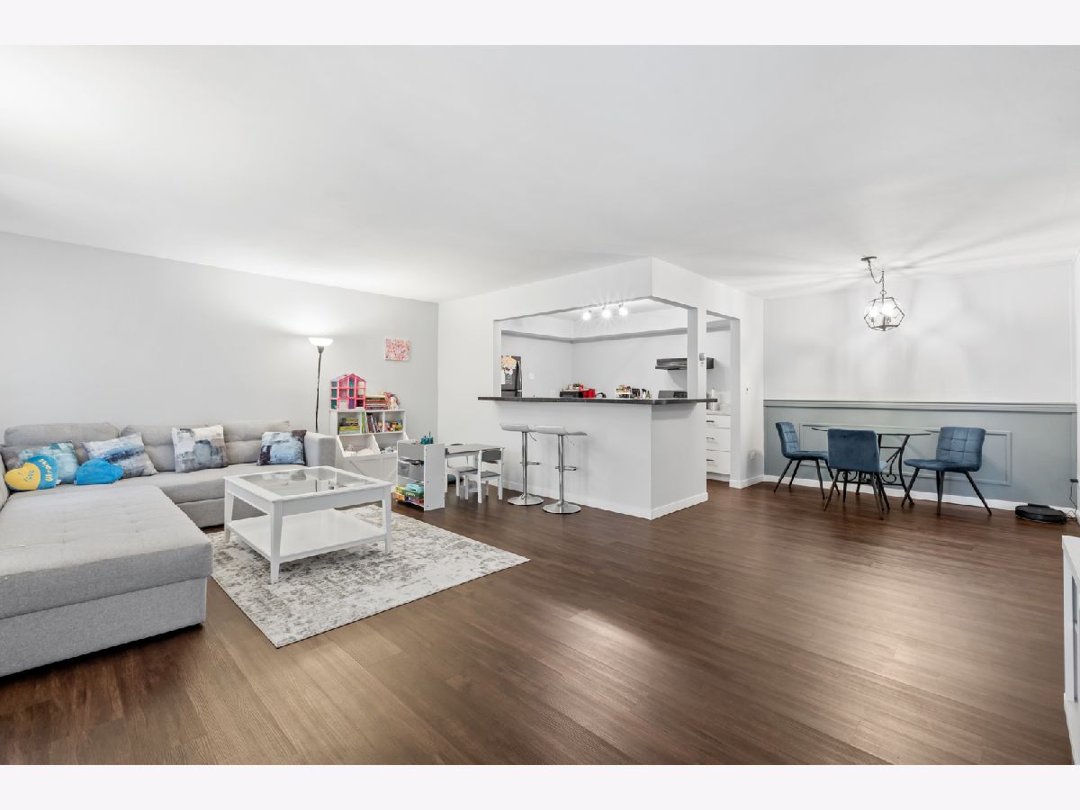 Discover this charming 1st-floor condo in River Crossing, offering a spacious layout with 1 bedroom, 1 bath, and separate living, dining, and kitchen areas. Recently remodeled in 2024, the home features brand-new luxury vinyl plank flooring and baseboards (2023) in the living, dining, and kitchen spaces. The generous living room opens directly to a private patio, perfect for relaxation or entertaining. The kitchen is equipped with newer stainless steel appliances, white cabinet, and convenient bar-top seating, while the dining area provides a cozy spot for meals. Updated light fixtures throughout add a modern touch. Additional amenities include a storage unit and laundry facilities on the same floor, along with an outdoor recreational area. This condo is ideally located near I-55/I-355, shopping, retail, and minutes from the Promenade Mall. Schedule your showing today!