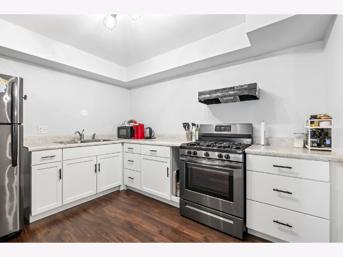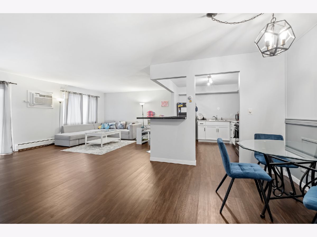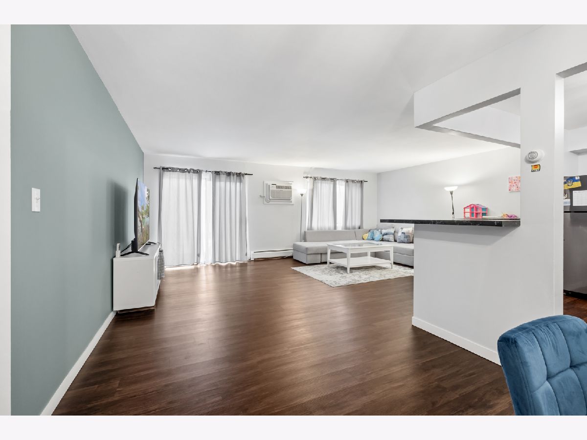 Discover this charming 1st-floor condo in River Crossing, offering a spacious layout with 1 bedroom, 1 bath, and separate living, dining, and kitchen areas. Recently remodeled in 2024, the home features brand-new luxury vinyl plank flooring and baseboards (2023) in the living, dining, and kitchen spaces. The generous living room opens directly to a private patio, perfect for relaxation or entertaining. The kitchen is equipped with newer stainless steel appliances, white cabinet, and convenient bar-top seating, while the dining area provides a cozy spot for meals. Updated light fixtures throughout add a modern touch. Additional amenities include a storage unit and laundry facilities on the same floor, along with an outdoor recreational area. This condo is ideally located near I-55/I-355, shopping, retail, and minutes from the Promenade Mall. Schedule your showing today!