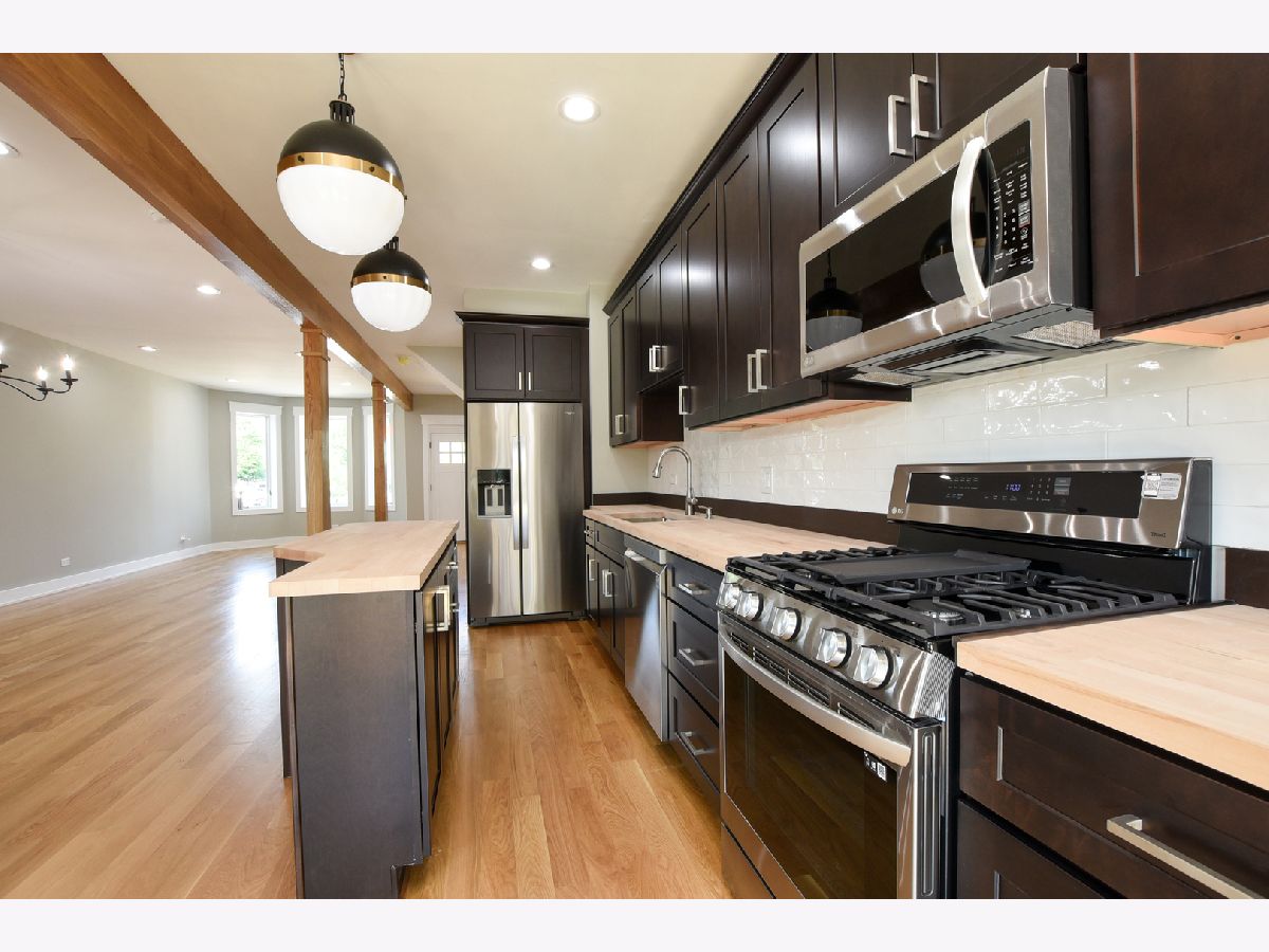 Huge price reduction!Gorgeous BRICK SF Home! Great area! This is a full rebuild/rehab with Full Permits ,quality features and work done right! Complete gut rehab with new water/sewer lines, tear off roof, beautiful tuckpointing. Black stained brick,Pella windows. The floor plan is open and there are 2 sets of patio doors to 2 decks on the main level, one covered and one open and to to a nice sized yard and heated , custom garage with white cedar planking and party doors! Kitchen has nice sized island, dark wood cabinets ,butcher block counters, LG and Whirlpool appliance and wine fridge. Wide White Oak plank floors on main and upper floors,Living area has powder room, pretty staircase and custom wood accents, Baths have beautiful marble and gold accented tiles with nice fixtures. Upper floor has 3bds, Walk out Lower level is TALL and dry and has bedroom, family room, full bath and Tankless Water Heater, laundry, drain tile ( inside and out) , foundation underpinning,HVAC,and too much to list. Great area near to so many restaurants, shops , transportation and more in Avondale and Logan!See floorplans in pics. During construction home has security cameras.