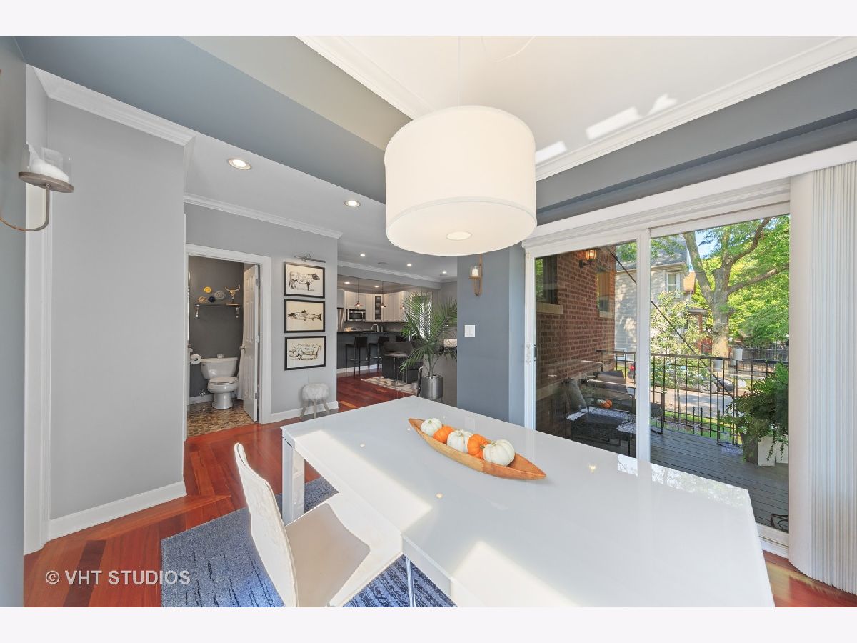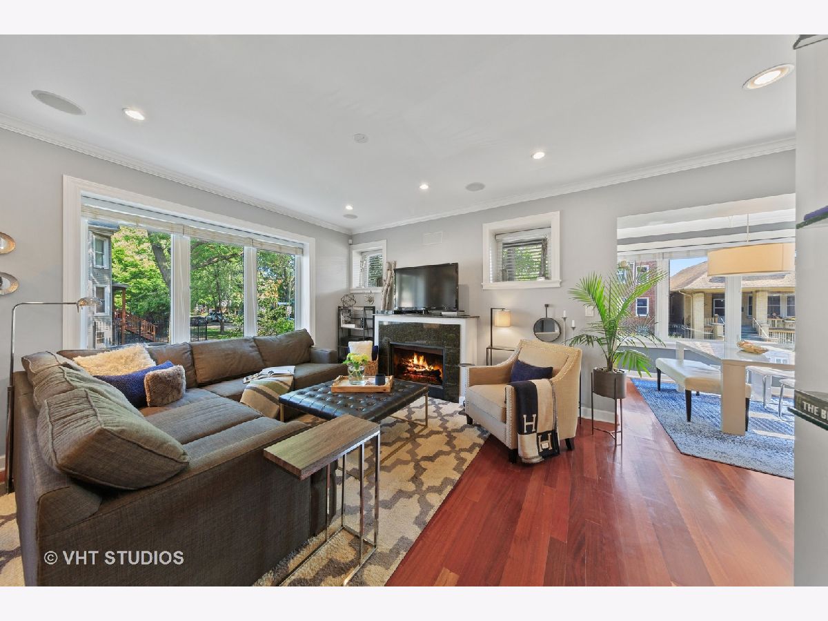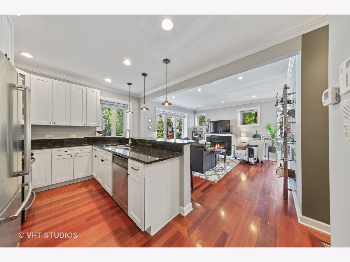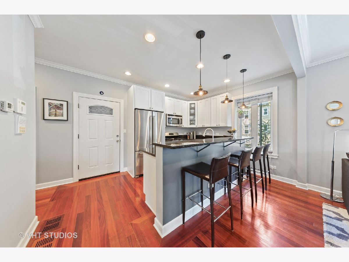 Situated in the heart of Albany Park, lies this light drenched 3bed, 3 full bath with two additional bonus rooms. Beautifully crafted finishes throughout, including rich hardwood floors, updated chef's kitchen, stainless appliances, pantry space, granite counters and custom lighting. Enjoy this quiet tree lined street from two private outdoor spaces, or from the building's own rooftop deck. Multiple walk-in closets provide ample amounts of storage. Primary bedroom is fully equipped with Elfa closets. 5.1 surround sound on the first floor and Climate Guard Windows throughout. Includes 1 garage parking space, and In-Unit laundry. Perfect place for entertaining, house guests, working from home, and building lasting memories. Short walk to Brown Line, Starbucks, restaurants, markets and boutiques.