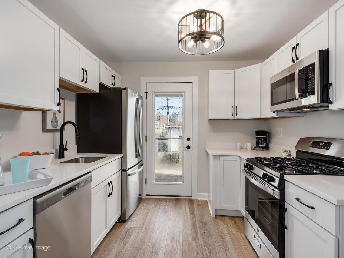 Move in ready! 4 Bedroom 2 full bath home with stunning and tasteful renovation in highly desirable Schorsch village. The stylish and modern kitchen features white shaker style cabinets, quartz countertops, new stainless steel appliances, eating area off of kitchen, and designer fixtures and finishes throughout. Includes refinished hardwood floors throughout. The spacious rooms throughout, oversized yard with patio/deck space, and finished basement provide the extra space everyone is looking for right now. Newer furnace and A/C unit, windows, roof and water tank. Near schools, shopping, parks, and park district facilities. You won't find a better home with this much space! Agent owned/interest.