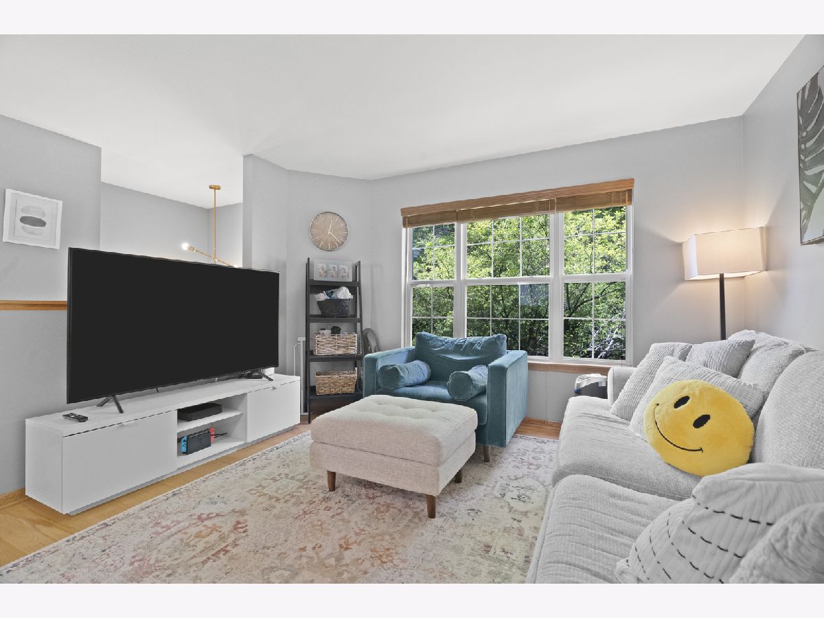 Facing the beautiful woods with so much privacy in desirable Prairie Pointe subdivision boasting low taxes! This 3-story townhome has The spacious kitchen has a pantry and leads to a balcony for your outdoor enjoyment. Upstairs you will find 2 bedrooms and a loft. The master bedroom has his and her closets and cathedral ceilings. Lower level have a additional room. Large 2 car garage. Brand new flooring on the 2nd floor
