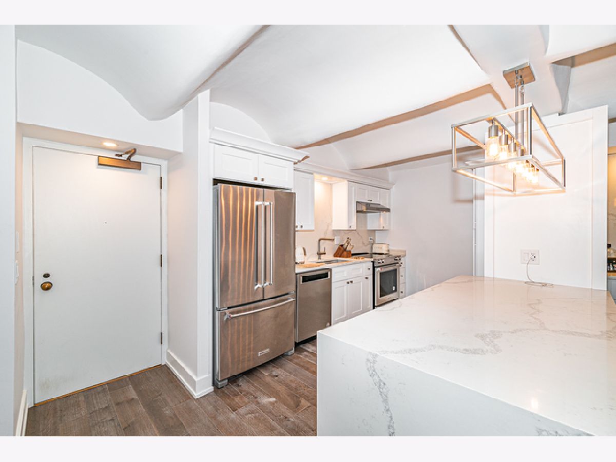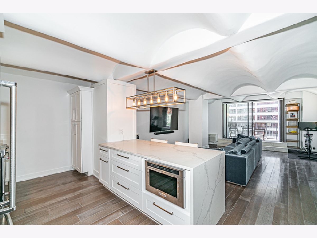 Enjoy breathtaking and unobstructed east facing Chicago River views from this spacious 1-bed, 1-bath loft. This stunning and impeccably renovated unit features an open floor plan; dramatic coved ceilings; a crisp modern kitchen with new stainless appliances, quartz counters with matching backsplash and waterfall, and loads of storage; wide plank maple flooring; a large and bright living room with oversized sliding glass doors leading to a private balcony overlooking the River; a built-in dry bar with quartz backsplash and wine fridge; a luxurious and stylish 4-piece bath with steam/rain shower, quartz surround and counters, marble floors, and dual sinks; a king-sized bedroom with a custom walk-in closet; and in-unit laundry. Prime West Loop location just steps to world class dining, shopping, and entertainment. Valet parking available. This is a true must see! Schedule a showing today.