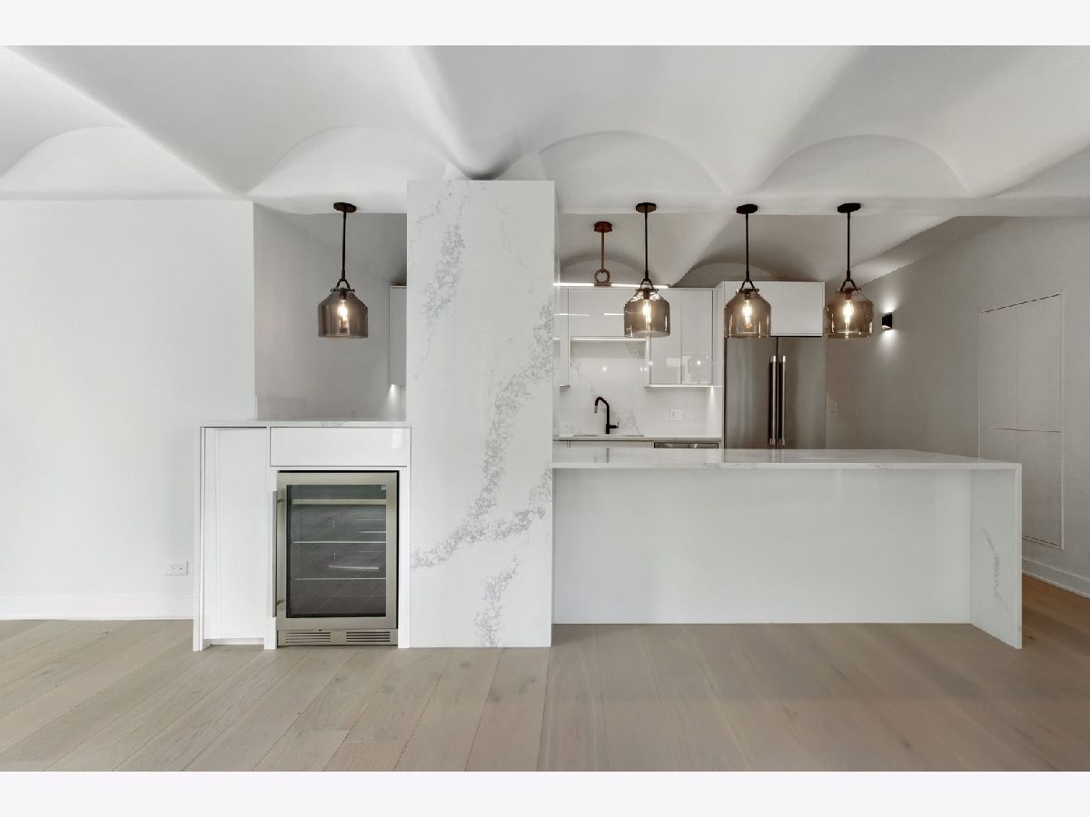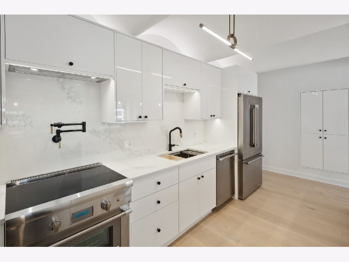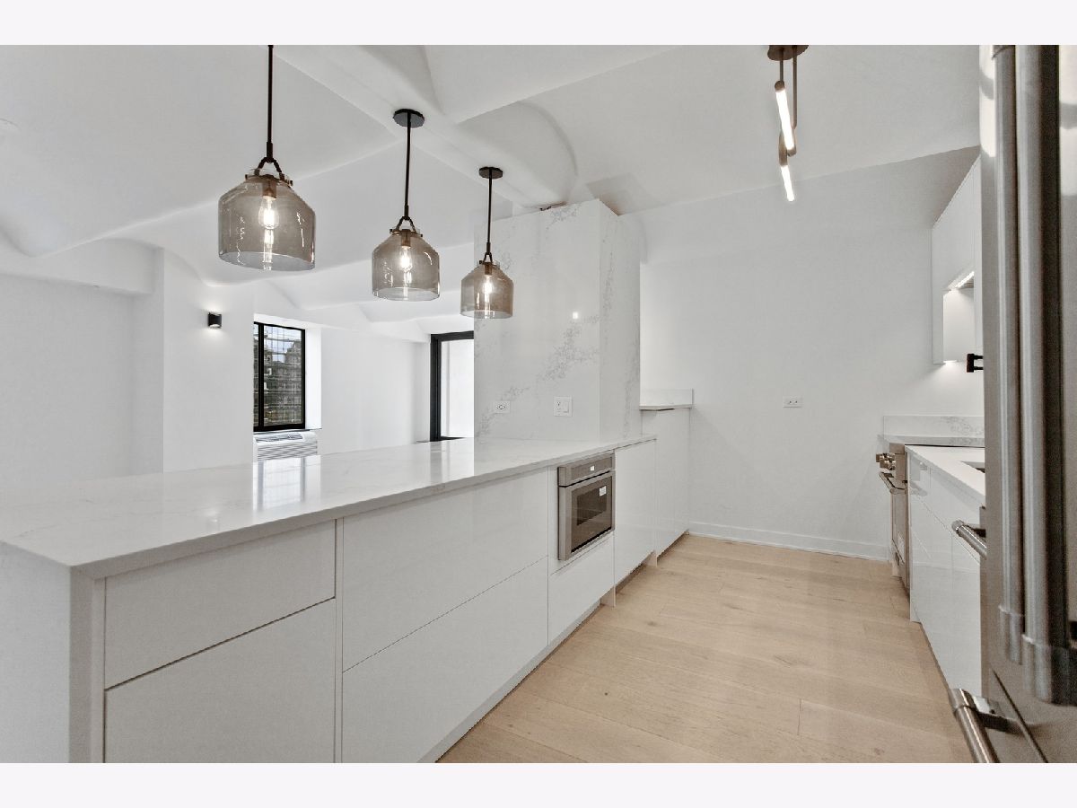 Welcome to your luxurious condominium nestled in the heart of Chicago's vibrant River West neighborhood in the iconic Fulton house. offering unparalleled views of the Chicago River. This home has been completely renovated! The kitchen is a culinary enthusiast's dream, boasting Calacatta Nuevo Quartz countertops with a striking full-height backsplash and a sleek waterfall edge. Premium Thermador appliances, A custom wine fridge adds a touch of sophistication, while the custom inset gloss white cabinetry provides ample storage, including a built-in pantry for all your culinary essentials. Every detail is meticulously curated, with Brizo and Grohe fixtures throughout, ensuring both style and functionality. Indulge in the lavish bathroom retreats. Imported Italian porcelain slabs adorn the floors and walls, exuding timeless sophistication. Custom designer wallpaper, while heated and backlit vanity mirrors offer both comfort and convenience. Gloss grey floating vanities enhance the contemporary aesthetic, providing ample storage space. In the master bath, immerse yourself in luxury with a Schluter heated radiant floor and a rejuvenating Mr. Steam spa shower, transforming your daily routine into a blissful escape. Throughout the condo, 9.5-inch wide plank-engineered French oak flooring sets a tone of refined luxury, offering both durability and timeless beauty. Refinishable for enduring quality, these floors provide the perfect canvas for any interior design style. Nothing to so but move in and enjoy the luxuries. Investor friendly!