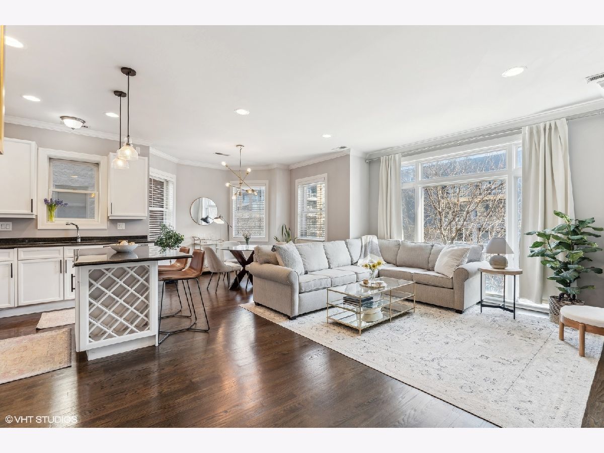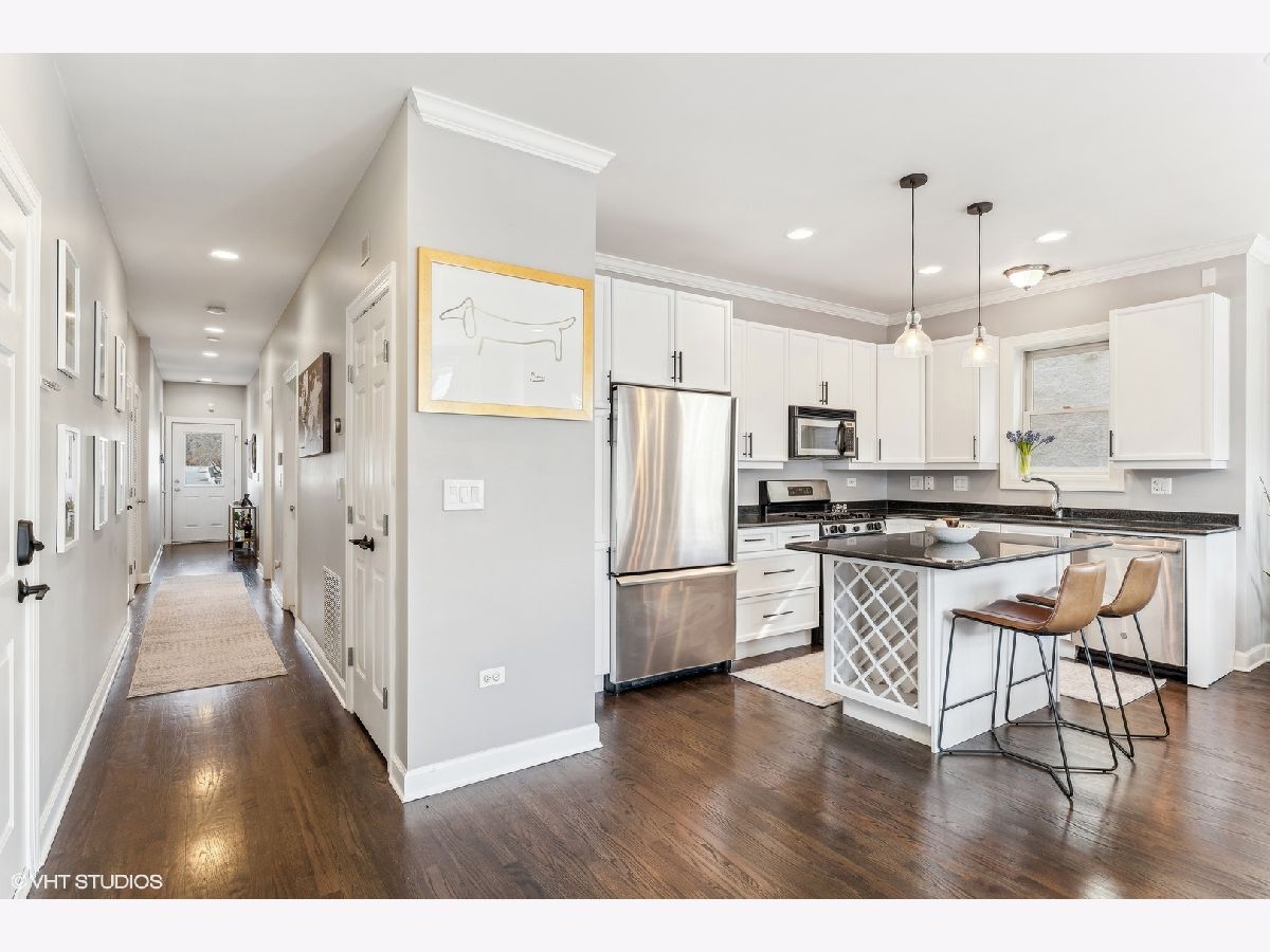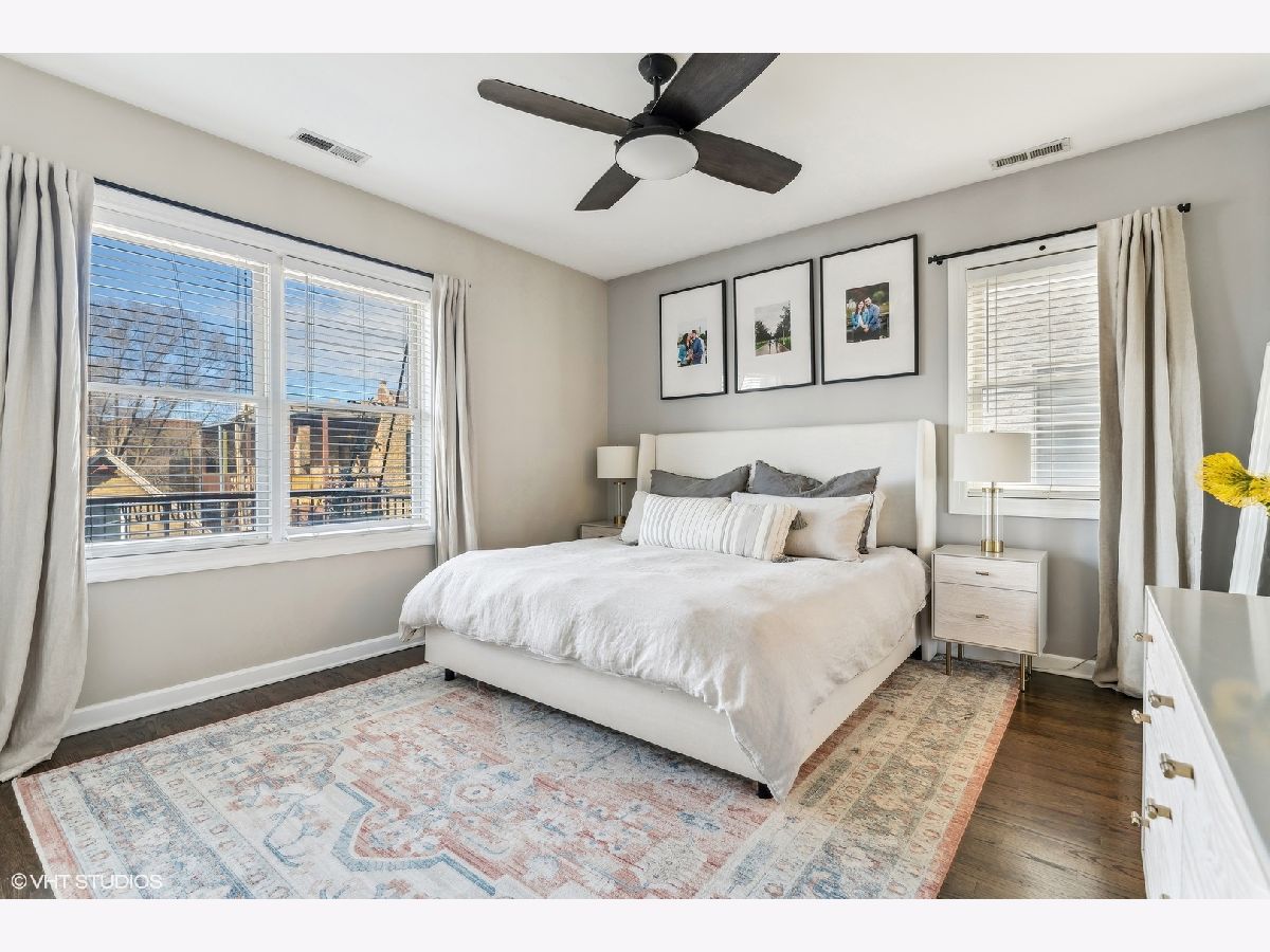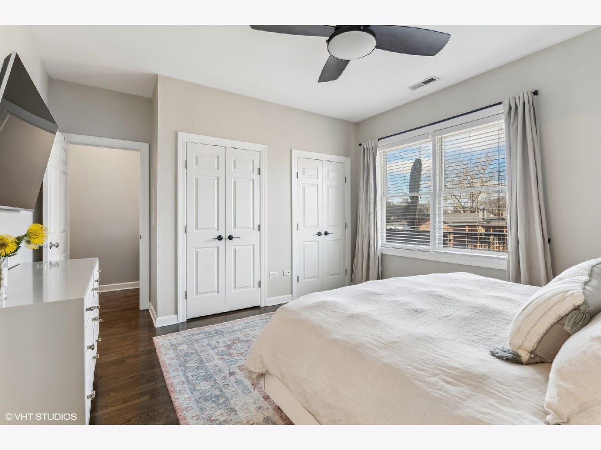 Extra-wide two bedroom two bathroom home in Lakeview/Southport Corridor! This bright and spacious home has it all. Open concept living and dining perfect for entertaining. Gather around your kitchen island complete with stainless steel appliances, white shaker style cabinetry with on trend pulls. High ceilings and natural hardwood flooring throughout -including bedrooms! Your spacious living room is beautifully and thoughtfully laid out with custom built ins, a gas fireplace, and a decorative mantle. Large bay windows create a perfect spot for your dining area. Tuck yourself away in your primary bedroom featuring an entire wall of closets and an updated en-suite bathroom with double vanity and whirlpool tub. Great sized second bedroom with room for a bed and desk if needed for a work from home situation. Conveniently access the second bathroom via the hallway or the bedroom. Enjoy a beverage of your choosing on your private deck off the back of the property (that you don't access from the bedroom) where you can take in gorgeous sunsets. Newer in-unit washer/dryer (2023). Near Paulina Brown line stop, Whole Foods, Target, and tons of restaurants and shops. Additional private storage in the basement. One garage parking space is included in the price.