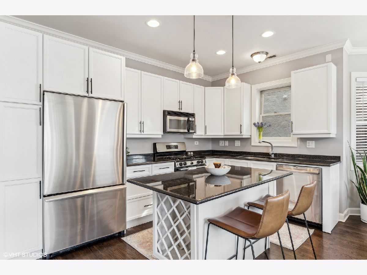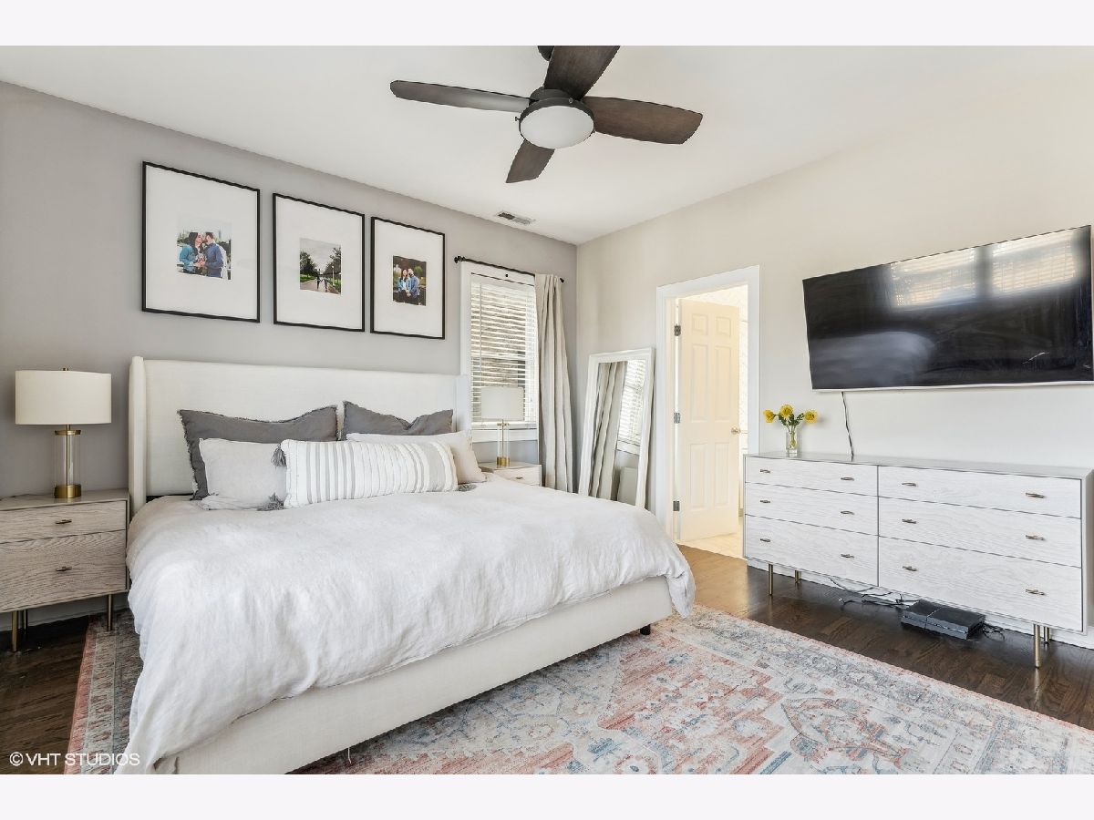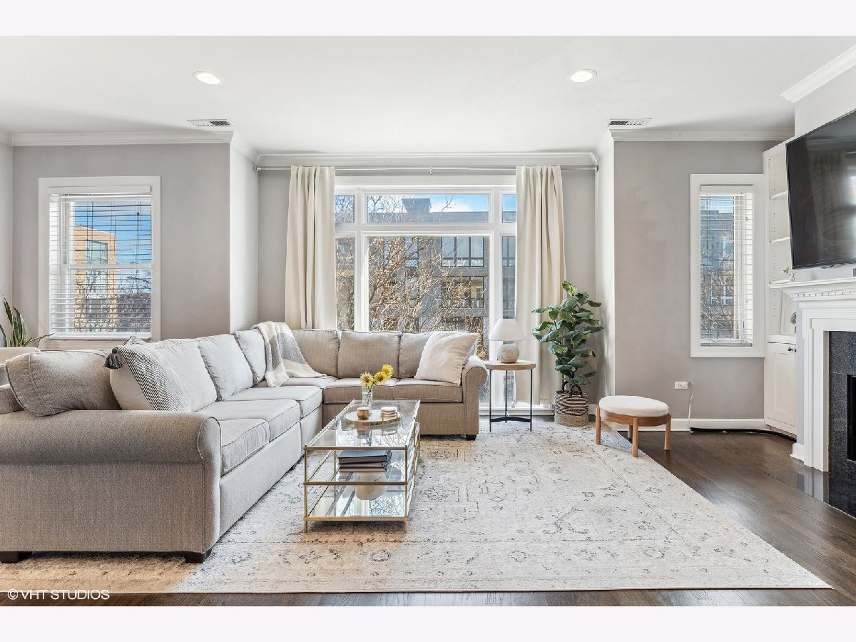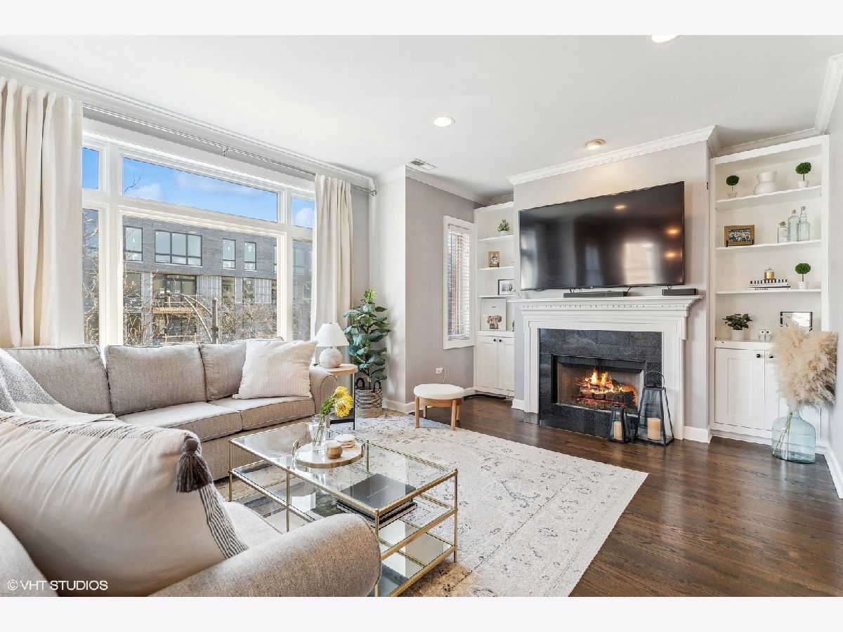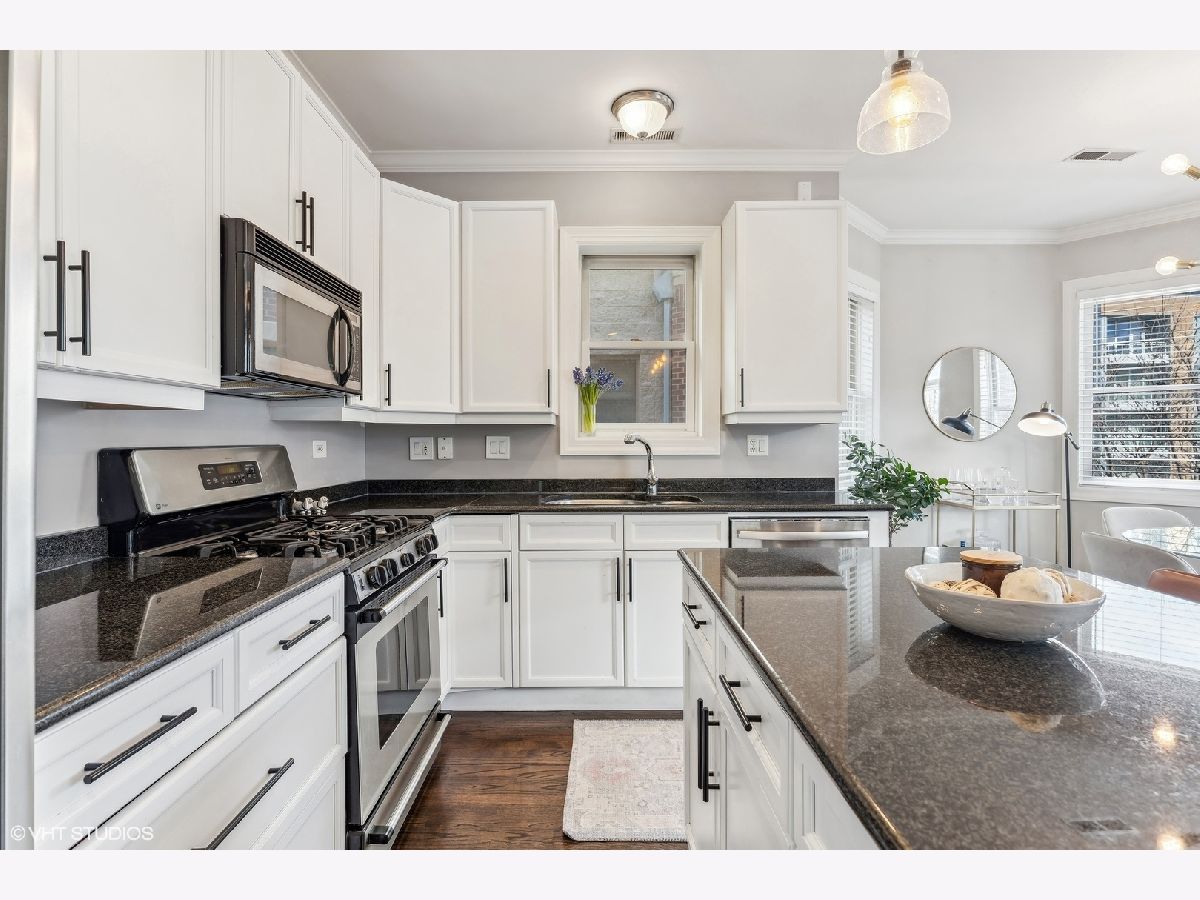 Extra-wide two bedroom two bathroom home in Lakeview/Southport Corridor! This bright and spacious home has it all. Open concept living and dining perfect for entertaining. Gather around your kitchen island complete with stainless steel appliances, white shaker style cabinetry with on trend pulls. High ceilings and natural hardwood flooring throughout -including bedrooms! Your spacious living room is beautifully and thoughtfully laid out with custom built ins, a gas fireplace, and a decorative mantle. Large bay windows create a perfect spot for your dining area. Tuck yourself away in your primary bedroom featuring an entire wall of closets and an updated en-suite bathroom with double vanity and whirlpool tub. Great sized second bedroom with room for a bed and desk if needed for a work from home situation. Conveniently access the second bathroom via the hallway or the bedroom. Enjoy a beverage of your choosing on your private deck off the back of the property (that you don't access from the bedroom) where you can take in gorgeous sunsets. Newer in-unit washer/dryer (2023). Near Paulina Brown line stop, Whole Foods, Target, and tons of restaurants and shops. Additional private storage in the basement. One garage parking space is included in the price.