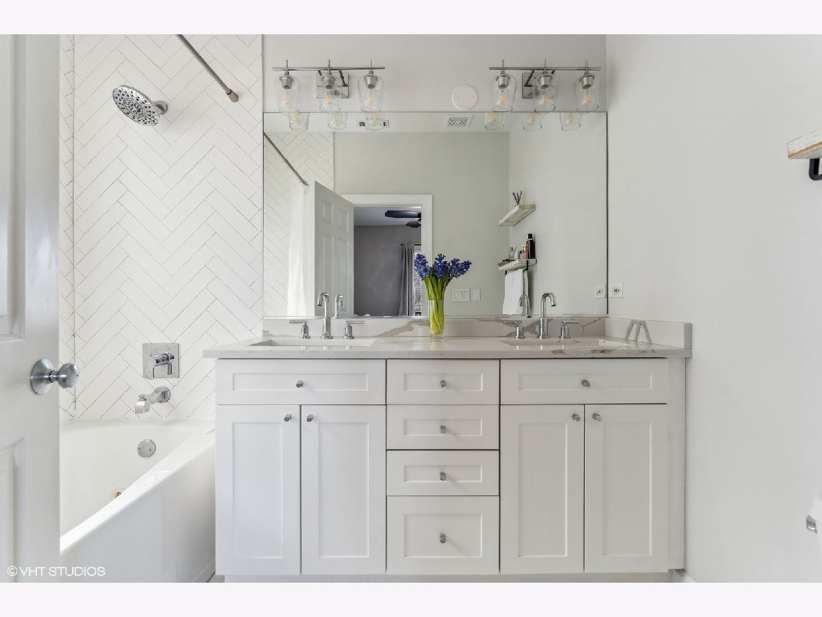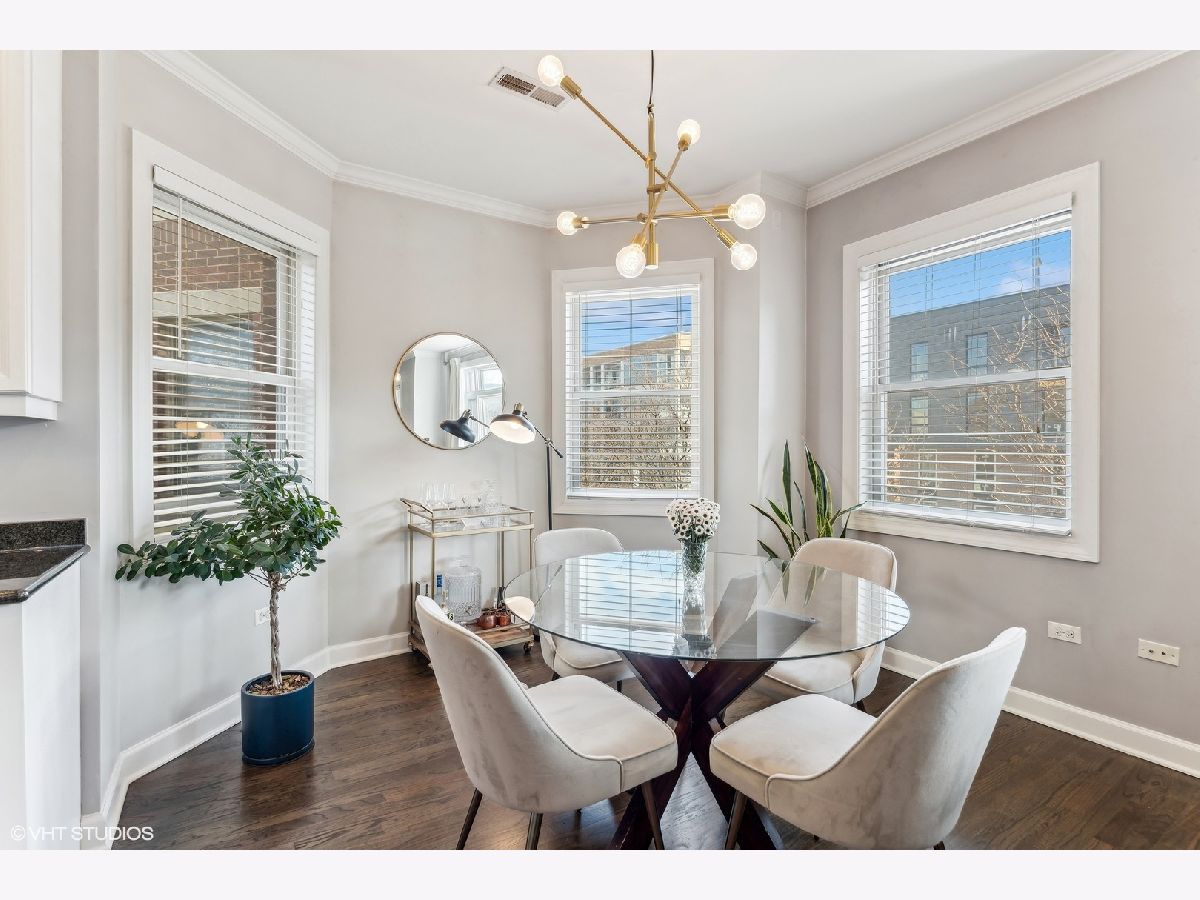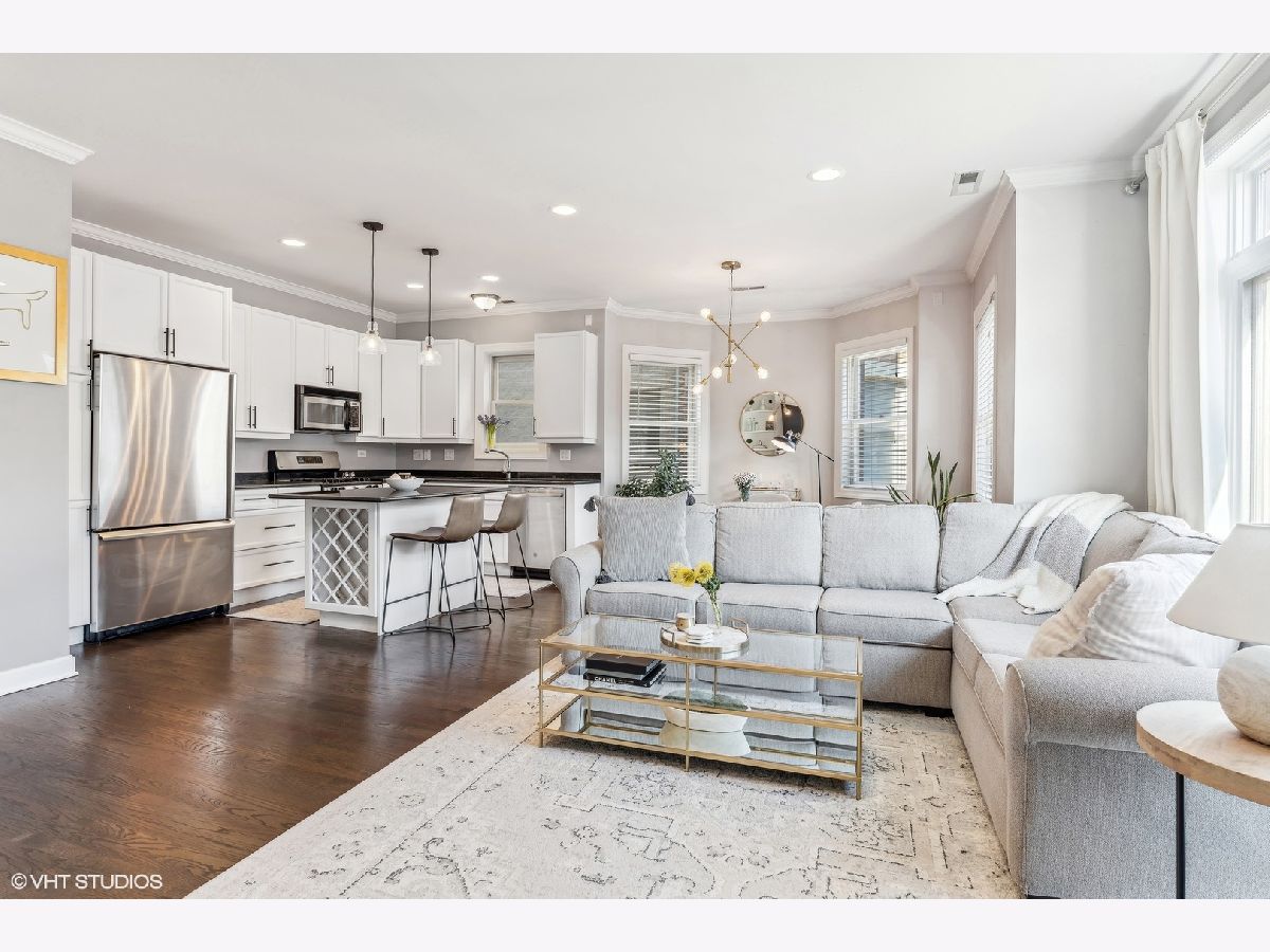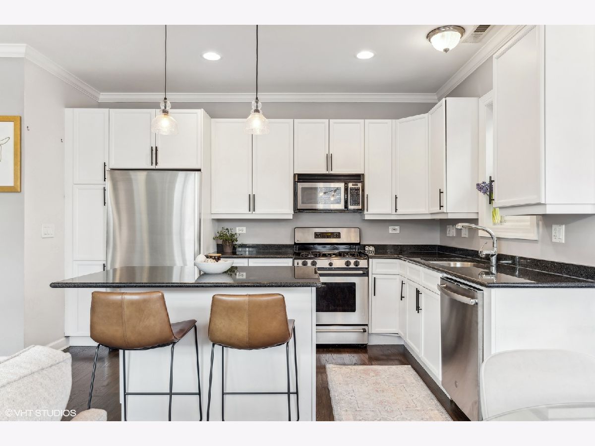 Extra-wide two bedroom two bathroom home in Lakeview/Southport Corridor! This bright and spacious home has it all. Open concept living and dining perfect for entertaining. Gather around your kitchen island complete with stainless steel appliances, white shaker style cabinetry with on trend pulls. High ceilings and natural hardwood flooring throughout -including bedrooms! Your spacious living room is beautifully and thoughtfully laid out with custom built ins, a gas fireplace, and a decorative mantle. Large bay windows create a perfect spot for your dining area. Tuck yourself away in your primary bedroom featuring an entire wall of closets and an updated en-suite bathroom with double vanity and whirlpool tub. Great sized second bedroom with room for a bed and desk if needed for a work from home situation. Conveniently access the second bathroom via the hallway or the bedroom. Enjoy a beverage of your choosing on your private deck off the back of the property (that you don't access from the bedroom) where you can take in gorgeous sunsets. Newer in-unit washer/dryer (2023). Near Paulina Brown line stop, Whole Foods, Target, and tons of restaurants and shops. Additional private storage in the basement. One garage parking space is included in the price.