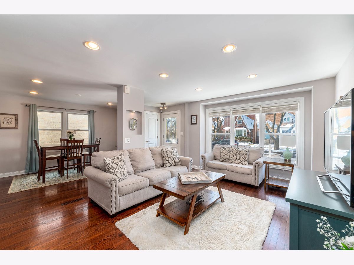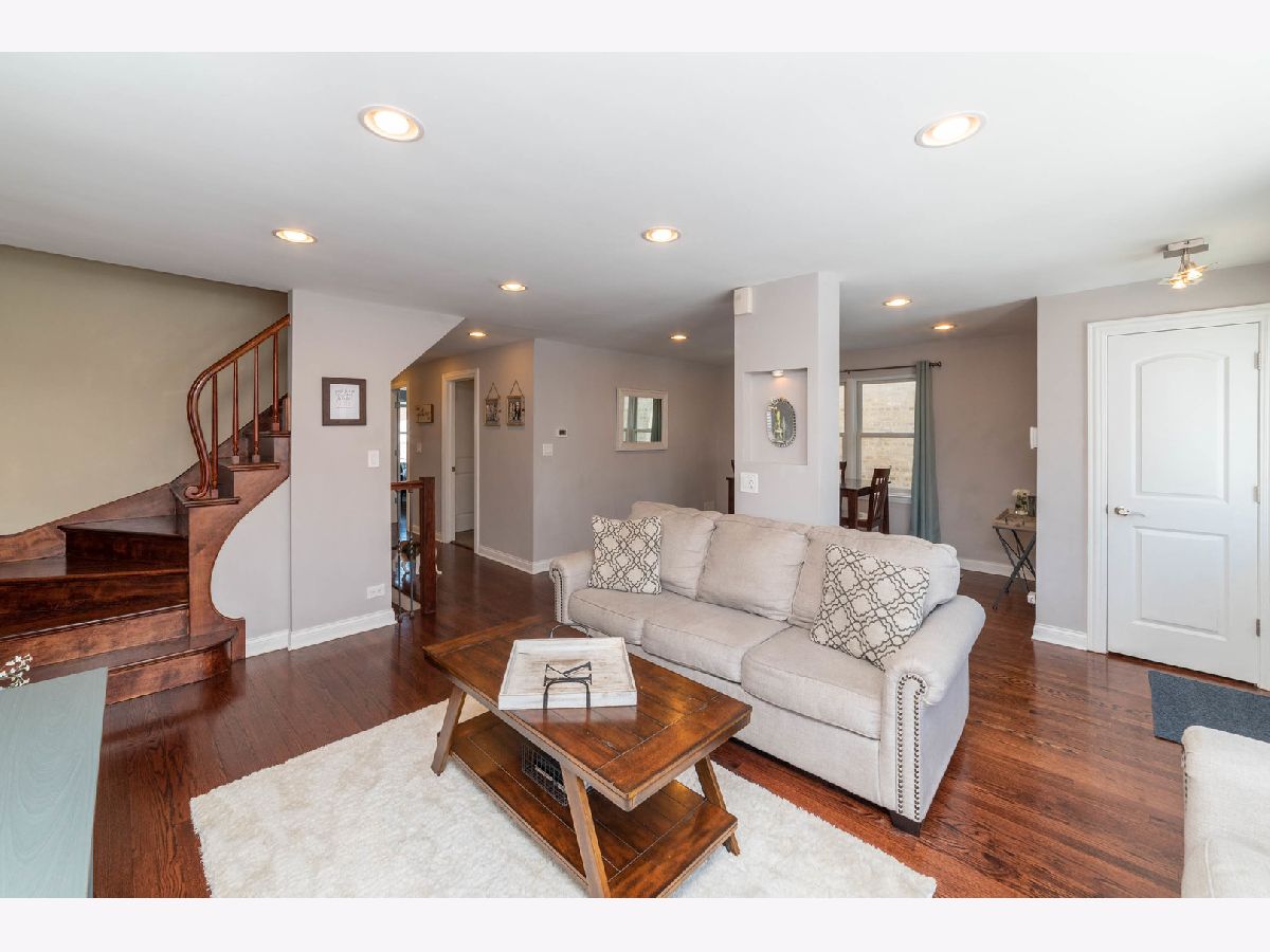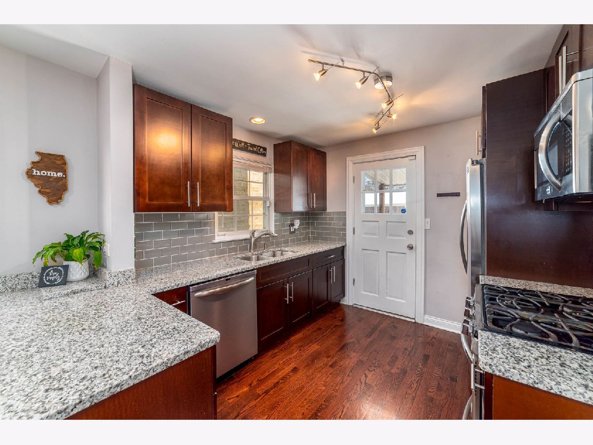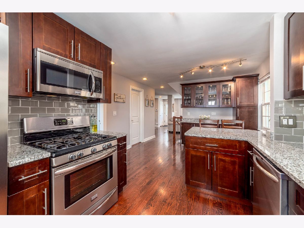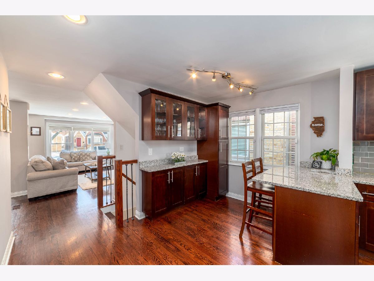 Start your next chapter here! You'll fall in love with this beautiful rehab in the Schorsch Village neighborhood in Dunning with 3 beds (+1 in basement), 3 baths, 1500 sf, 2 car garage and full finished basement. Step into this open living room / dining room with lots of natural light and recessed lighting that leads to the updated kitchen w/dark shaker custom cabinets with soft close cabinets and drawers, breakfast bar, granite counters, glass tile backsplash and ss appliances. First floor bedroom and full bath. Dark hardwood on first floor too. Upstairs there are two bedrooms including a comfortable master bedroom and shared full bath. Full finished basement w/ family room, fourth bedroom and full bath. Fenced backyard. Home has oversized baseboards and casings throughout. Anderson windows. Great working class neighborhood. Fabulous location close to huge park with clubhouse and pool, baseball diamonds, bike and running path. Conveniently located to O'Hare, shopping, restaurants and more! Don't miss out!
