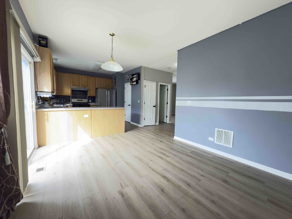 Well-maintained two-story unit with a partial basement and an open floor plan in a convenient. Features include new waterproof vinyl flooring, new carpet, new hardwood staircase, new appliances (dishwasher, stove, semi-new refrigerator), fresh paint, new door handles, and LED lighting. The spacious eat-in kitchen offers ample cabinetry and counter space, with balcony access. The master suite includes a large walk-in closet and private bath. Two additional bedrooms are well-sized. A convenient half-bath is located on the main level. The partial basement provides storage and houses all mechanicals. Great location close to Metra, Randall Road Restaurants and minutes to 90. Lovely parks, bike and walking paths in this fabulous neighborhood. District 300 Schools, the neighborhood is perfect for outdoor enthusiasts with parks, ponds and walking/biking paths. Easy to show, Make this your next home! Includes all appliances, including a washer and dryer.