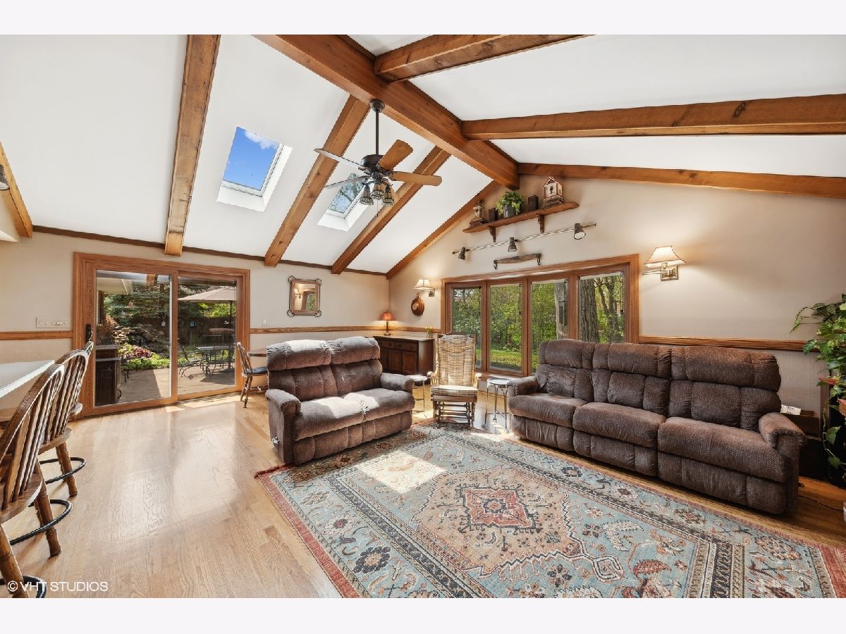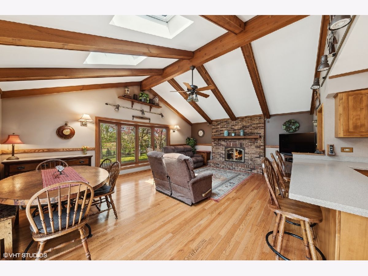 Welcome to this well-maintained 3-bedroom, 2.5-bathroom ranch home. This charming residence boasts a generous 1700 square feet of living space with a fully finished basement, situated on a spacious lot spanning over a quarter acre. The interior greets you with a large family room with a wood burning fireplace and hardwood floors throughout that were refinished in 2019. The kitchen opens up to a combined great room/dining room with vaulted ceilings and an additional wood burning fireplace. The finished basement offers a huge recreation/family room, second full bath, laundry room with plenty of storage, and a huge workshop with a walkout basement entrance. Step outside to discover a truly enchanting outdoor space, featuring beautiful perennial gardens, a soothing waterfall, a charming gazebo, a relaxing hot tub, and a built-in gas grill for outdoor gatherings. The low voltage Malibu lighting in the front and back adds a touch of elegance to the exterior. Additionally, the property provides convenient access to a community park and pool, schools, restaurants, bars in downtown Palatine, and bike/walking trails, creating a perfect blend of seclusion and accessibility. This home also offers the unique opportunity to watch 4th of July fireworks from the comfort of your own backyard. Don't miss the chance to experience the timeless allure and modern comforts of 348 North Oak Street. Schedule a showing today and discover the exceptional lifestyle this home has to offer.
