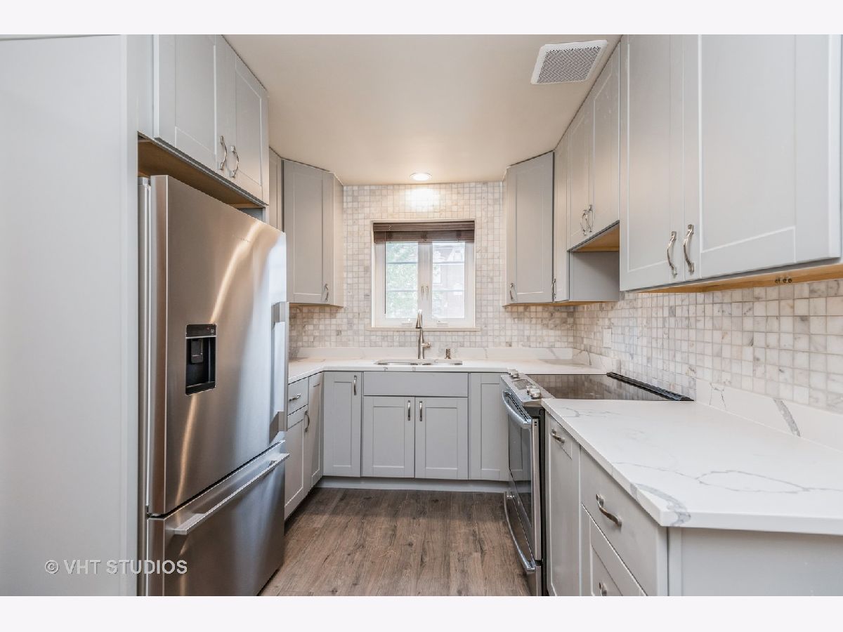 2021 remodeled condo with spacious rooms, tons of light, windows on all sides, gorgeous floors and storage galore! New mod gray cabinet kitchen with brand new stainless appliances, quartz counters custom marble tile backsplash, laminate floors and pantry. Refinished hardwood floors throughout. New electrical panel and recessed overhead lights in all rooms. Fresh paint. Newer windows with brand new wood blinds. Coin up laundry in basement but owner can also add private W/D in-unit. Additional large private storage and one assigned exterior parking space (#8) included in price.