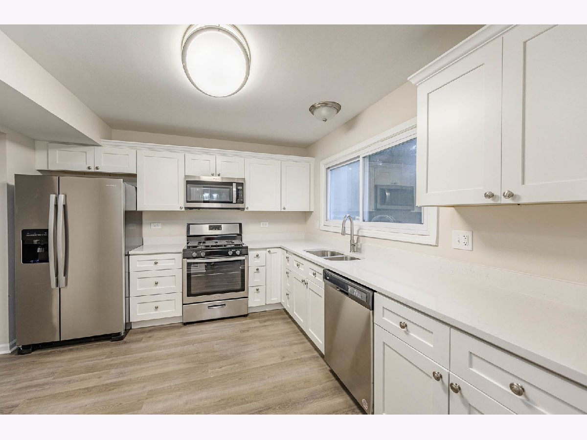 Updated 2 Story Townhome! New Kitchen now with white soft closing cabinets and drawers, beautiful Quartz countertops and all new stainless -steel appliances! New LVT flooring installed, carpet and freshly painted throughout! This is a must see! Full basement and garage. Close to all accommodations including schools, parks, shops, restaurants and more!