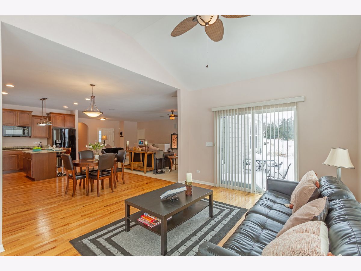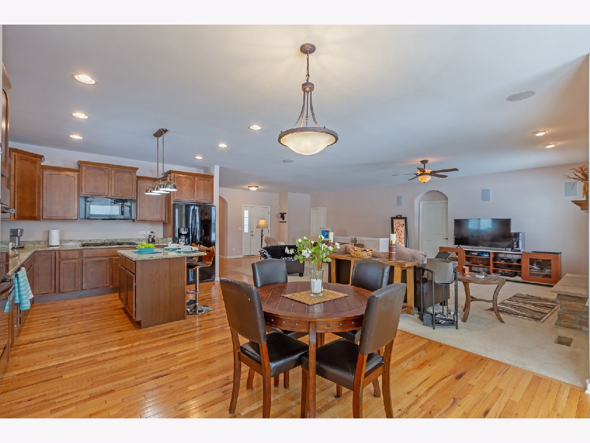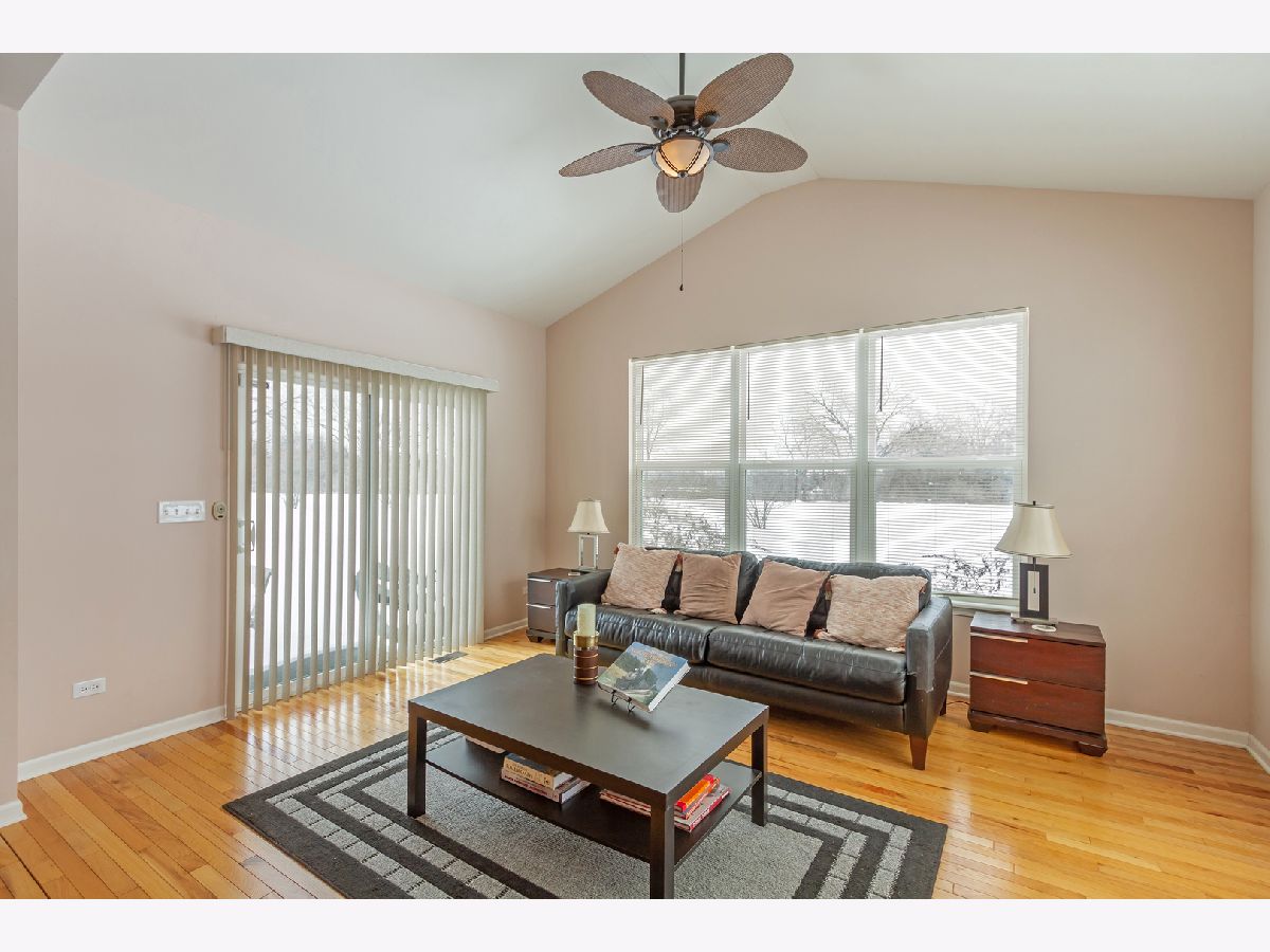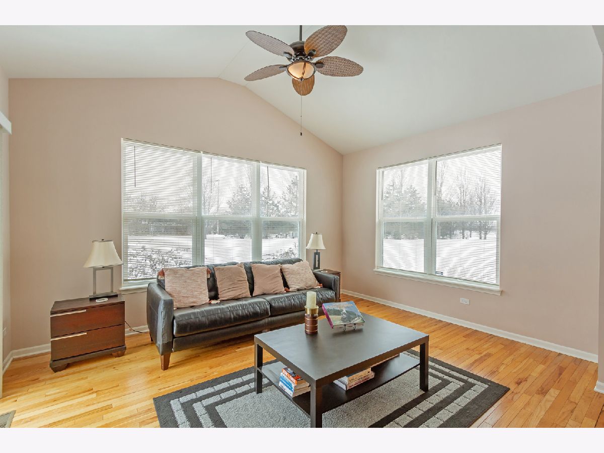 Move right in to this beautiful ranch home in the desirable Highland Woods neighborhood! Gorgeous hardwood flooring in the foyer/hall, kitchen, and sun room. Living room showcases a raised wood-burning fireplace with stone surround, accented by eyeball lights and a beautiful wood mantle. Living room also features built-in surround sound, and two convenient floor outlets. Gourmet kitchen boasts maple cabinetry, granite countertops, recessed lighting, double door convection oven, gas cooktop, center island with seating, closet pantry, and an eating area with table space. Kitchen opens to the sun room which has a vaulted ceiling, and exits to the new custom stamped-concrete patio. Ideal layout for entertaining! Master suite features an arched doorway, tray ceiling, and upgraded private master bath with double sink vanity, separate shower, and soaking tub. Arched entry hallway leads to the 2nd and 3rd bedrooms, which are bright and spacious, and have access to a full hall bath. Private home office with double french doors, tray ceiling, and built-in credenza. Completing the main level is the laundry room. Semi-finished basement is ready for your finishing touches and can potentially add more living space! Oversized driveway and attached three-car garage with door accessing the backyard. Home is on an upgraded pie-shaped lot and has a large backyard with a beautiful new custom stamped concrete patio with a built-in gas line. Enjoy all of the amenities that Highland Woods has to offer, including the clubhouse, pool, parks, walking/biking trails, and more! Highly-rated District #301 schools - the elementary school is in the neighborhood! Just minutes to Route 20, I-90 and the Metra for easy commuting. This one won't last!!
