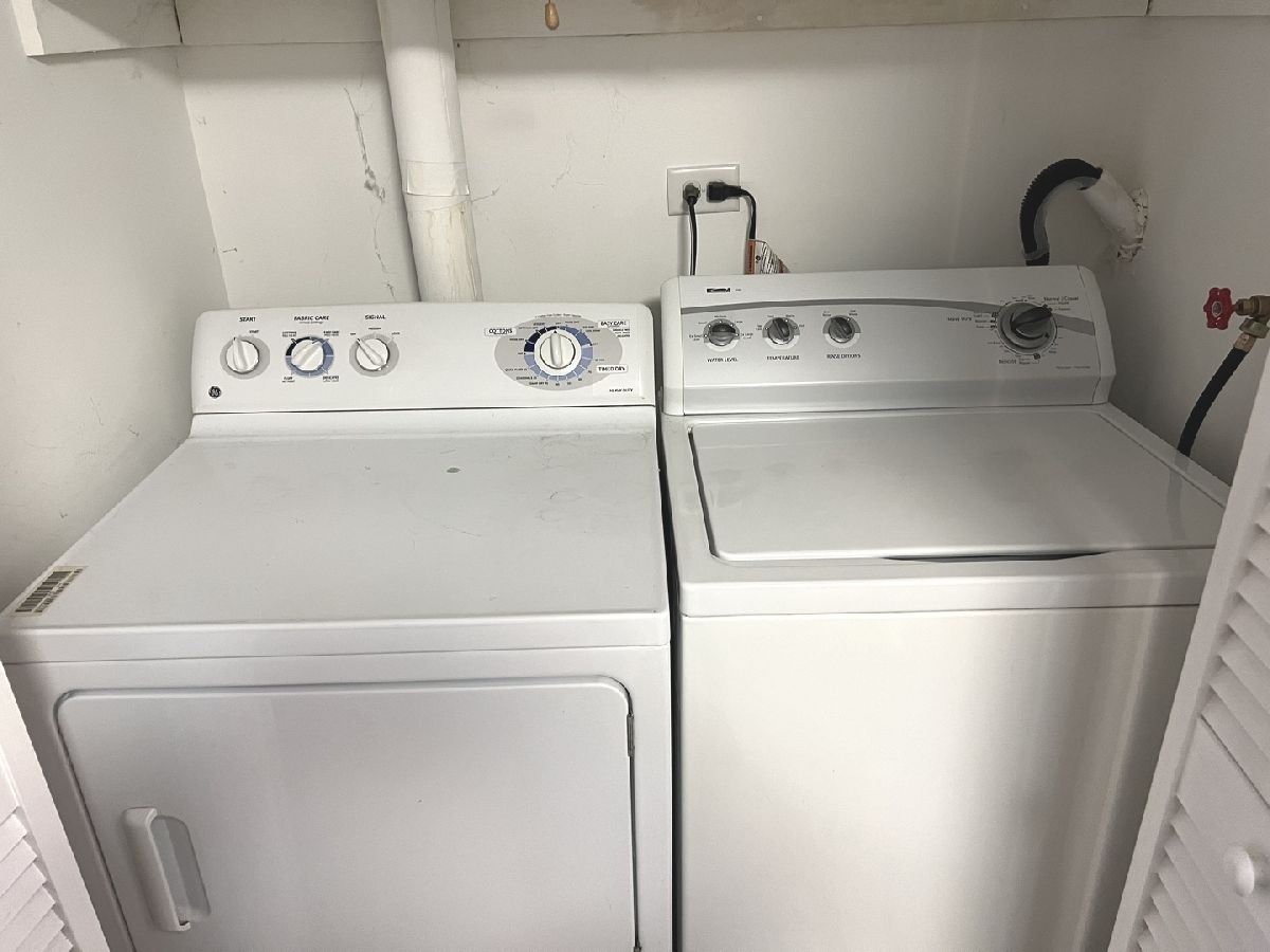 Fantastic 2 bedroom, 1.5 bath condo with 1+ car garage. Freshly painted throughout in neutral colors. Brand new carpeting on stairs and 2nd level. Spacious living and dining rooms with wood laminate flooring. Dining room with direct access from the kitchen features decorative walls. Kitchen features stainless steel refrigerator, dishwasher and microwave, sought after white cabinetry. First floor laundry with washer & dryer included. Spacious master bedroom featuring ceiling fan and his & her closets including an oversized walk in closet. Secondary bedroom is also spacious. Full bath on second level with linen closet in the hallway. White trim and doors throughout. Garage is an oversized 1 car which is extra deep for storage. Common yard space. Highly sought after St. Charles schools, a true must see and great buy! Property well maintained but, sold as-is.