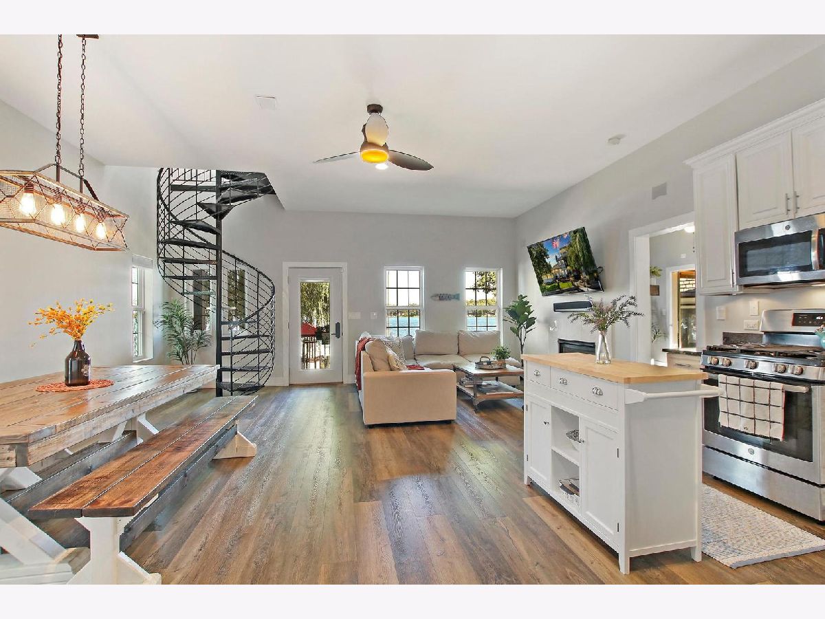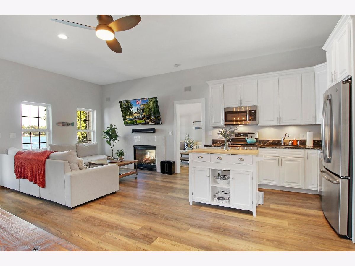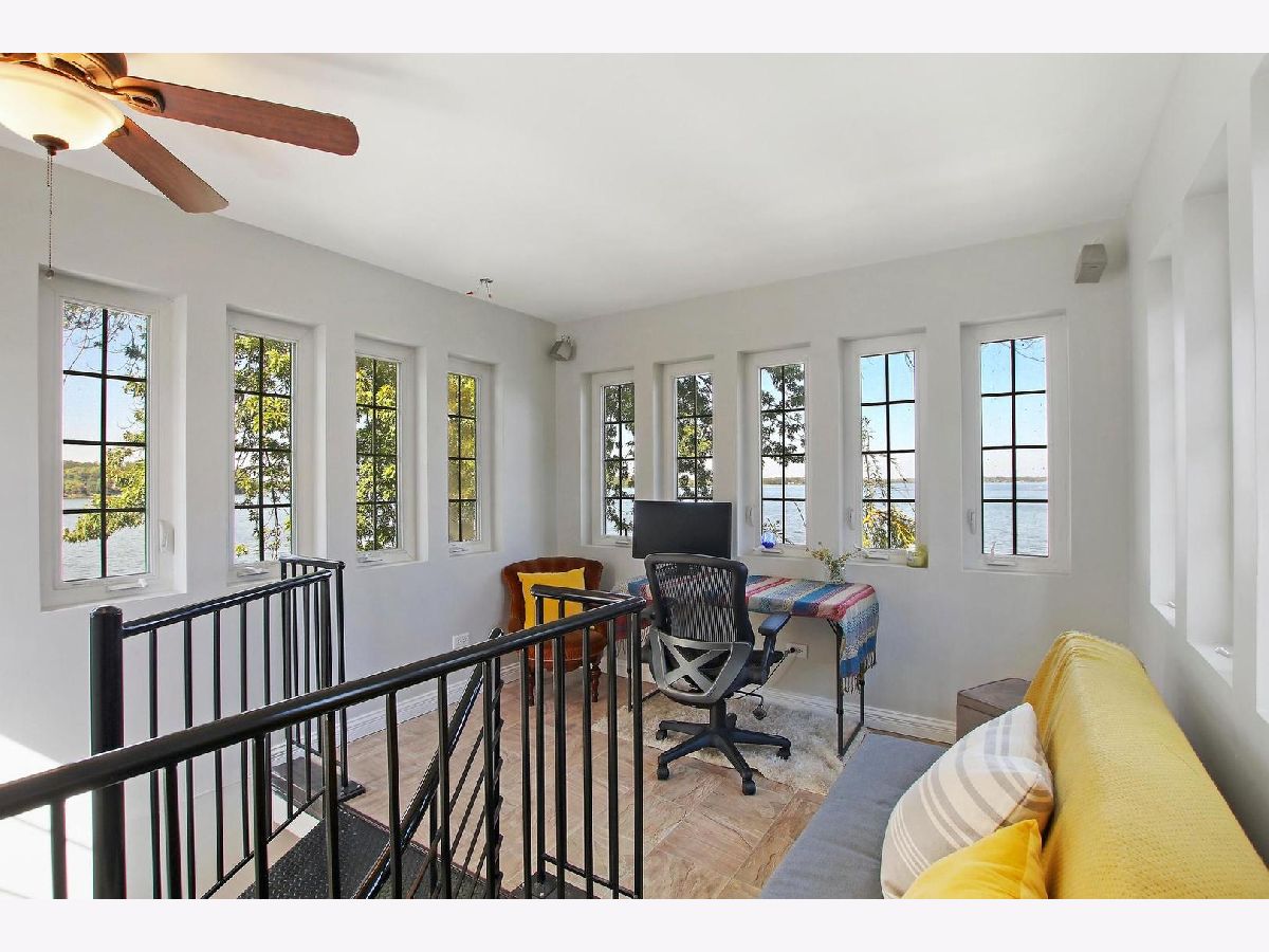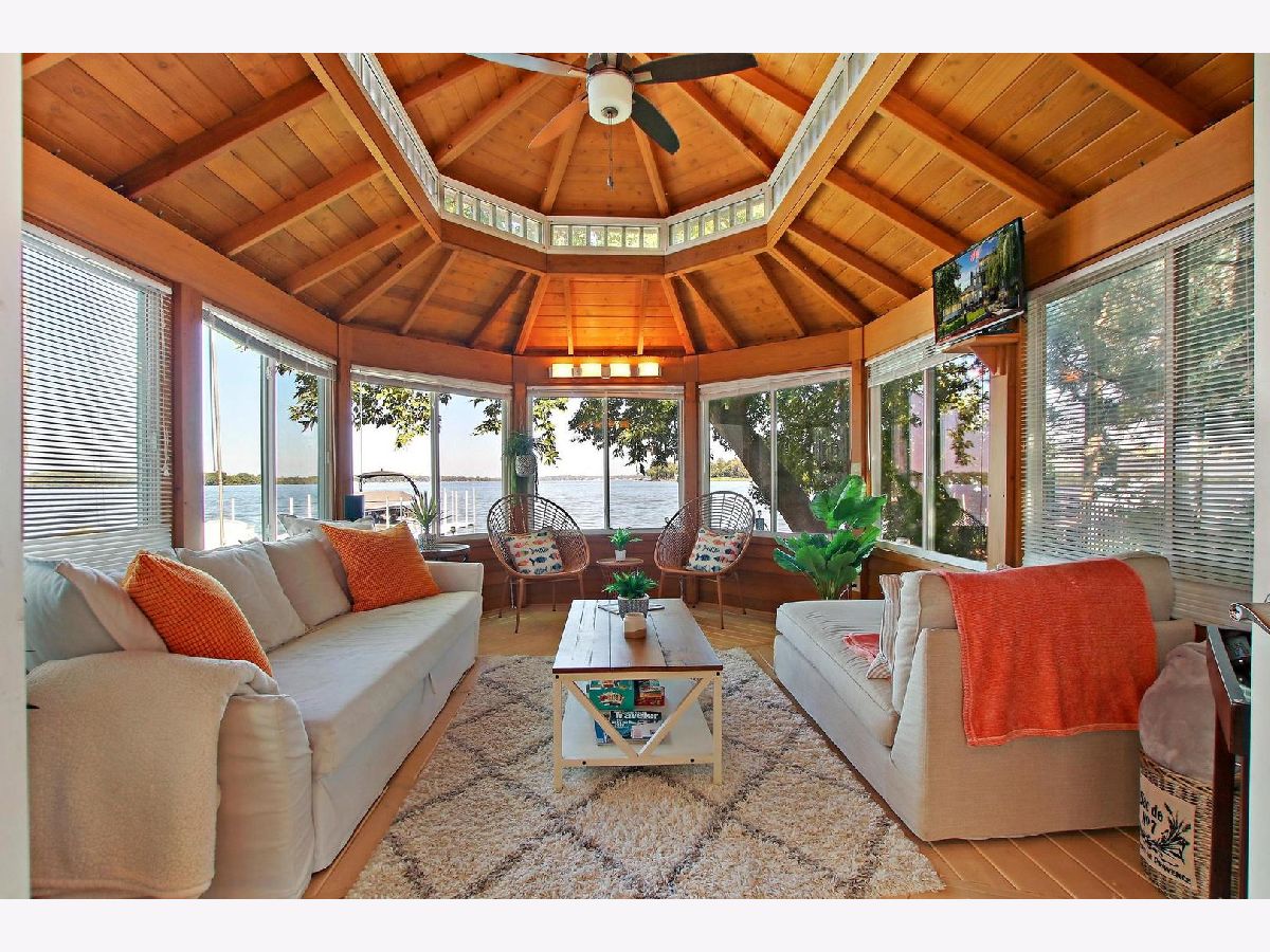 Here's your chance to own your own piece of paradise on Mineola Bay with 80' of lake frontage. The heart of this home is where you will find the nicely appointed kitchen with newer stainless steel appliances (2019) that flows into the dining room and living room for a cohesive space complete with double sided fireplace, luxury vinyl flooring and of course stunning lakeviews. Desirable main floor bedroom currently being used as a den. The 4 seasons room offers it's own heating and cooling system and is a great space to entertain guests or relax and enjoy the lakeviews. The master suite faces the lake and has it's own private balcony, 6x7 walk in closet and updated full bath that is finished in today's modern touches. Another full bath and bedroom complete the 2nd level of this home. Head up one more floor to the crows nest for panoramic lakeviews of Fox Lake which is currently being used as an office. Outside is a honed marble patio with built in fire pit for those chilly fall evenings. Light up the night with the outdoor auto lighting that is programmable via your phone. The lakefront is where all the excitement happens and is made easier with a concrete seawall, U-shaped pier and 5,000 Lb. lift with new motor in 2020. All this plus a 2.5 attached heated garage. New Kinetico water softener in 2021. Close to town, METRA, movie theatre, shopping, restaurants and all that the Chain O' Lakes has to offer. Come see this one today and start living the lake lifestyle!