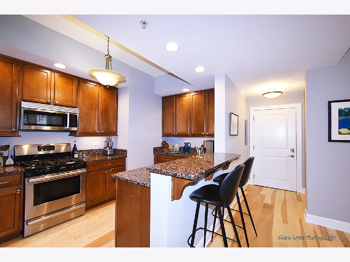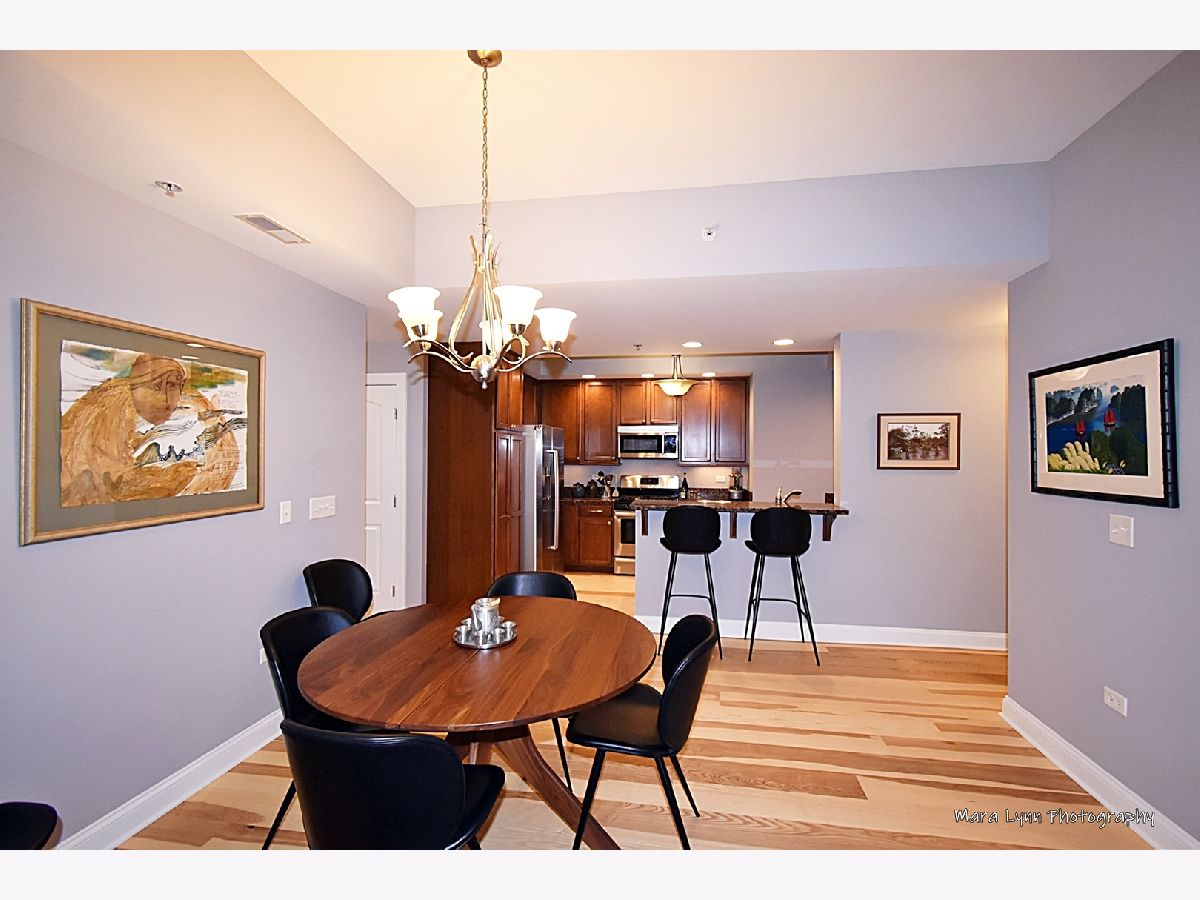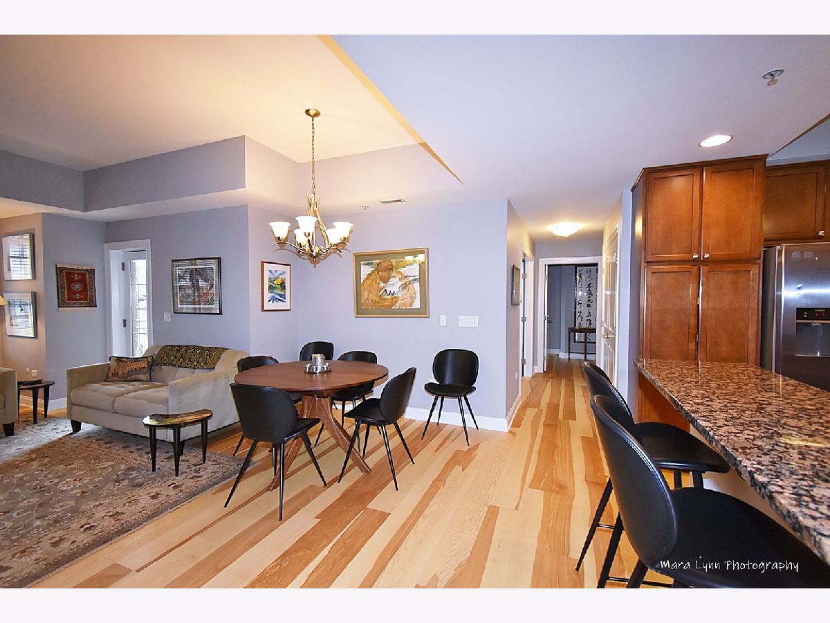 LOCATION AND CAREFREE LIVING. THIS CONDO IS IN THE BEST LOCATION IN DOWNTOWN ST. CHARLES. OUT YOUR DOOR AND YOU ARE IN THE MIDST OF RESTAURANTS, SHOPS, ENTERTAINMENT, LIBRARY, PARKS, FOX RIVER TRAILS, FARMERS MARKET, FESTIVALS AND EVENTS, WITH A SHORT DISTANCE TO METRA. TALL CEILINGS ACCENTUATE THE OPEN FLOOR PLAN. KITCHEN WITH BEAUTIFUL CABINETRY AND PLENTY OF WORKSPACE, GRANITE, STAINLESS BOSCH APPLIANCES AND BREAKFAST BAR FLOWS SEAMLESSLY INTO THE LARGE LIVING ROOM WITH WALL TO WALL WINDOWS AND FIREPLACE THAT CAN BE ENJOYED FROM THE DINING AREA ALSO. LIVING ROOM HAS FRENCH DOOR LEADING TO 16 FT. BALCONY. SPECTACULAR TRANQUIL PRIMARY SUITE OFFERS SPACIOUS WALK-IN CLOSET, PRIVATE BATH WITH DUAL SINKS, GRANITE, SOAKING TUB AND SEPARATE SHOWER. GENEROUSLY SIZED 2ND BEDROOM, OR DEN/OFFICE FOR GREAT WORK FROM HOME SPACE, AND WALL OF WINDOWS WITH FRENCH DOOR LEADING TO THE BALCONY. HALL BATH FEATURES GRANITE TOPPED VANITY AND TUB/SHOWER COMBINATION. UNIT HAS SIDE BY SIDE BOSCH WASHER AND DRYER AND SINK. NEW IN 2022 ASH PLANK FLOORING THROUGHOUT. OVERSIZED UNDERGROUND HEATED PARKING SPACE WITH ROOM FOR STORAGE CABINET. SECURE ELEVATOR BUILDING.