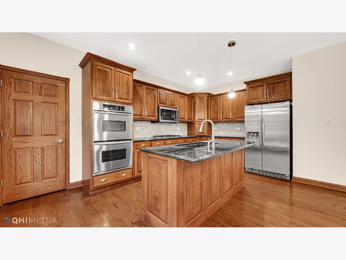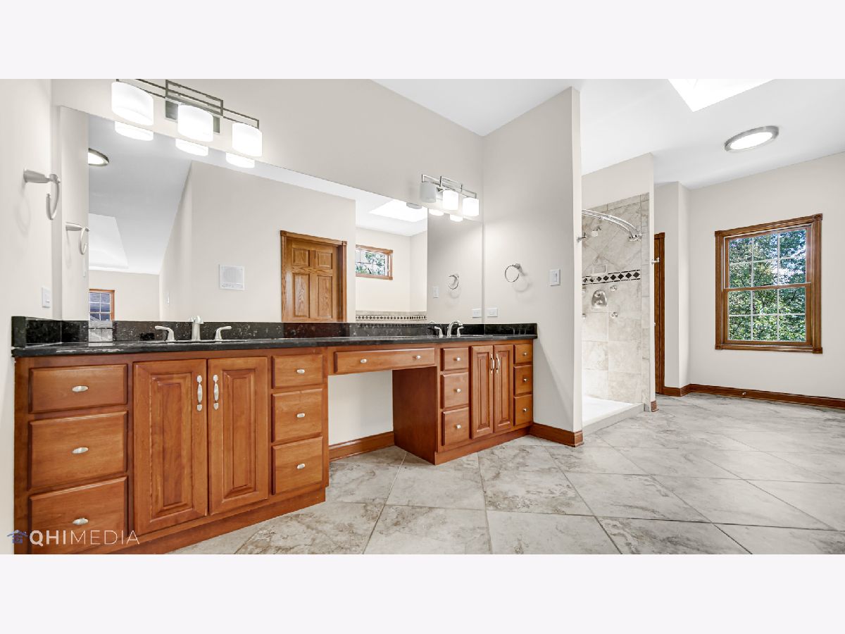 Beautiful 4 bedroom and 5-bathroom home on a quiet street in sought-after New Lenox. Formal living room, den, huge formal dining room, family room w/ gas fireplace and kitchen complete with granite counters, double oven, stainless appliances, walk in pantry and beautiful hardwood floors. Giant master suite with arched windows, walk in closet, huge master bath with jetted tub, separate shower, double sinks and granite counters and separate master laundry. Tray and vaulted ceilings in bedrooms. Finished basement has bar, full bath, family room/game area & leads out to 4 car tandem garage. Wrought iron fence. Stereo system w/ speakers in house/garage/patio