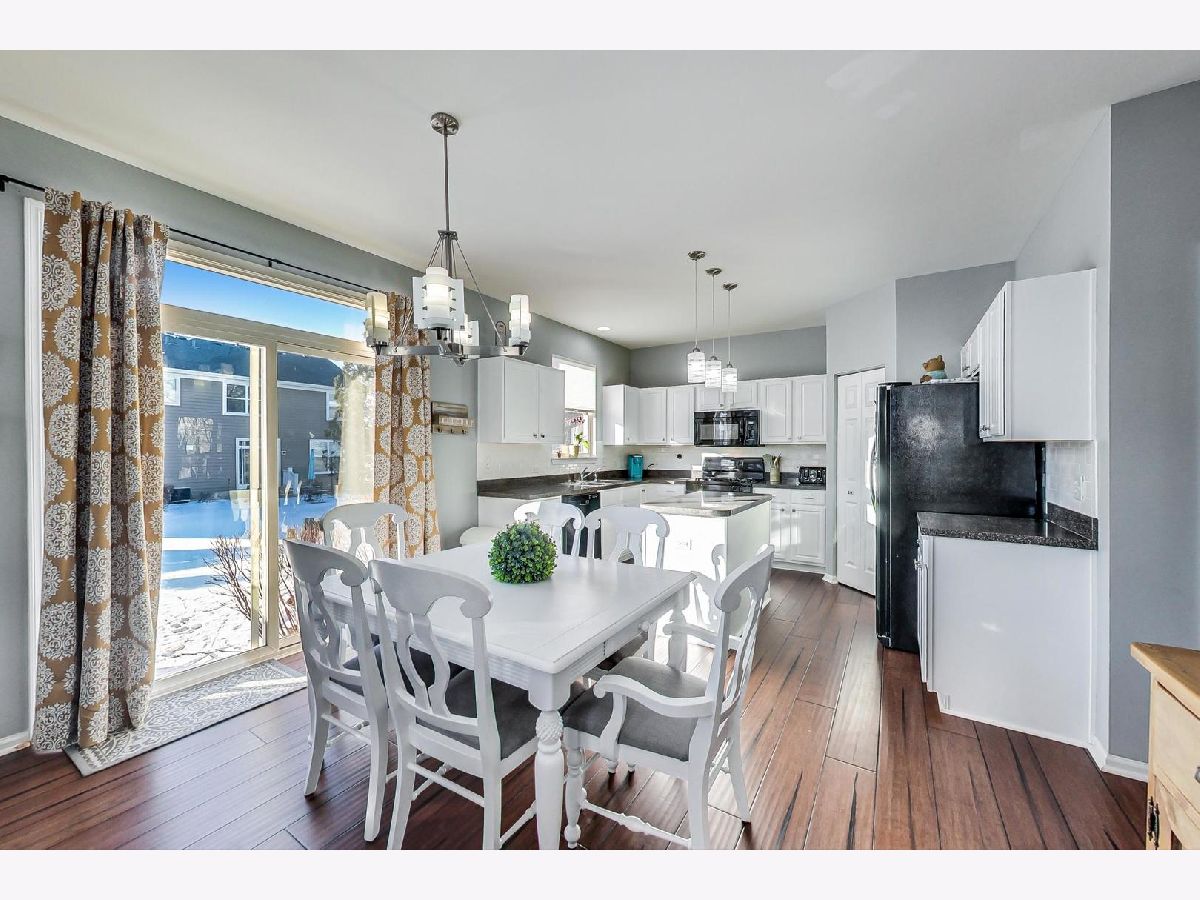 The picturesque setting of this beautiful neighborhood sets the tone for tranquility. Welcoming curb appeal starts when you pull in and enjoy the charming covered front porch. Foyer opens to home showcasing vaulted ceilings, freshly painted, rich bamboo floors through main level and expanded windows that fills home with bright natural light! Living room is over sized and perfect for relaxing with family. Kitchen features White Wood Cabinetry, Center Island, Pantry Closet and Decorator Lighting. Dining Area is ideally open to kitchen and leads with sliding glass door to your back patio. Family Room is centered around the richly painted feature wall which defines this amazing space. Main floor laundry/mud room keeps you super organized with built in cabinetry. Primary Bedroom is highlighted with a huge walk in closet and private full bathroom with separate shower, soaking tub and expanded vanity counter space. 2nd bedroom is enormous allowing plenty of space for desk/office area and 3rd bedroom includes large closet! Shared Full Hall Bathroom is crisp with white fixtures. Amazing sized basement has tons of storage and allows great potential for finishing! 2 Car garage is a great bonus! Home is Served by the Burlington 301 School District!! Wonderful location to great shopping, dining and recreation! Community features walking paths and parks throughout!