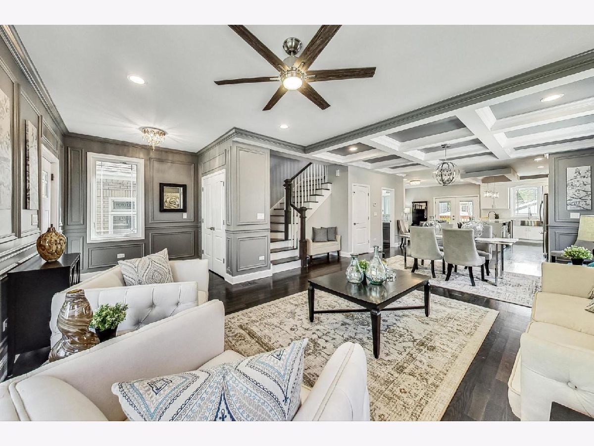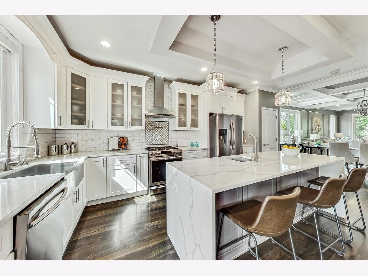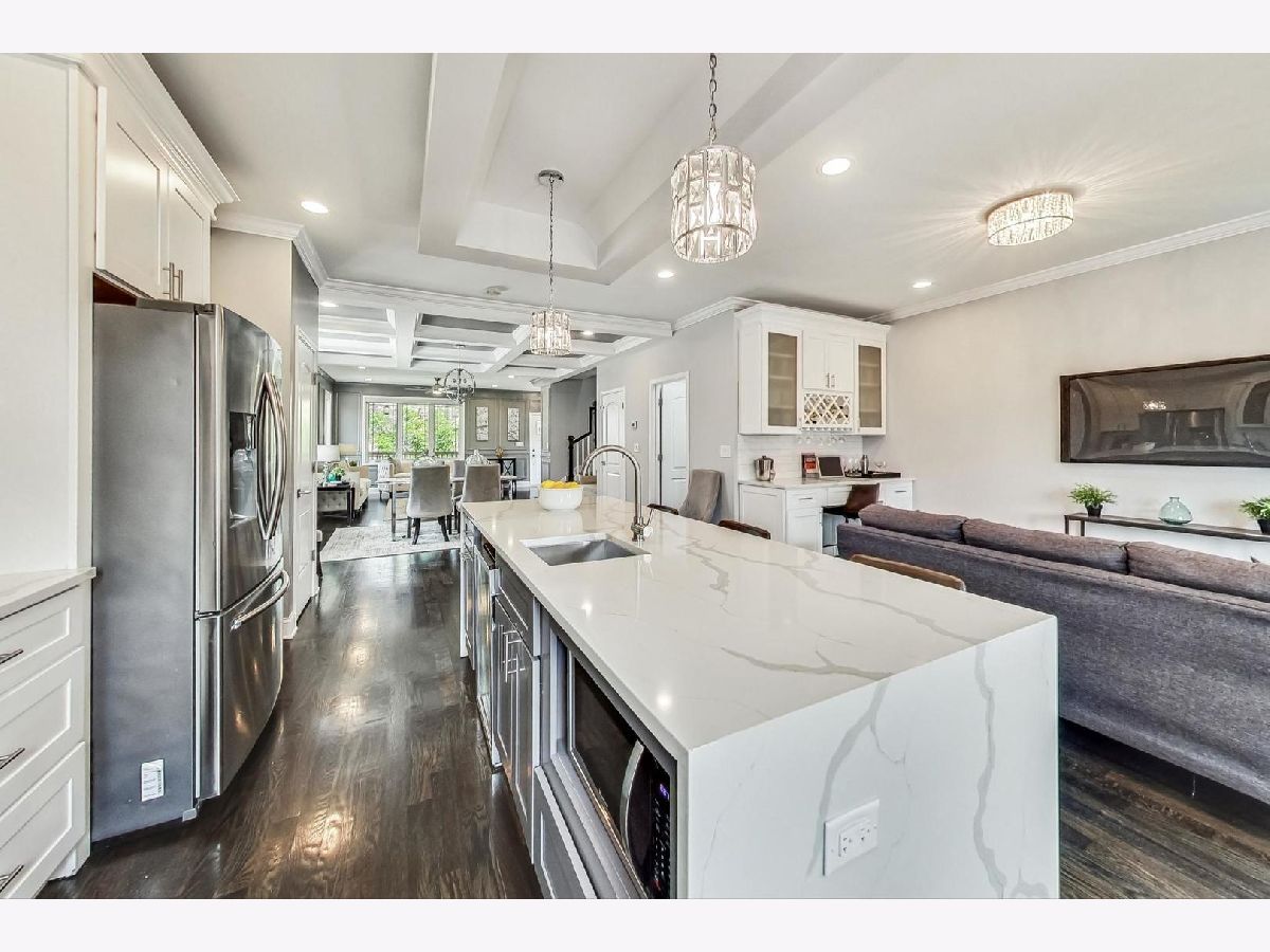 Stunning 2019 new construction home on a 37' wide lot & a quiet one-way street. Be prepared to be wowed from top to bottom as the inviting front porch welcomes you into this open concept gem. Beautiful oak hardwood floors & an abundance of natural light accentuate the unbelievably detailed coffered ceilings, crown molding & full wall wainscoting. Elegant kitchen features a Quatrz waterfall island with prep sink, subway tiled backsplash, farm sink, stainless appliances, 42" white cabinetry, vented hood & a full pantry. Family room off kitchen opens to an oversized covered deck with ceiling fan overlooking the green backyard. Primary suite is a showstopper in itself with a vaulted ceiling, huge walk-in custom closet & a gorgeous natural stone bathroom with double vanity, jetted tub & frameless glass shower. Spacious 2nd & 3rd bedrooms, a rare multi-use bonus space off the hallway, plus side by side washer/dryer all on the 2nd floor! The expansive lower level features a custom built-in, 2 additional bedrooms, a 3rd full bathroom & storage. All of this plus a 2 car garage that opens to a 100ft+ driveway that is perfect for gatherings and/or playtime with kids. Easy access to downtown & suburbs via Route 66, I-290, I-55 or Metra.
