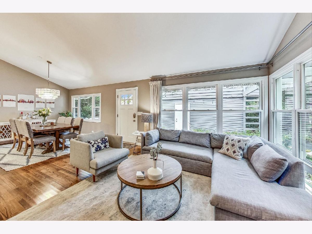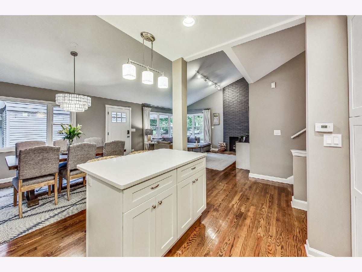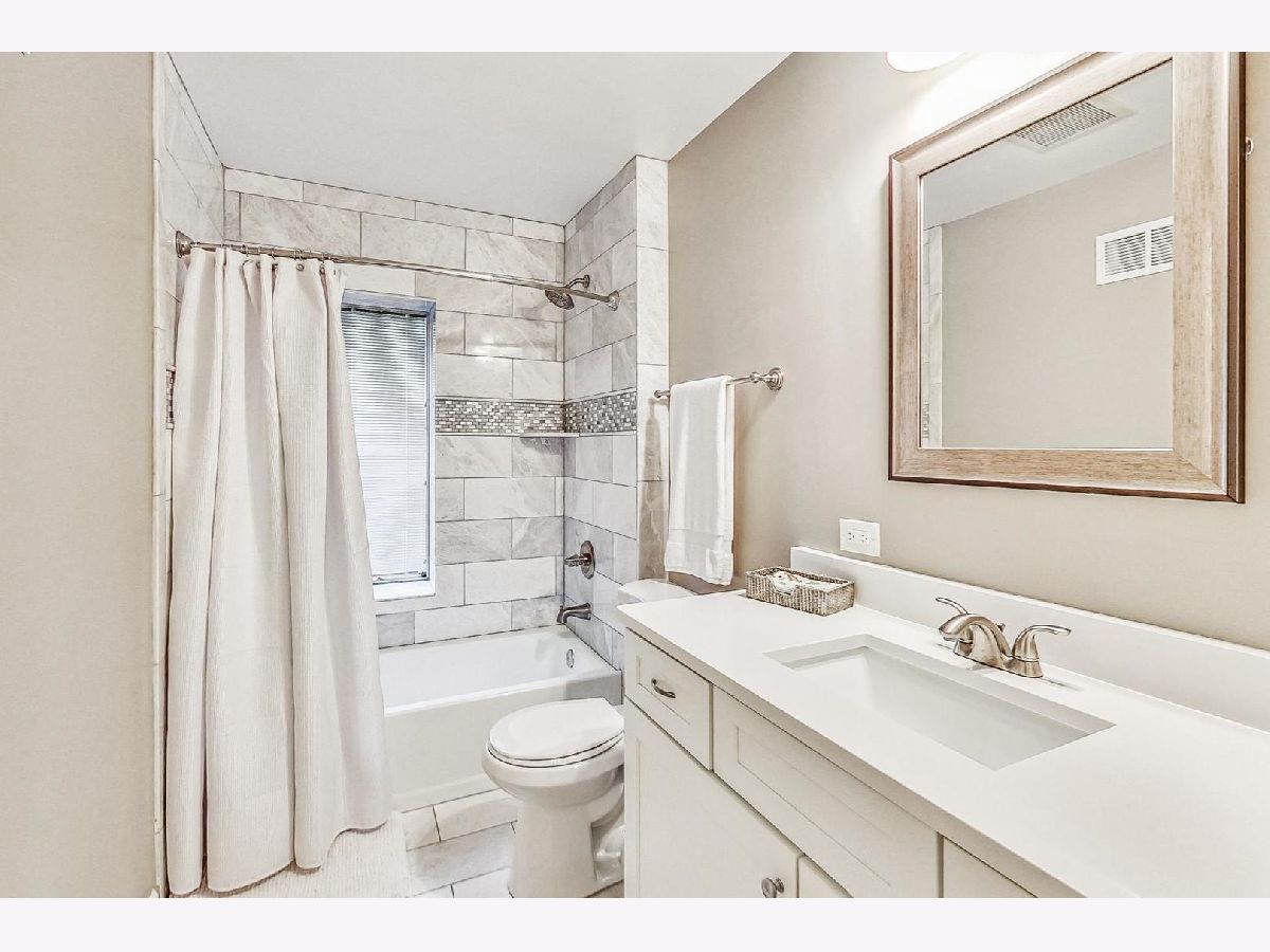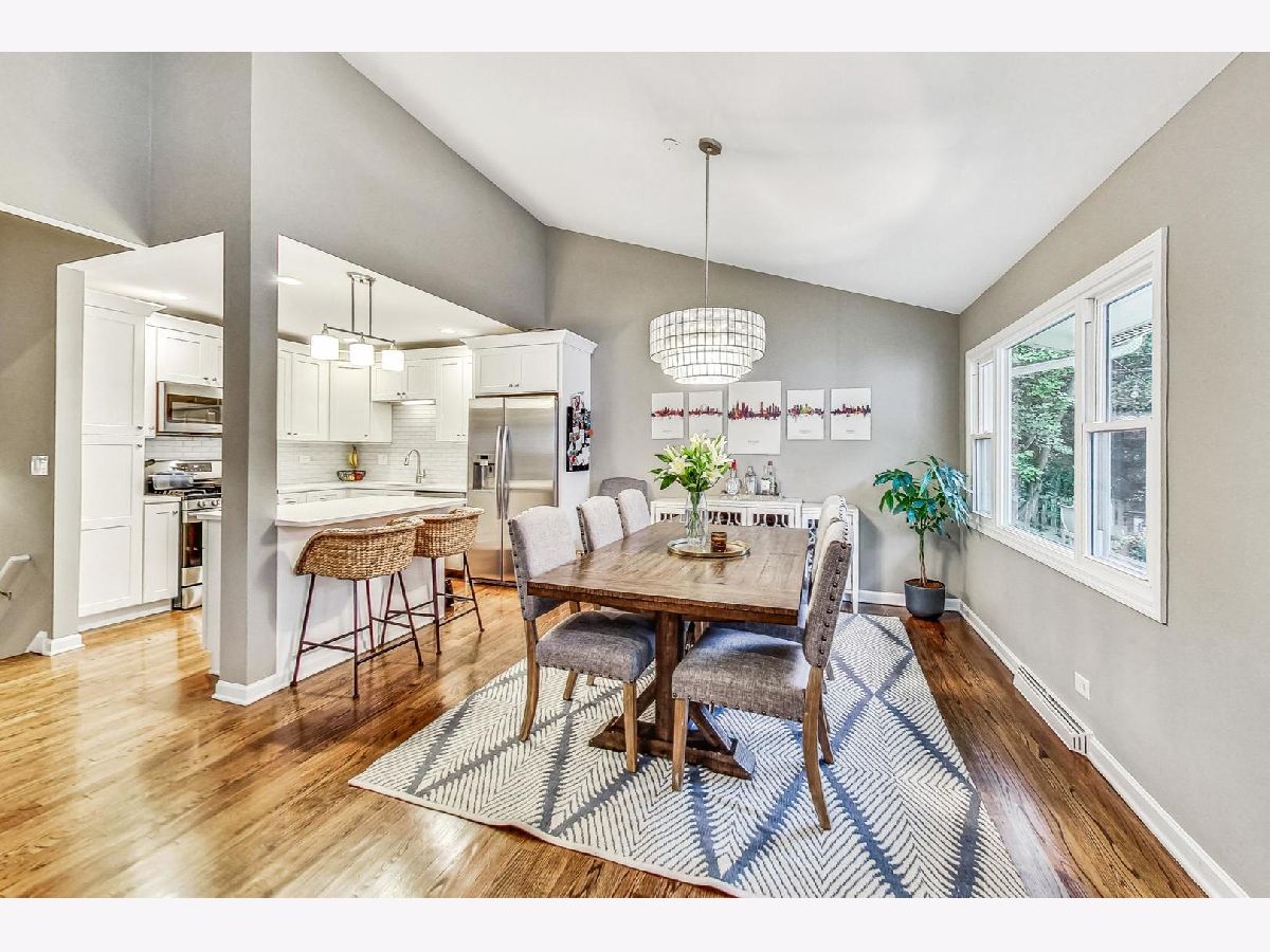 Completely renovated in 2018, this 3-bed and 2-bath sun-filled split level home is on a spacious corner lot in NW Evanston. Amazing open concept on the first floor with vaulted ceilings, beautiful hardwood floors, and wood burning fireplace in the living room. Updated kitchen with white shaker cabinets, white quartz counter tops, stainless steel appliances (2018) and a convenient kitchen island with seating. 3 bedrooms on the second level, with nice sized closets, and a beautifully updated hall bathroom, with deep soaker tub and marble tile. The lower level includes 2 additional flexible living spaces that can be used as a family room, office space, playroom, or even an additional 4th bedroom -with radiant heated floors, a full updated bath with walk in shower, and large laundry closet with side-by-side washer and dryer, utility closet with additional storage space, and access to an enormous crawl space under the main level. A welcoming patio, green space along the side of the home, one car detached garage and a unique roof top deck provide spaces to relax and entertain. Located close to parks, pools, schools, shopping, public transportation, and easy access to the expressway and mall. New roof (2019) and mechanicals (2018).