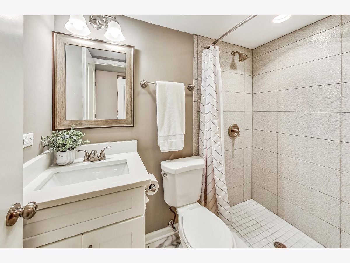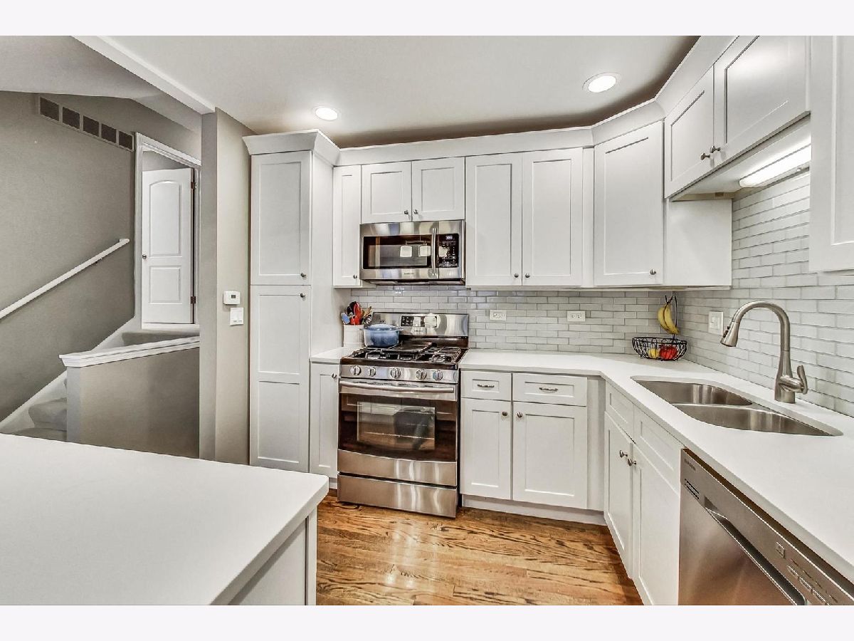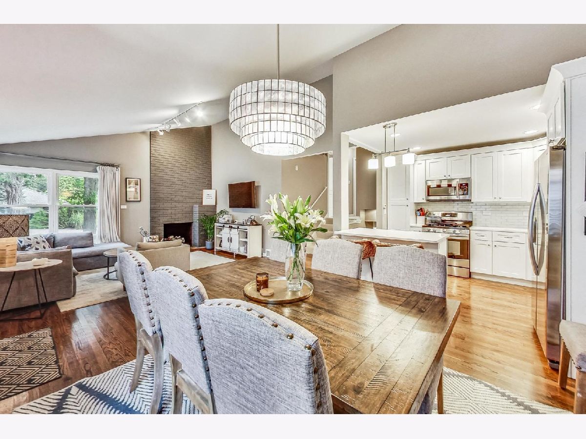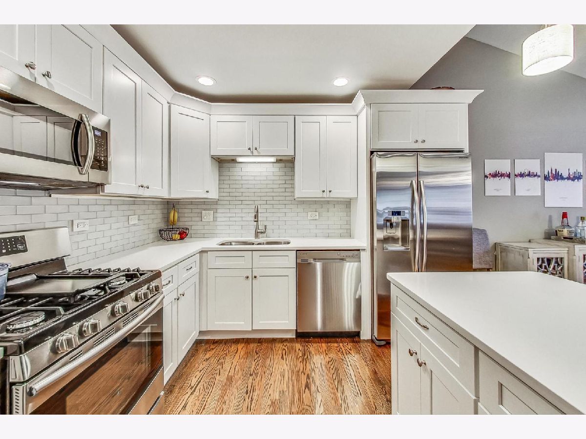Completely renovated in 2018, this 3-bed and 2-bath sun-filled split level home is on a spacious corner lot in NW Evanston. Amazing open concept on the first floor with vaulted ceilings, beautiful hardwood floors, and wood burning fireplace in the living room. Updated kitchen with white shaker cabinets, white quartz counter tops, stainless steel appliances (2018) and a convenient kitchen island with seating. 3 bedrooms on the second level, with nice sized closets, and a beautifully updated hall bathroom, with deep soaker tub and marble tile. The lower level includes 2 additional flexible living spaces that can be used as a family room, office space, playroom, or even an additional 4th bedroom -with radiant heated floors, a full updated bath with walk in shower, and large laundry closet with side-by-side washer and dryer, utility closet with additional storage space, and access to an enormous crawl space under the main level. A welcoming patio, green space along the side of the home, one car detached garage and a unique roof top deck provide spaces to relax and entertain. Located close to parks, pools, schools, shopping, public transportation, and easy access to the expressway and mall. New roof (2019) and mechanicals (2018).
